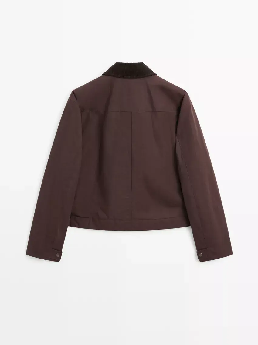 Massimo Dutti Короткая куртка с вельветовым воротником, бургунди