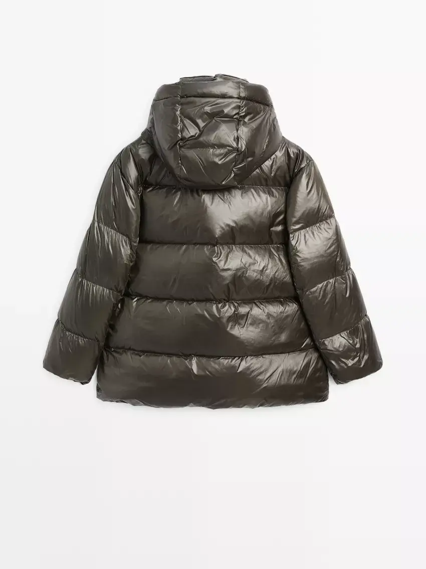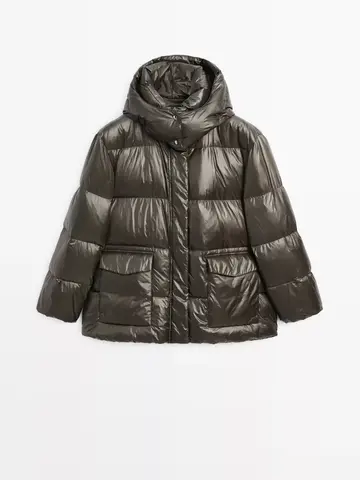 Massimo Dutti Короткая непромокаемая стеганая куртка с капюшоном, бутылочный