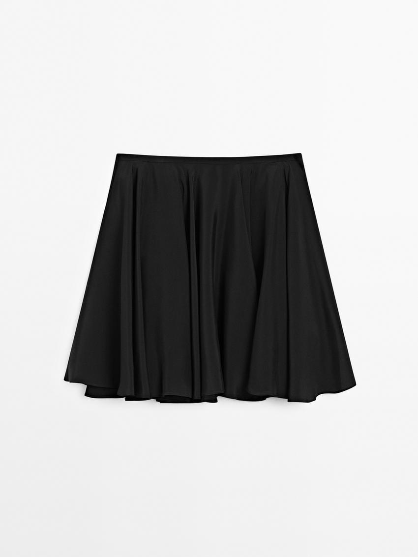 Massimo Dutti Короткая юбка с воланами и струящейся отделкой-Limited Edition, черный