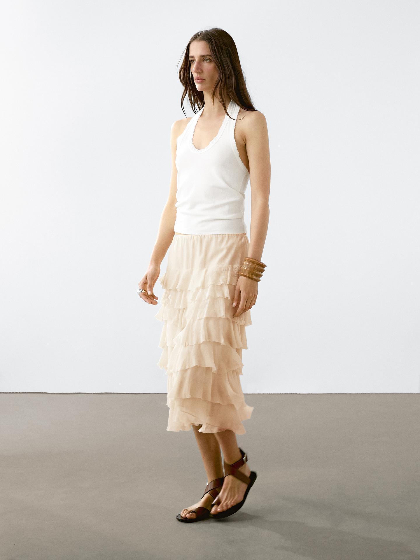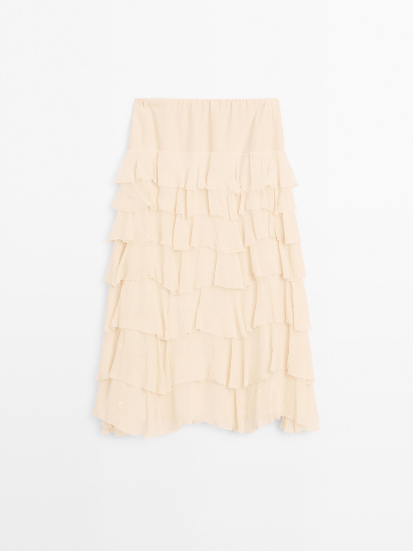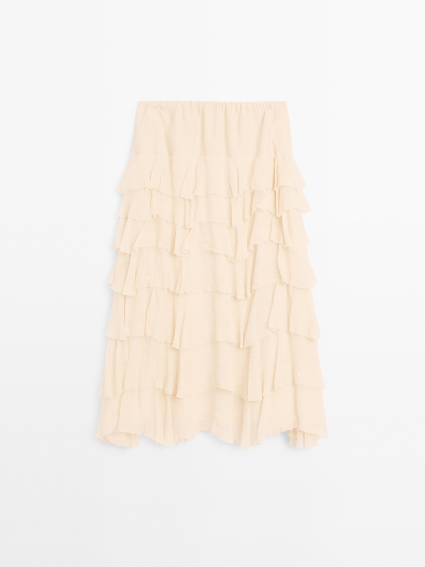 Massimo Dutti Короткая юбка с воланами, кремовый