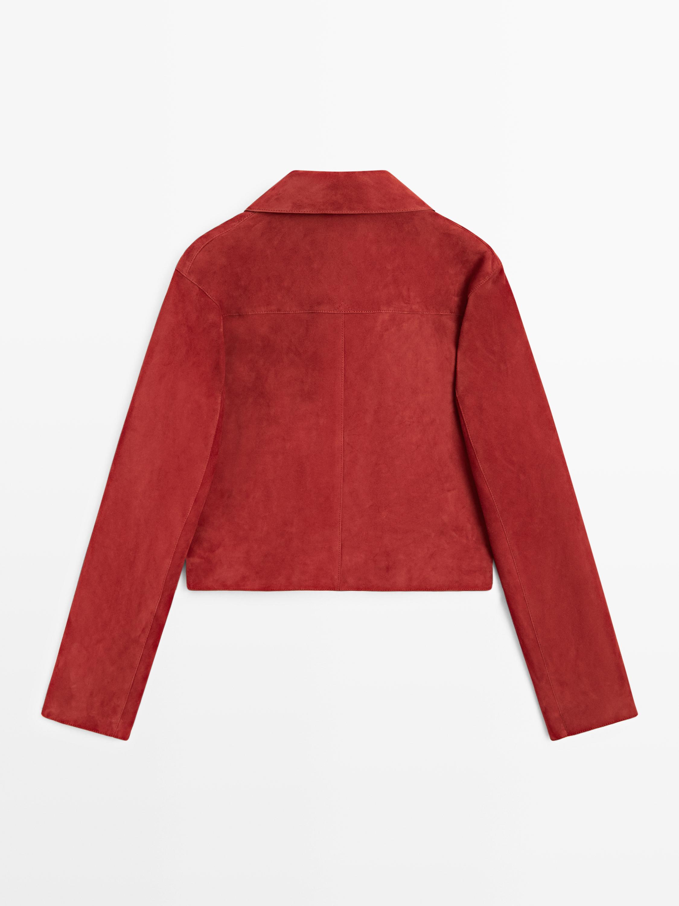 Massimo Dutti Короткая замшевая кожаная куртка, красный