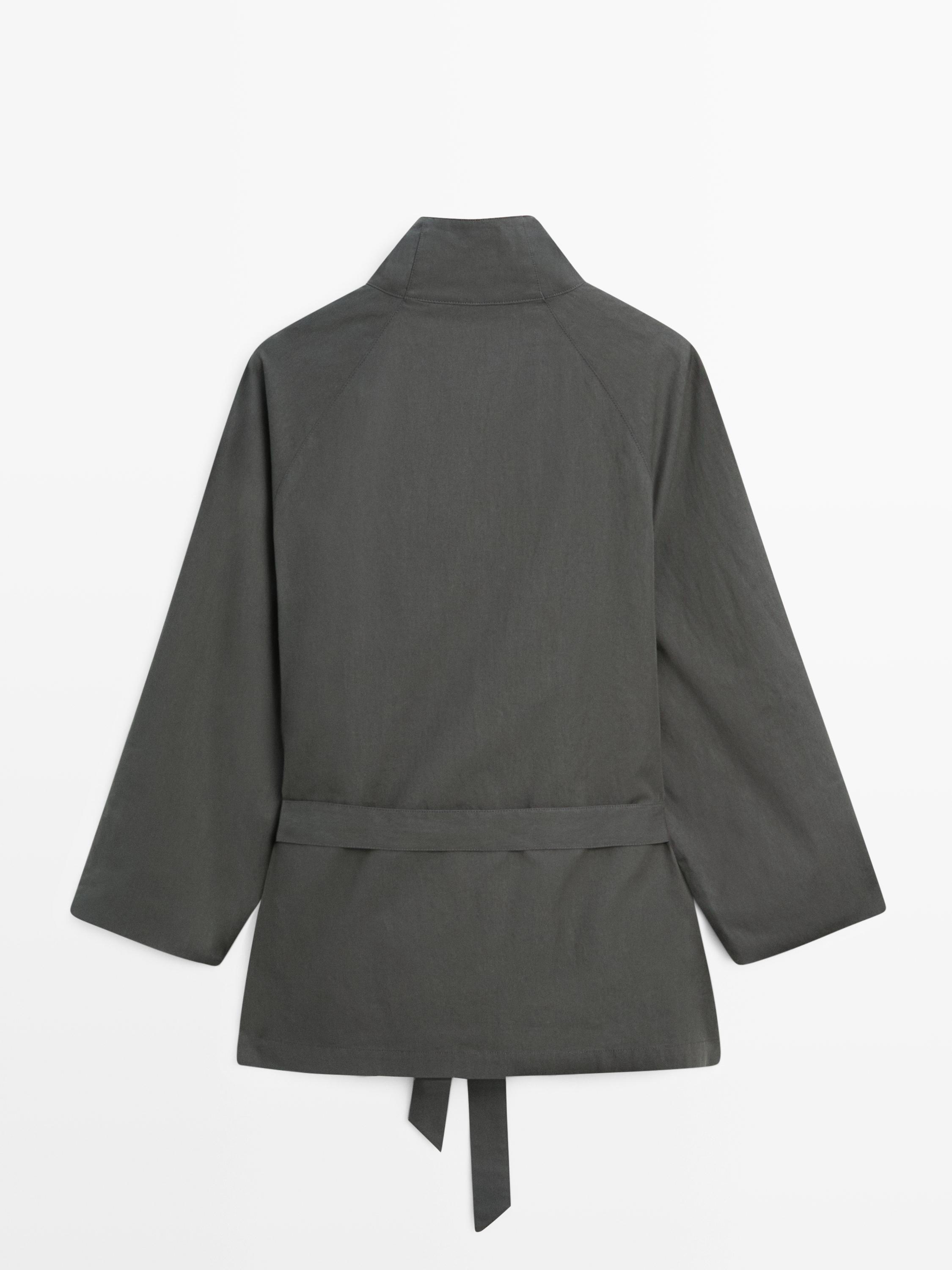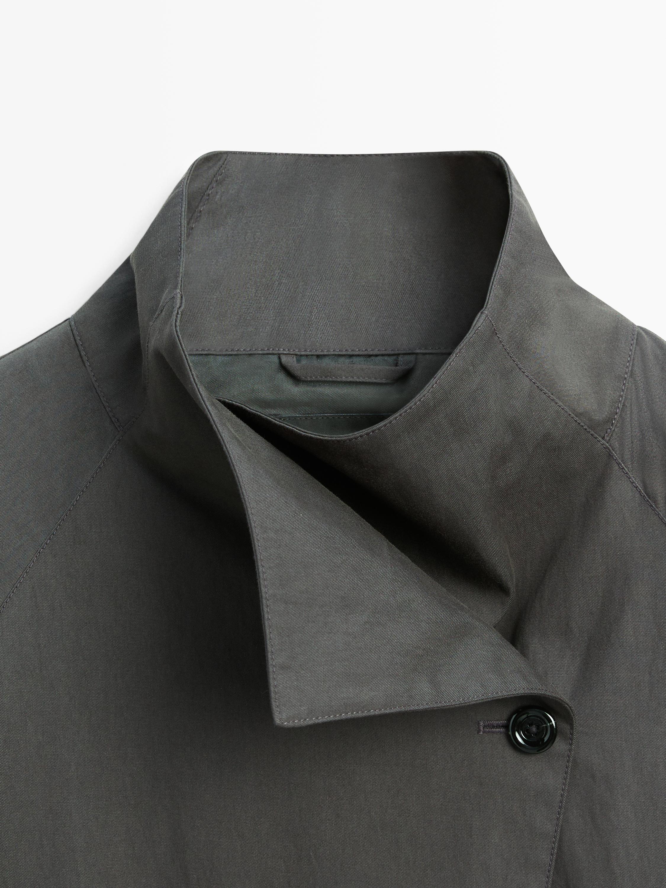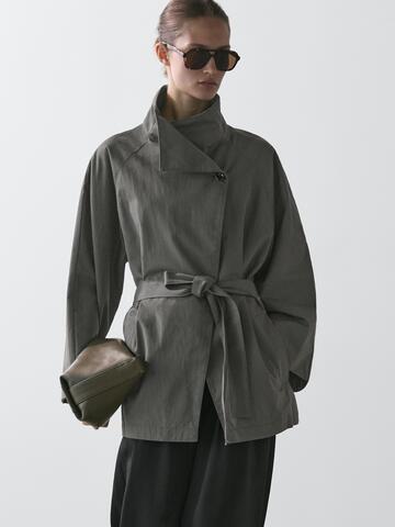 Massimo Dutti Короткий тренч из смесового хлопка с поясом, средне-синий