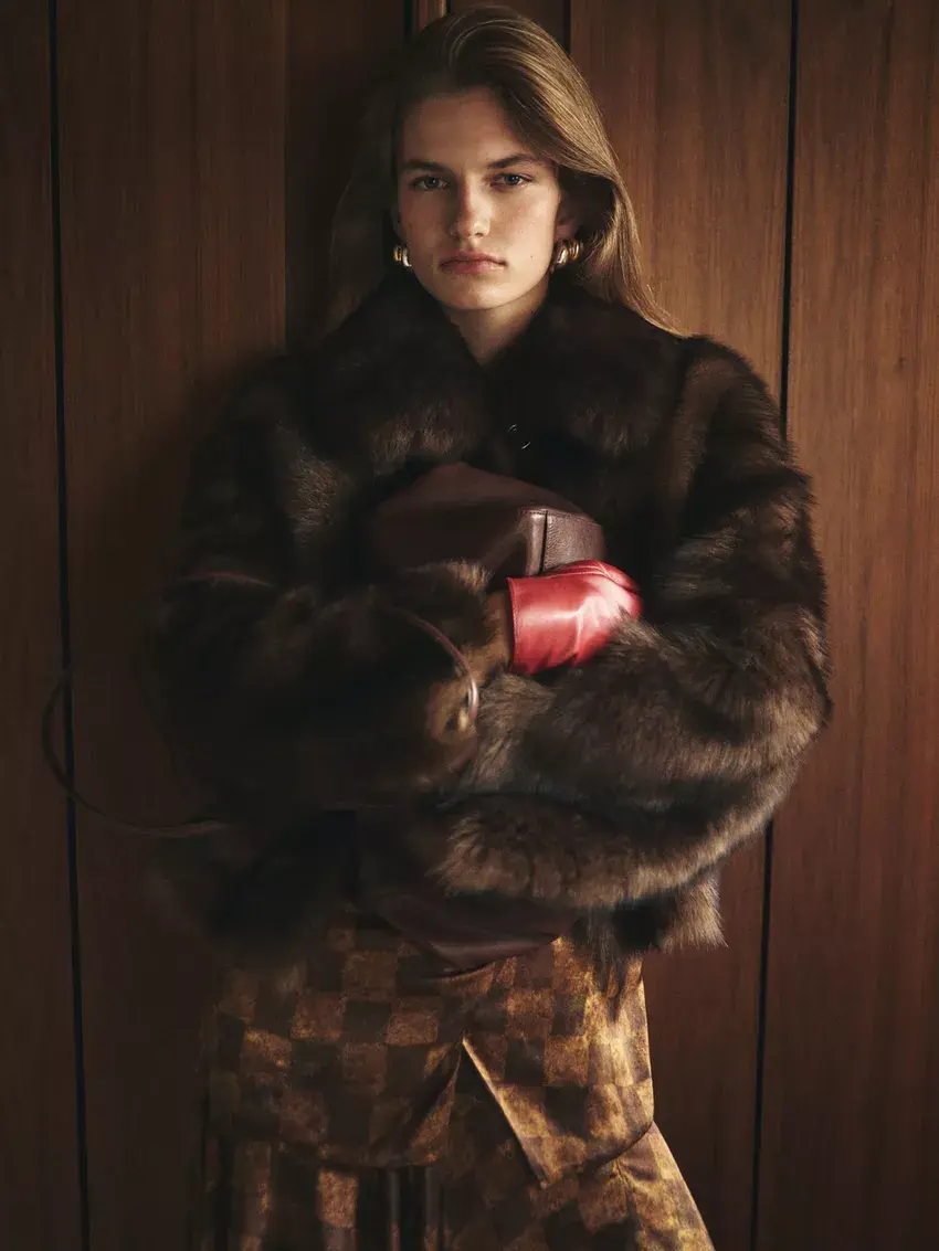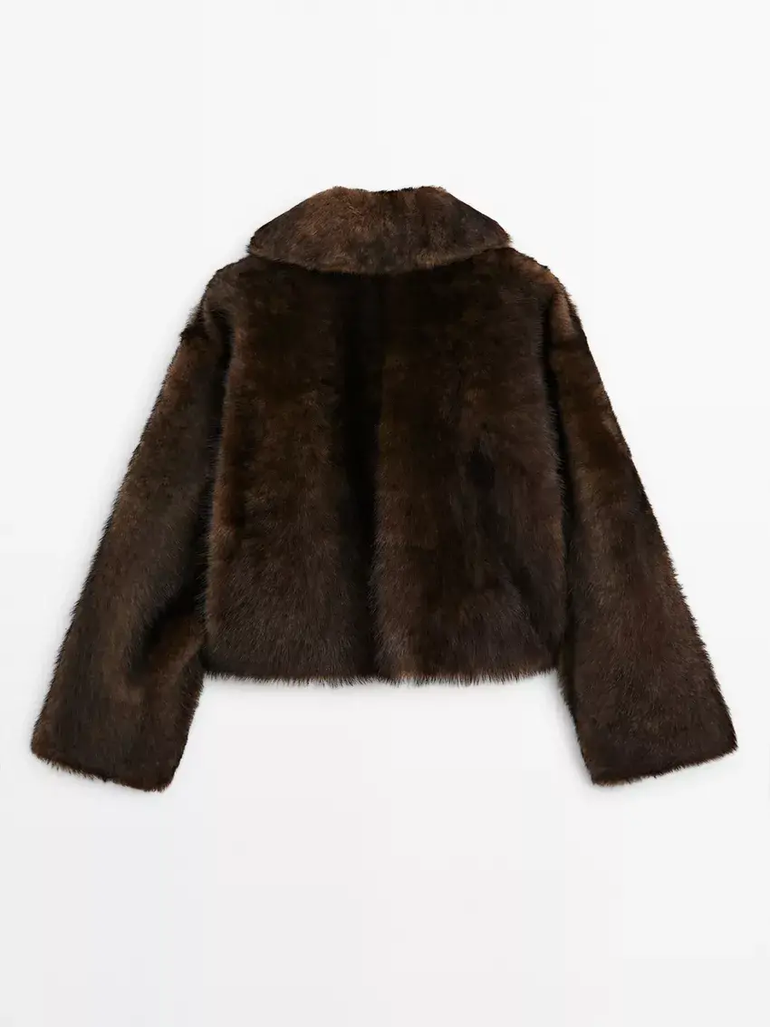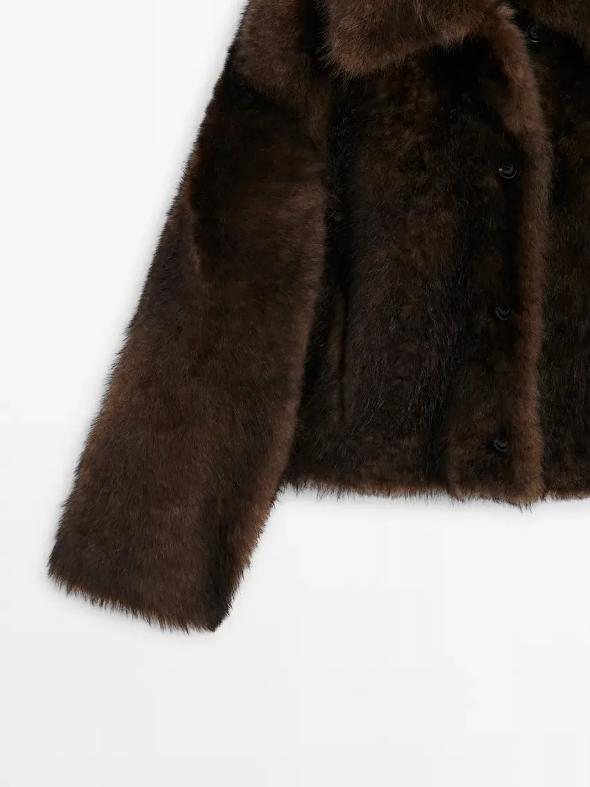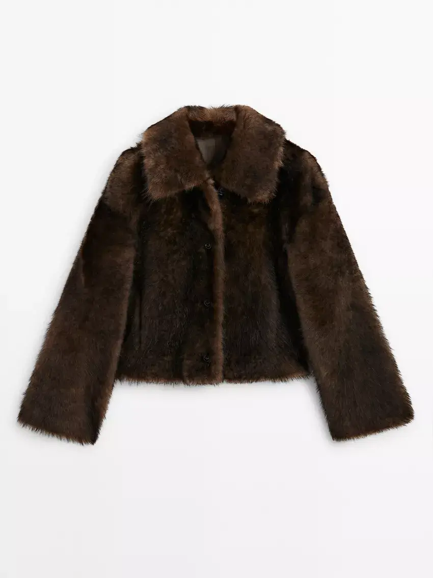 Massimo Dutti Короткая шуба из овечьей кожи, коричневый
