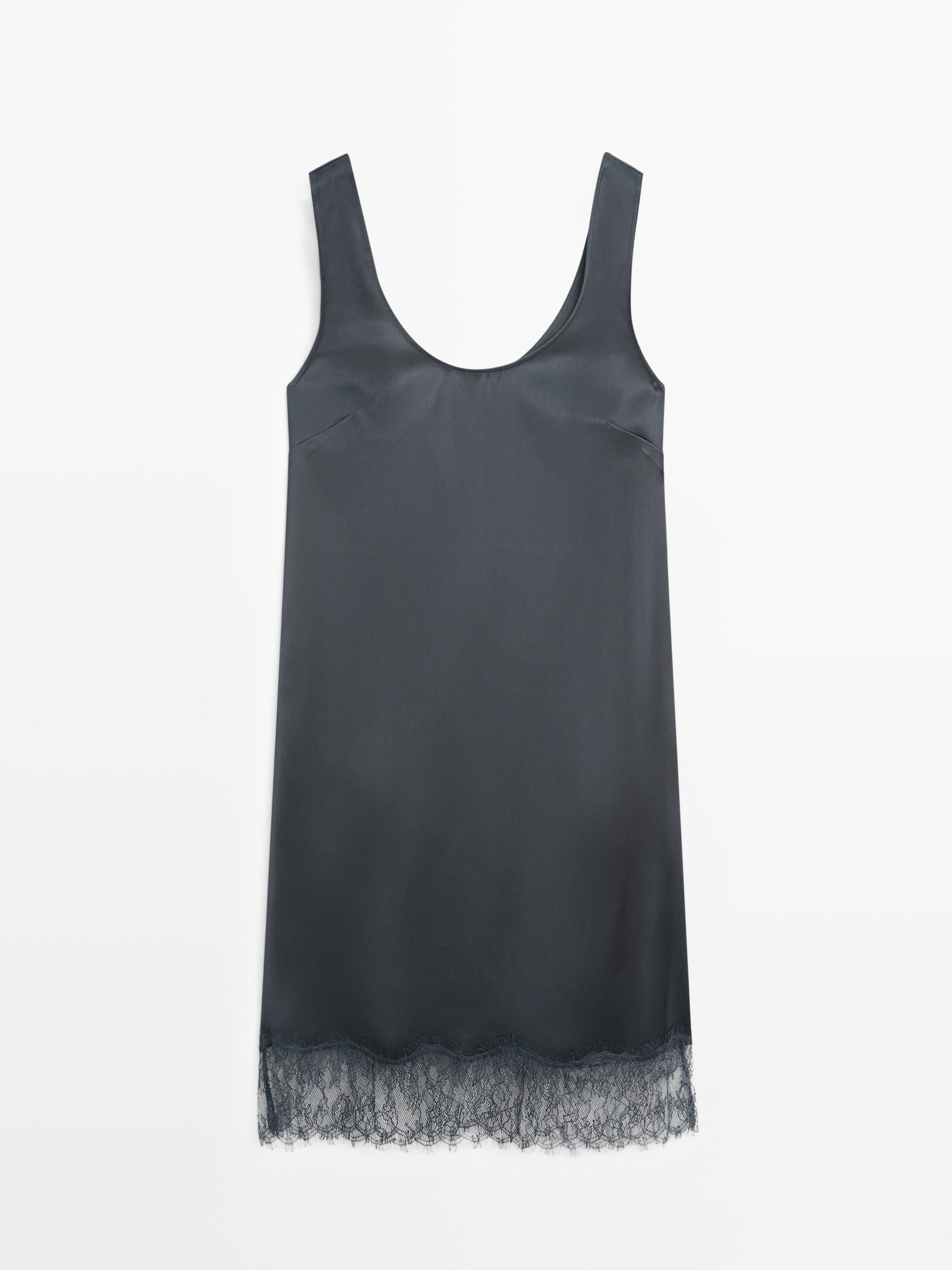 Massimo Dutti Короткое платье из струящегося атласа, темно-синий