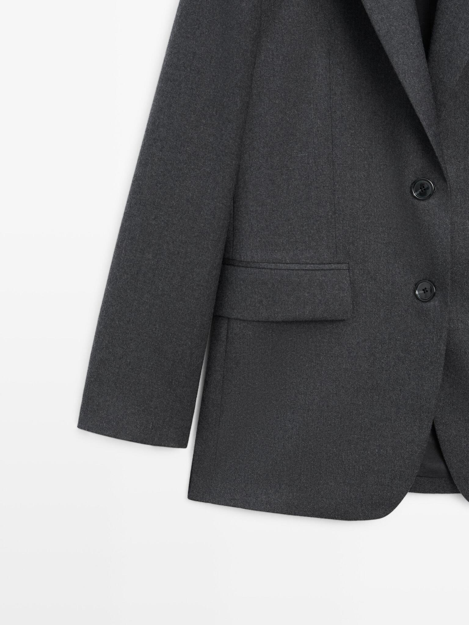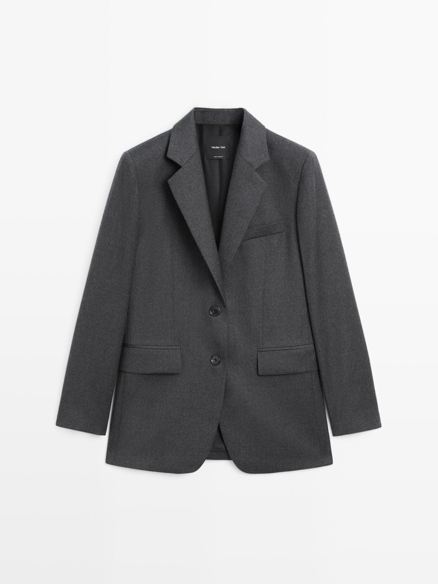 Massimo Dutti Костюмный пиджак из 100% шерстяной фланели, серый