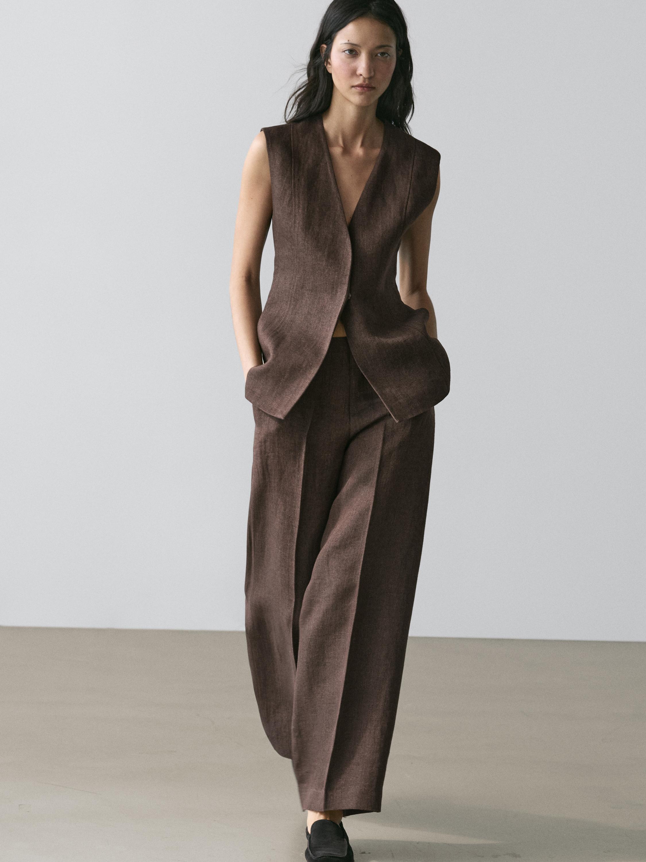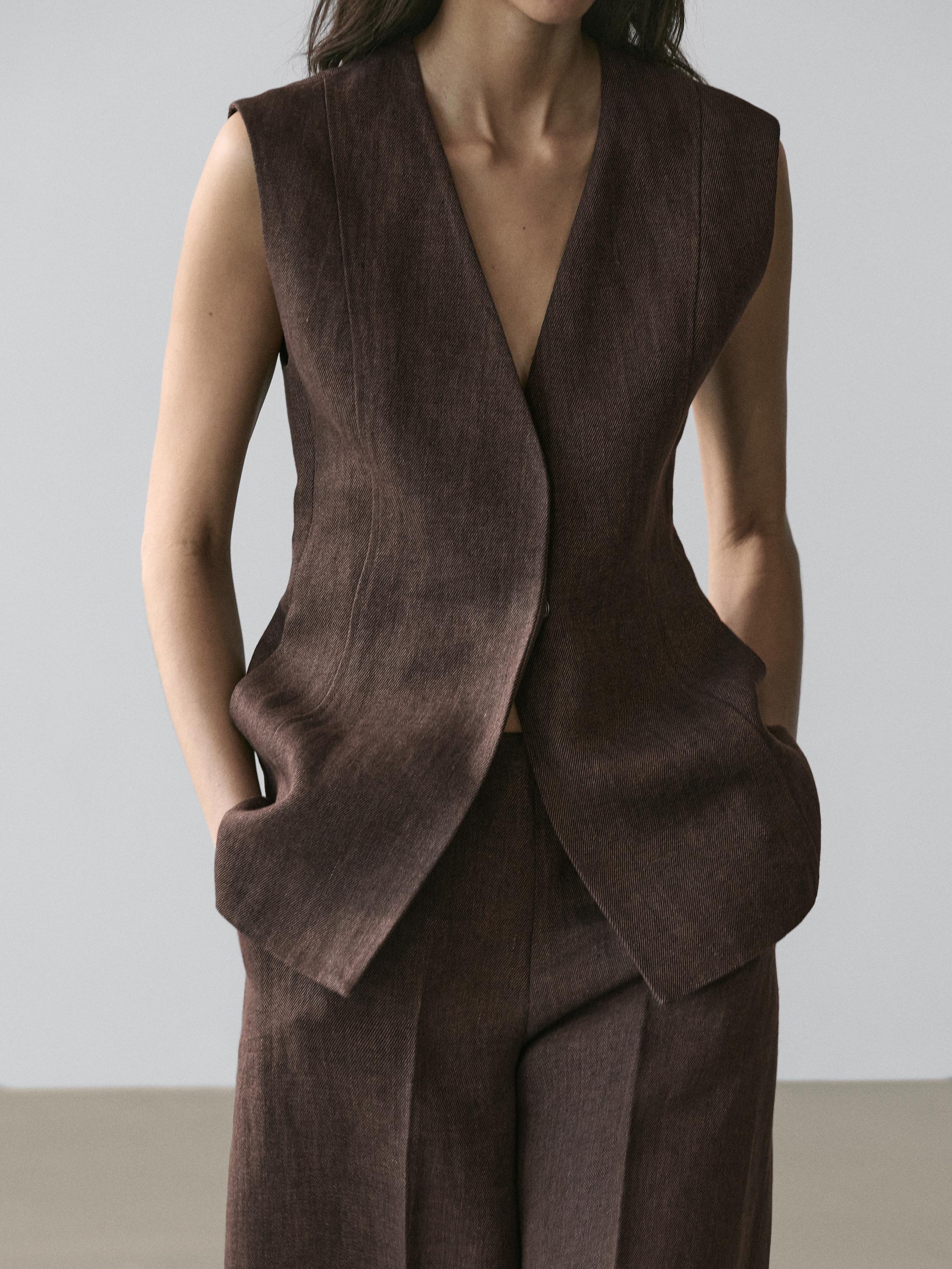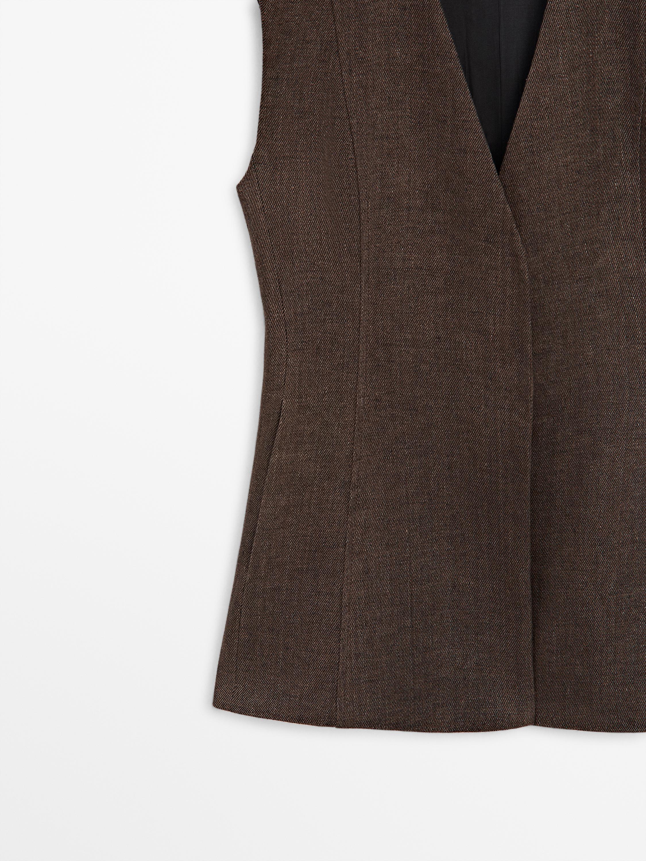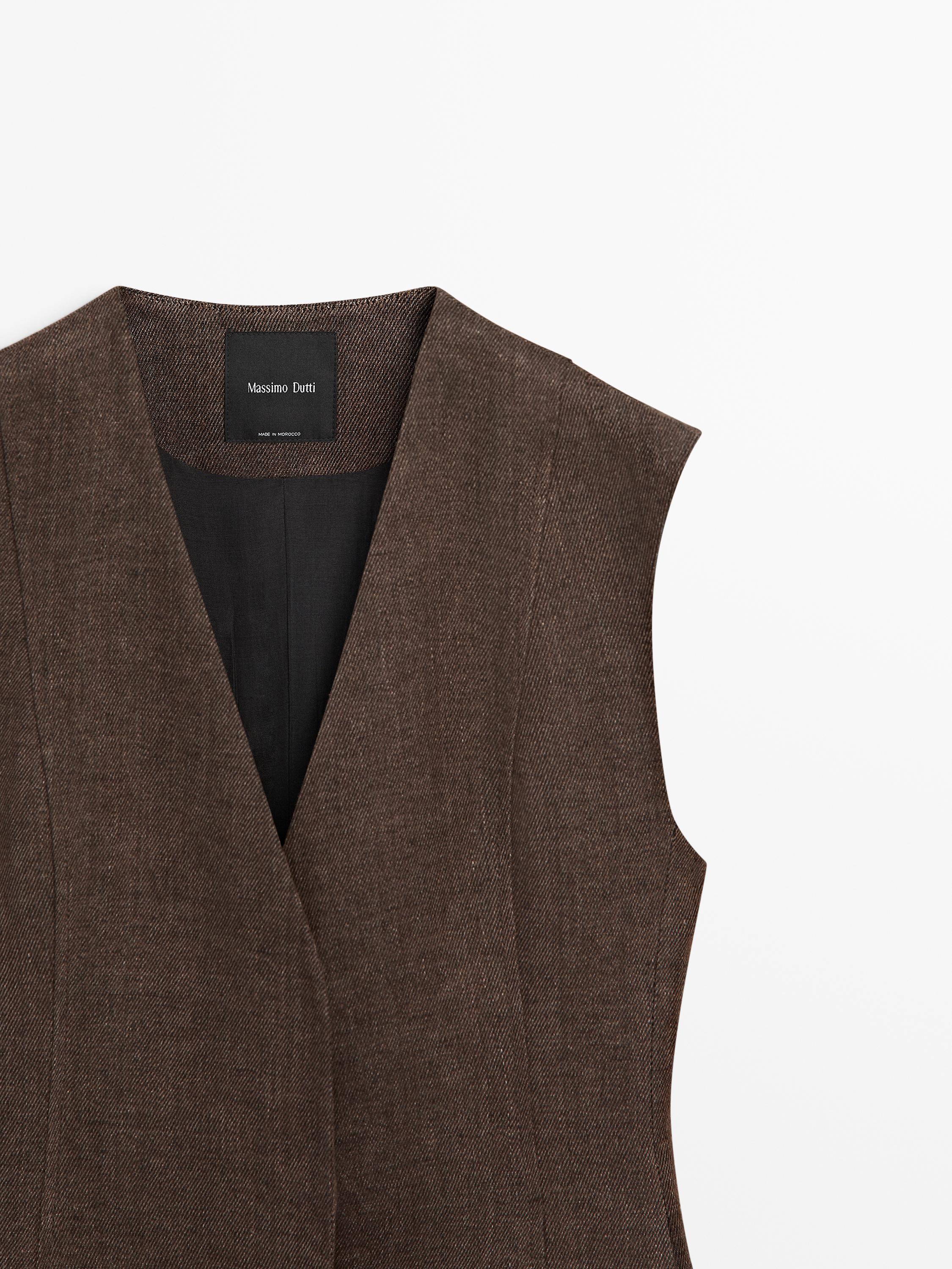 Massimo Dutti Костюмный жилет изо льна, коричневый