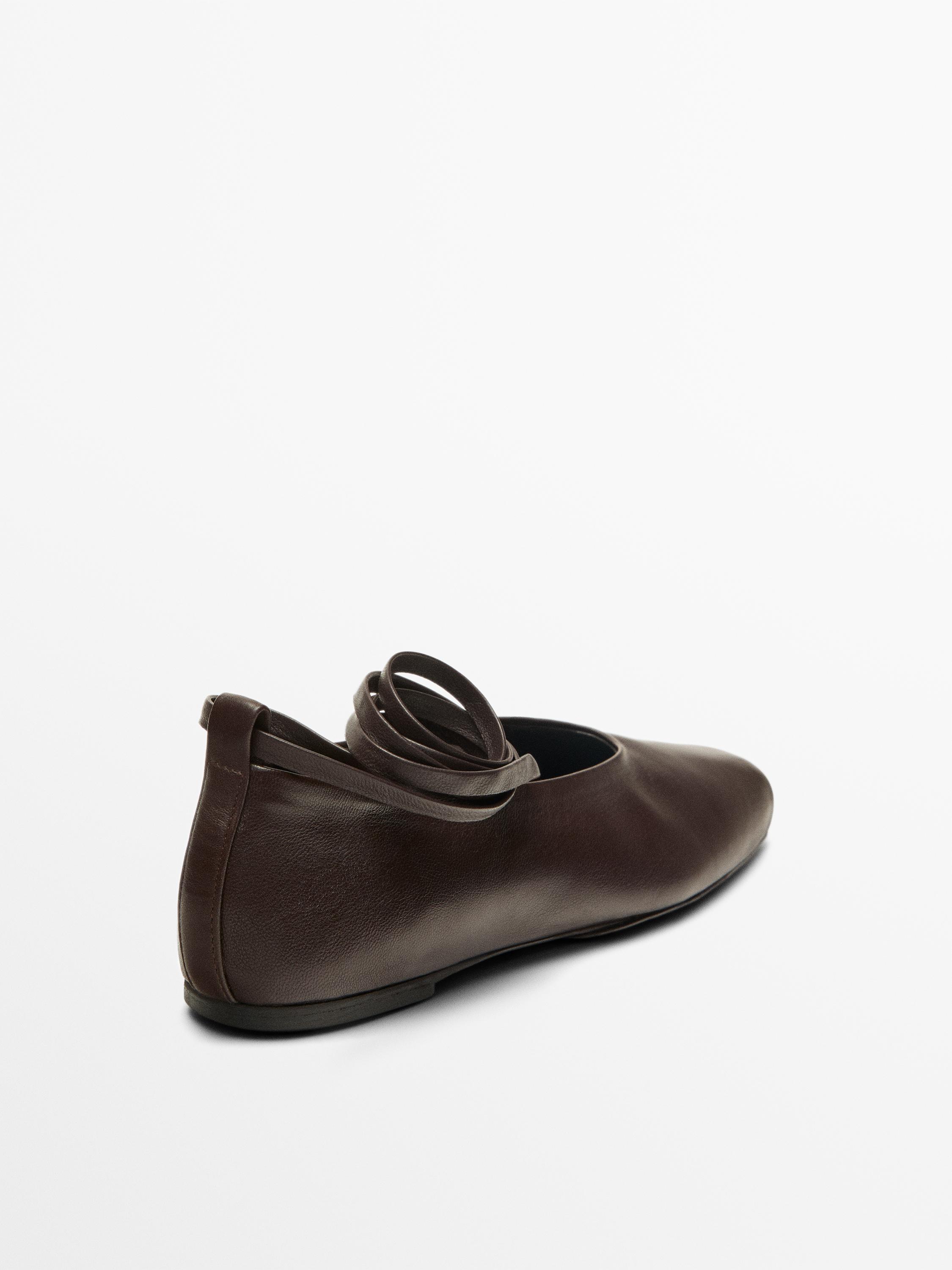Massimo Dutti Кожаные балетки на шнуровке, коричневый