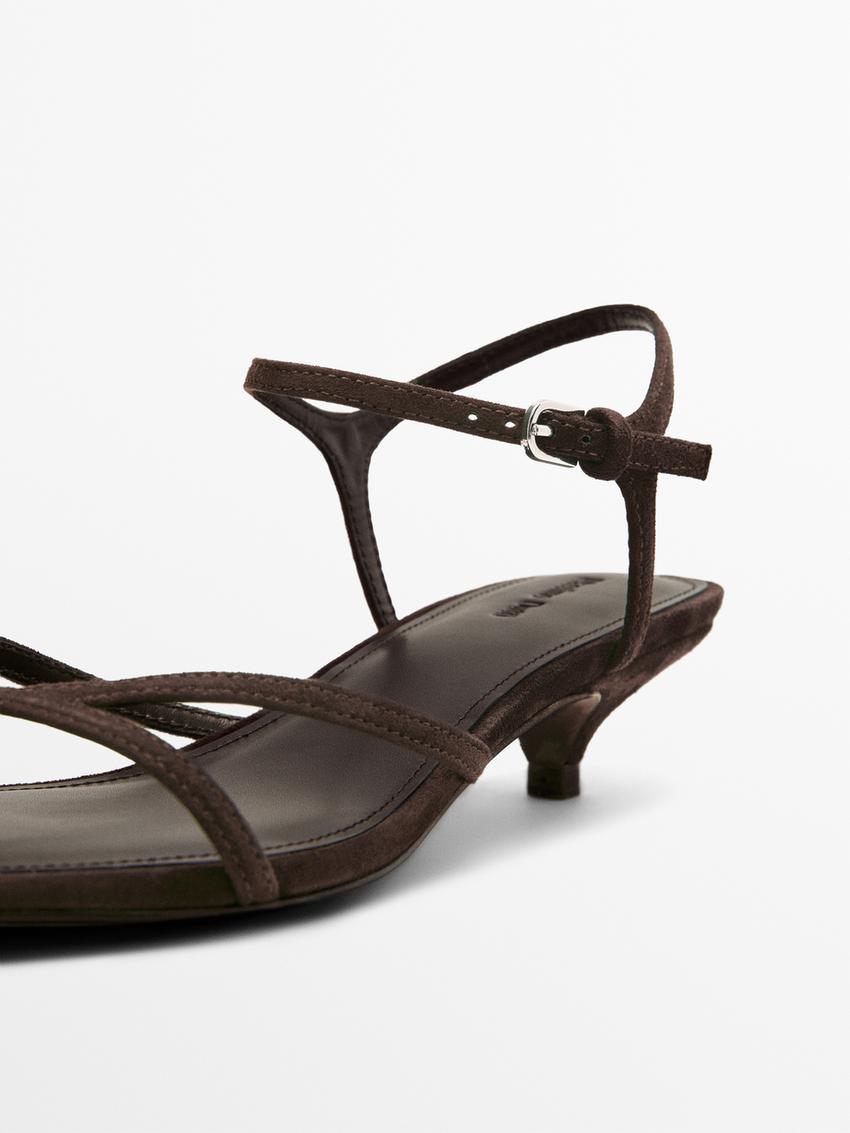 Massimo Dutti Кожаные босоножки на низком каблуке, коричневый