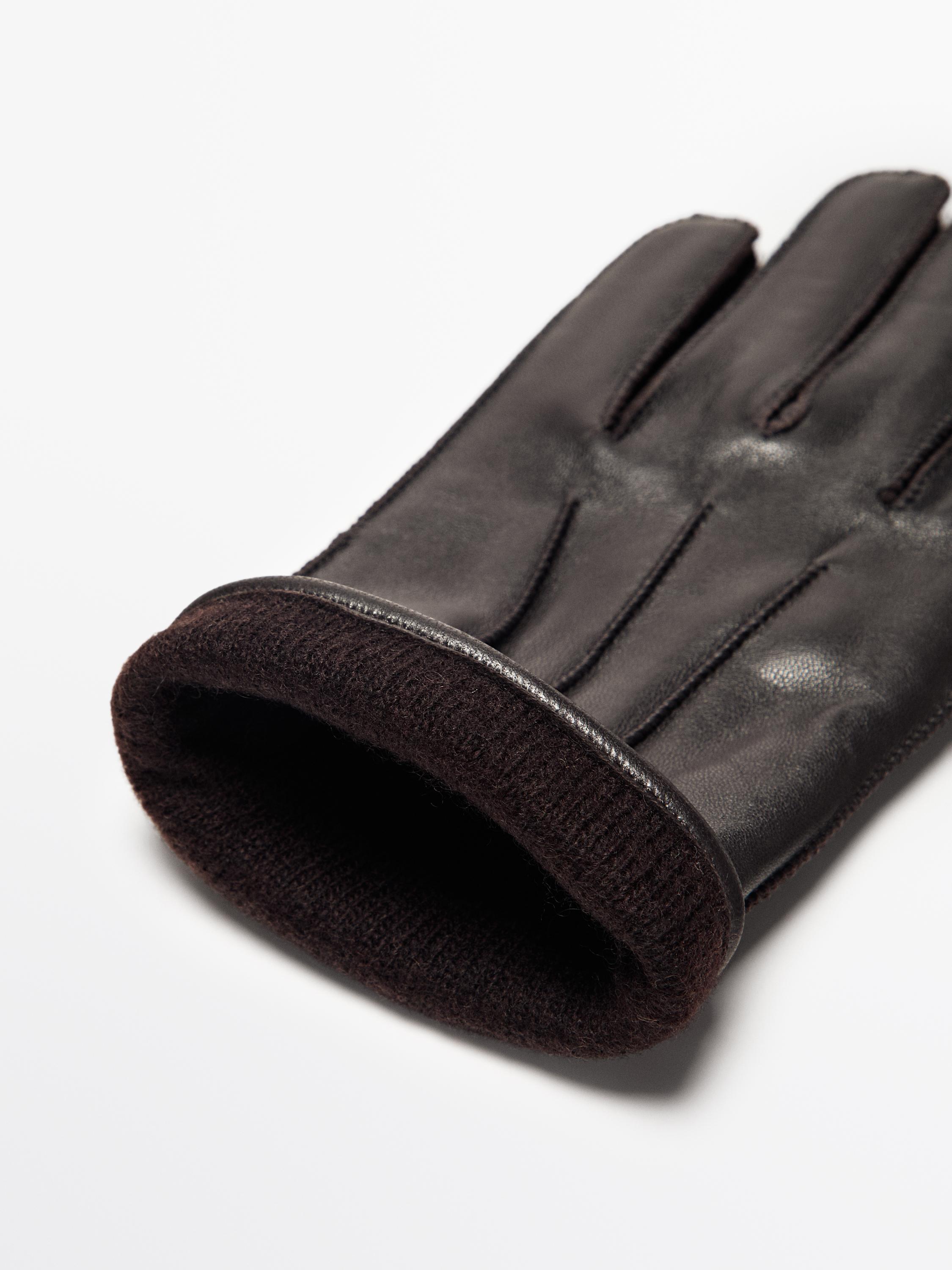Massimo Dutti Кожаные перчатки с отделкой из кожи наппа, коричневый