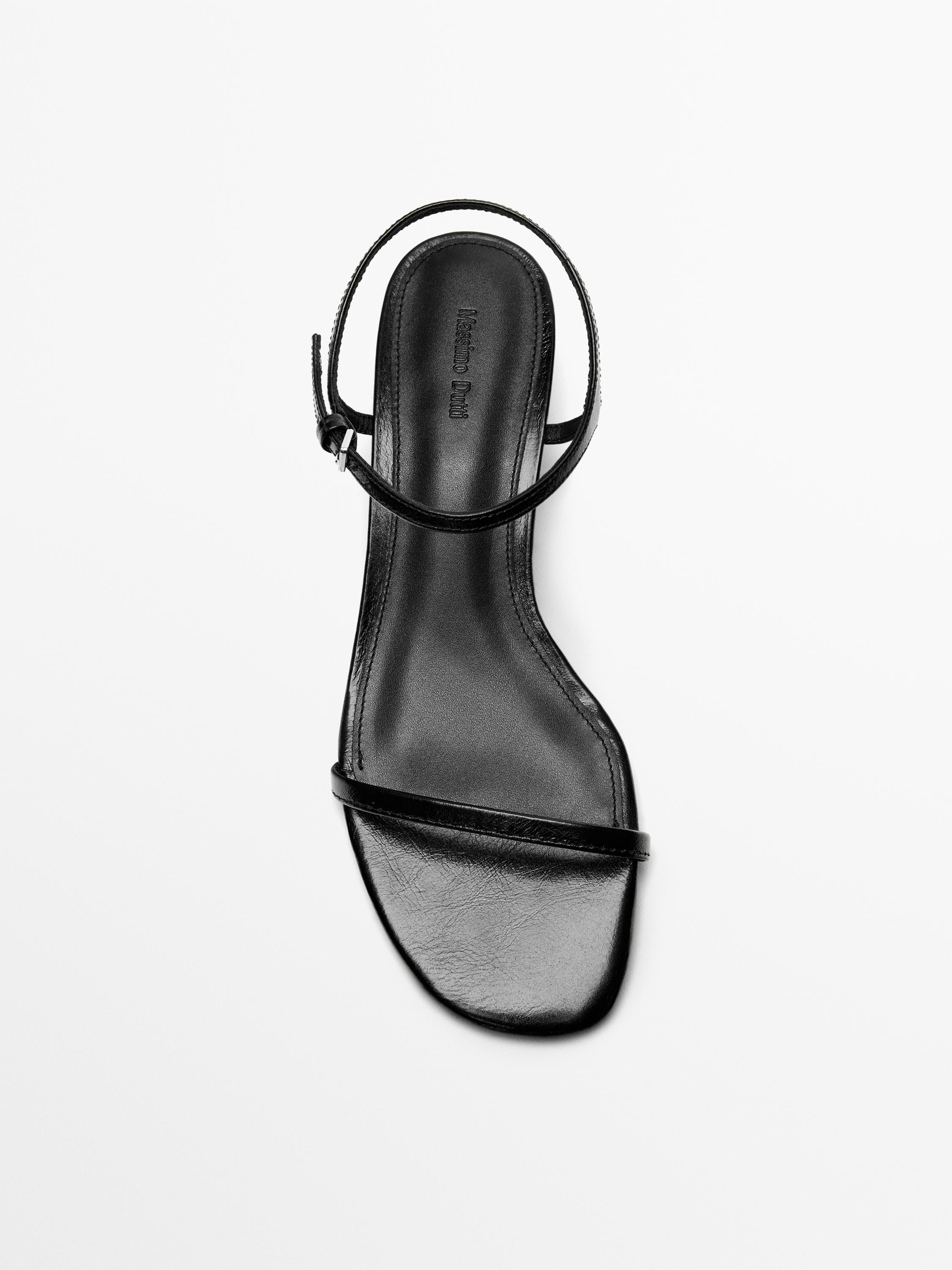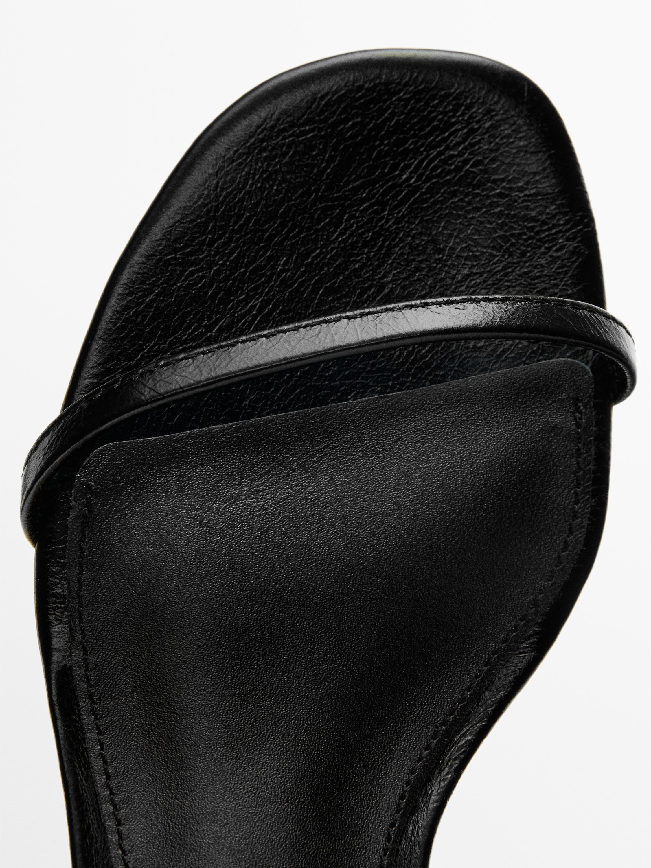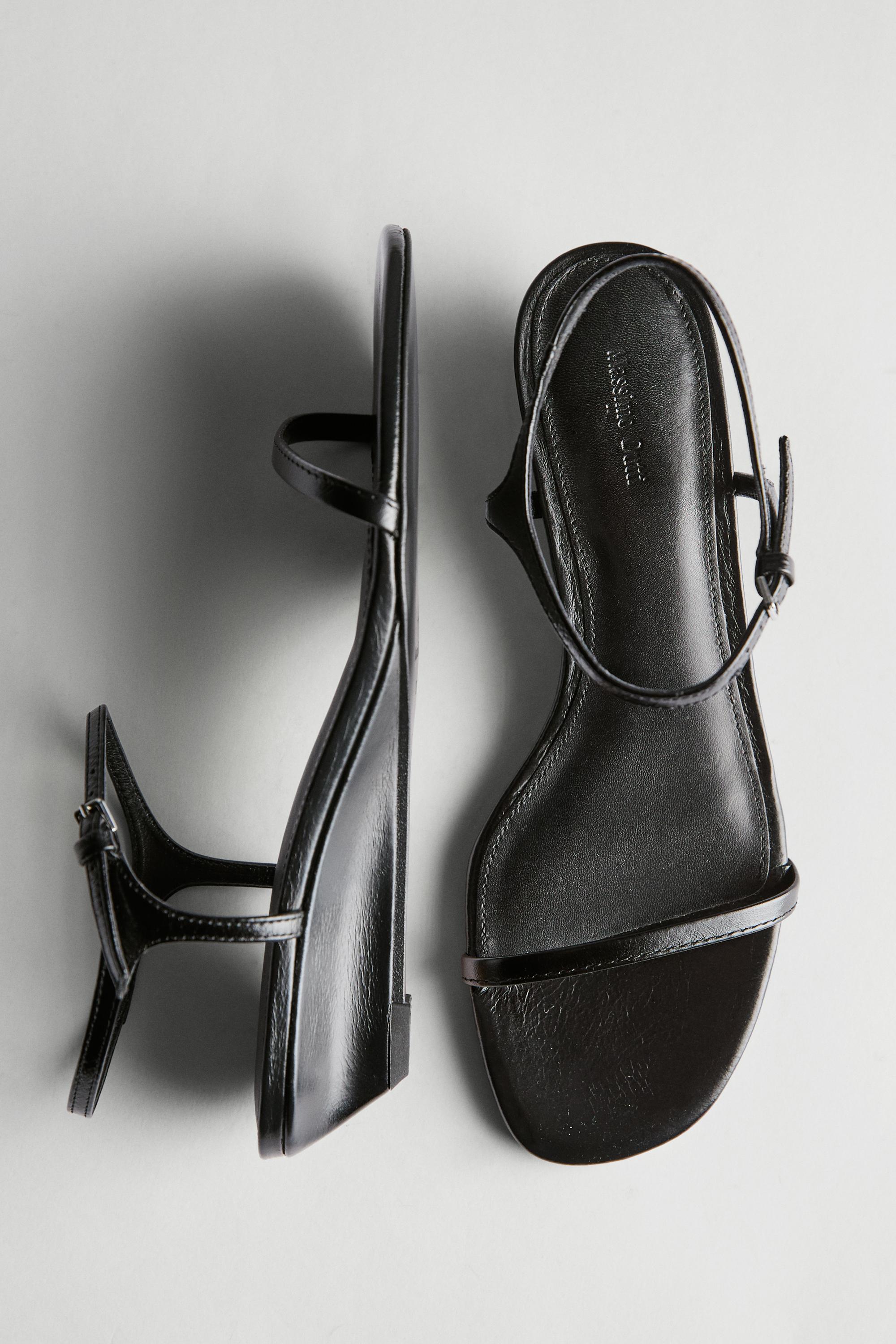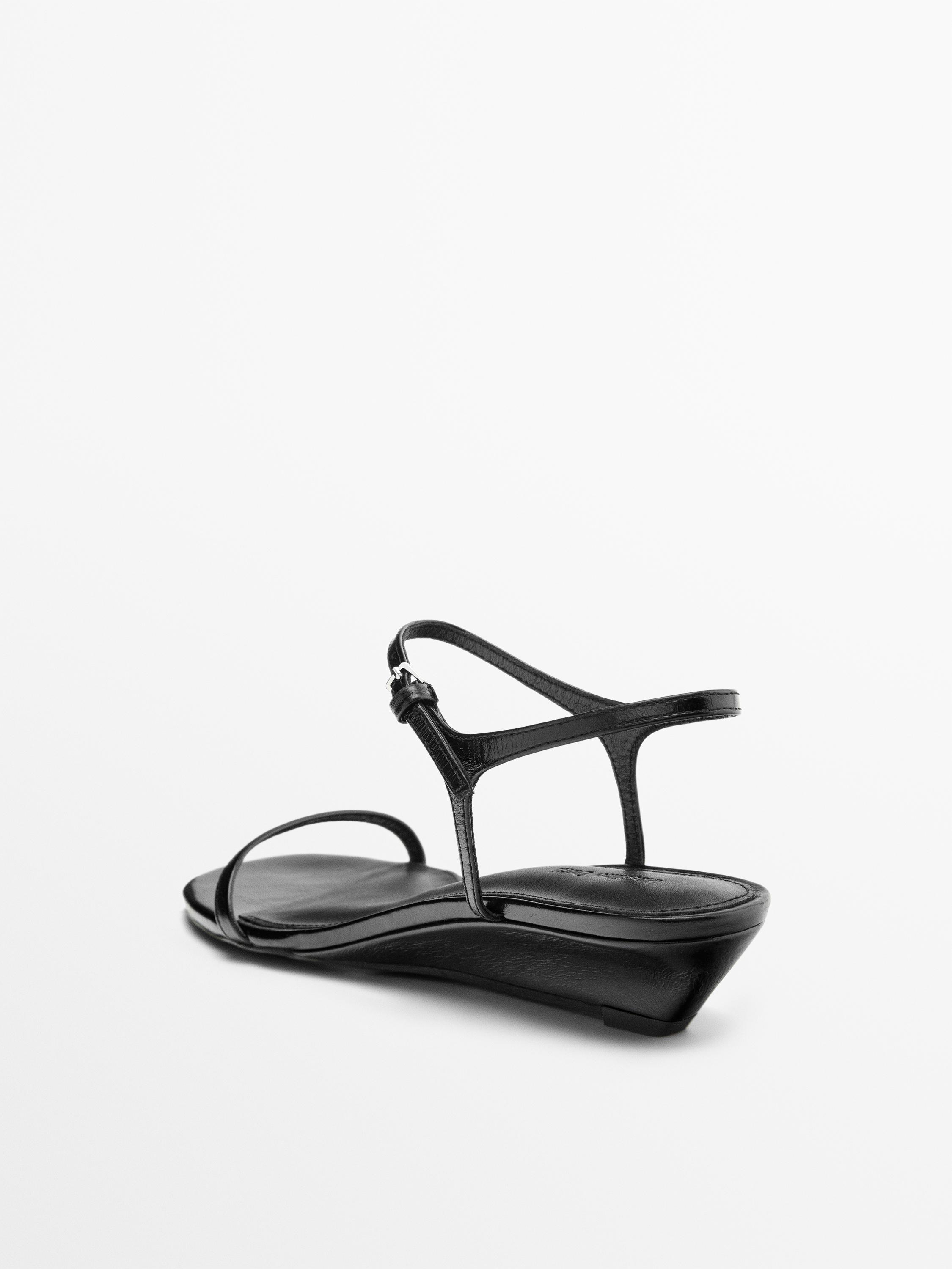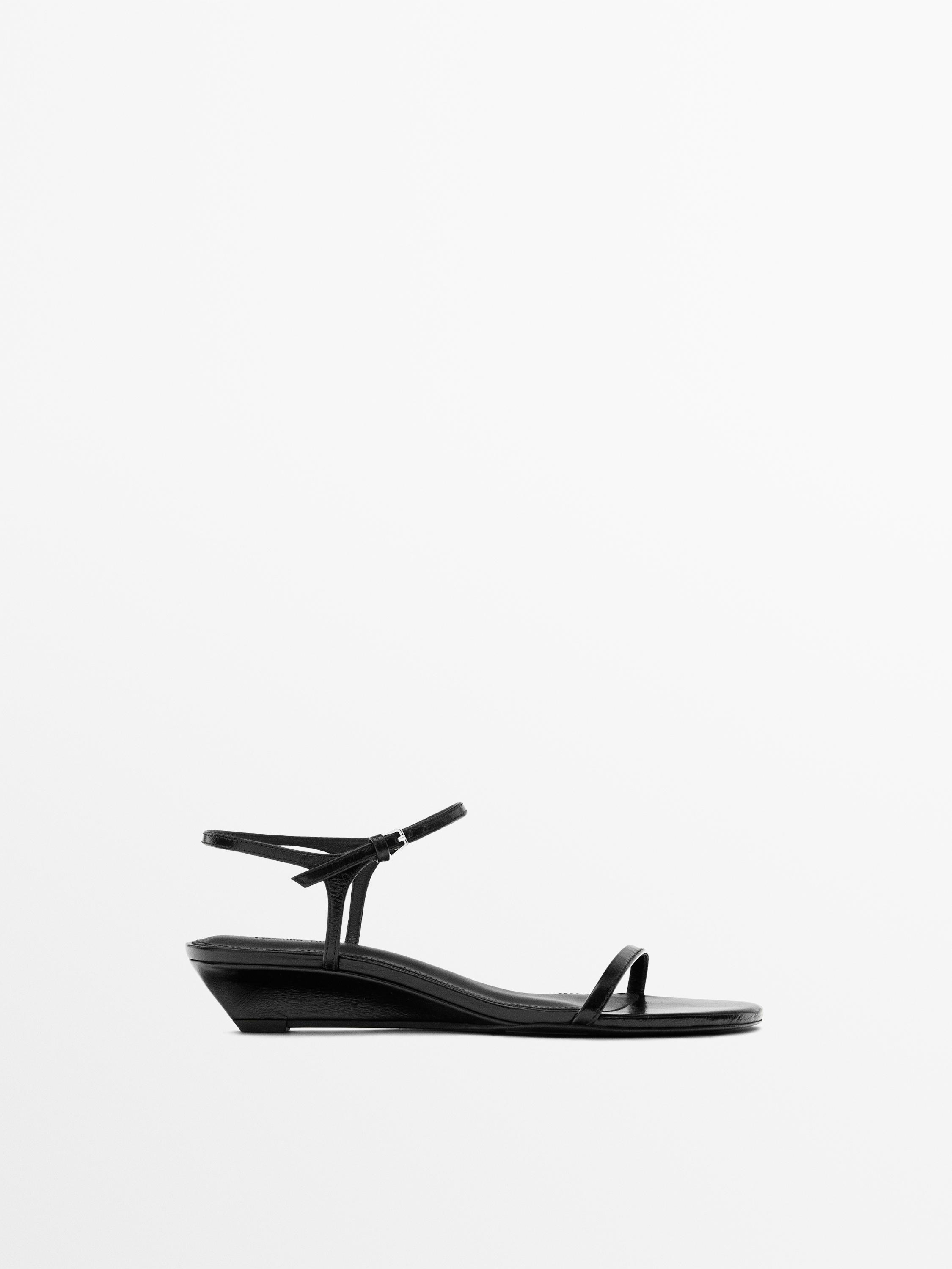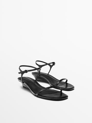 Massimo Dutti Кожаные сандалии на средней танкетке с ремешками, черный