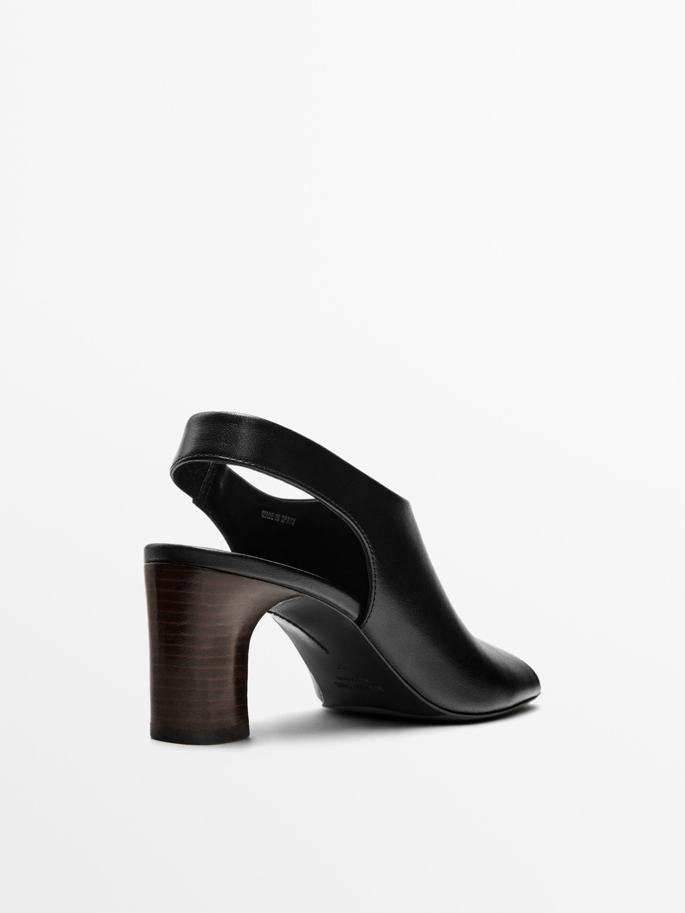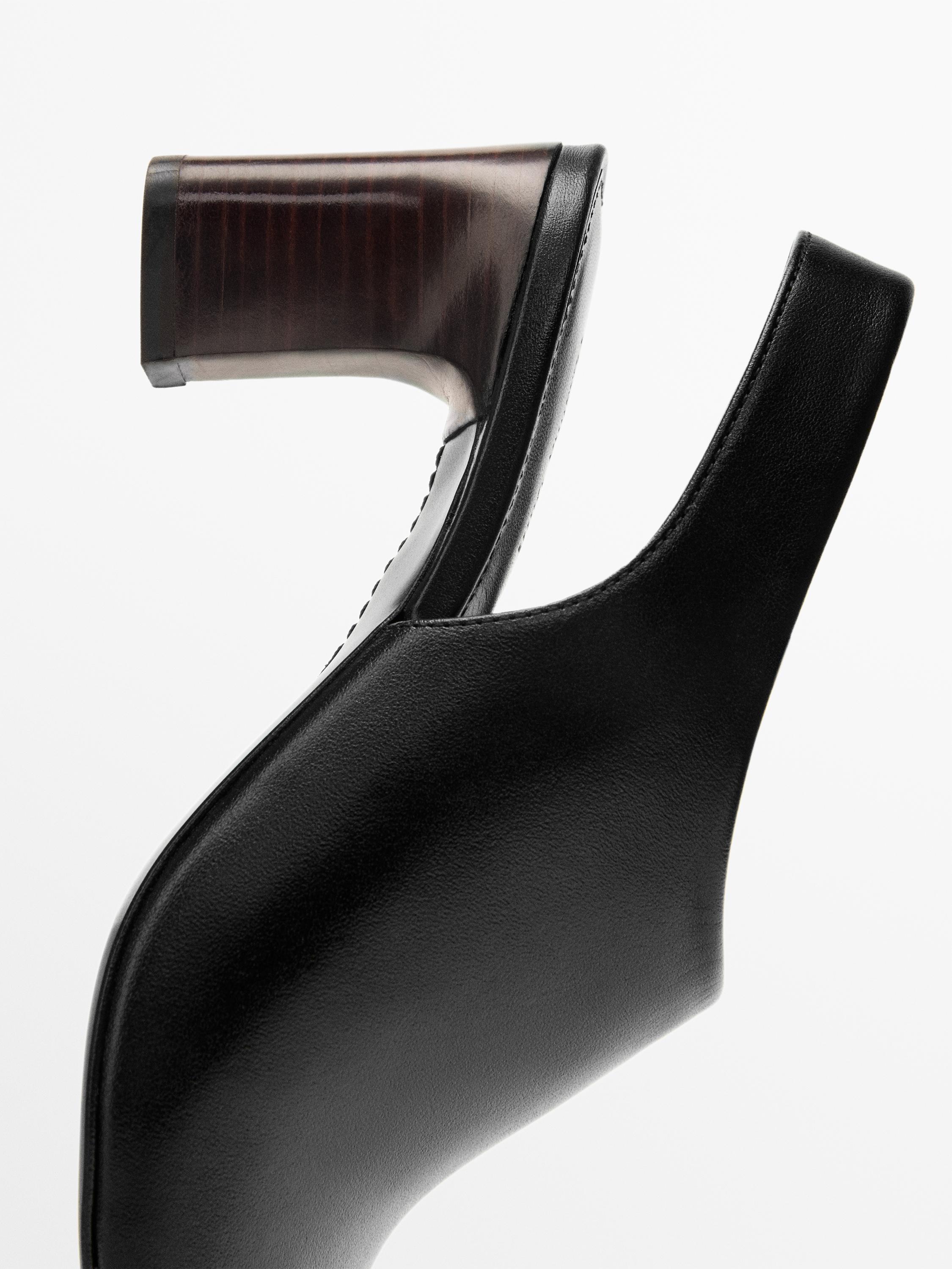 Massimo Dutti Кожаные сандалии на устойчивом каблуке, черный