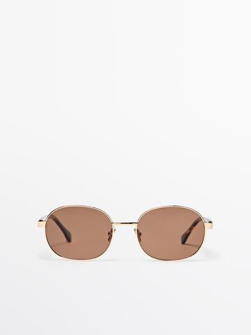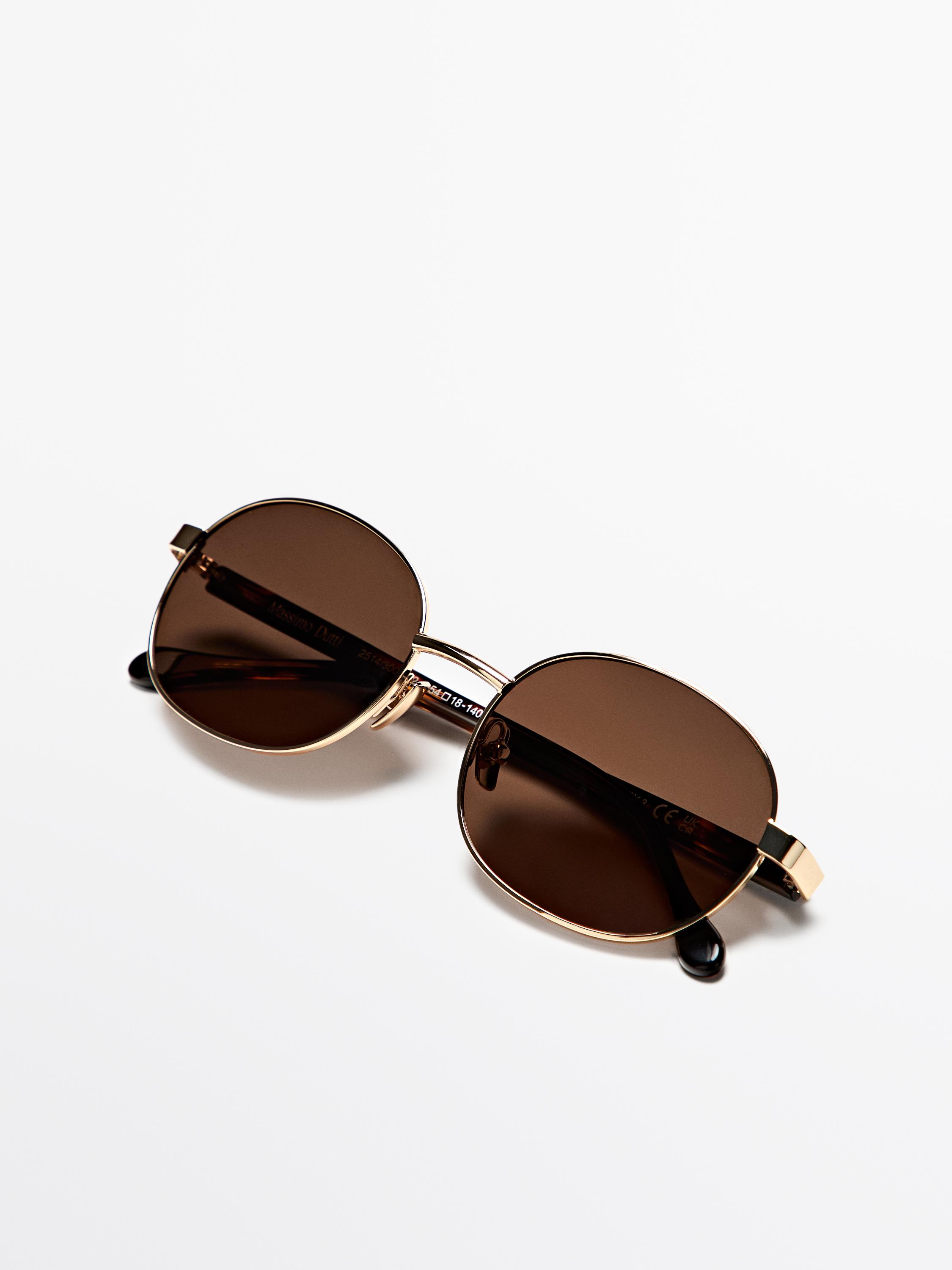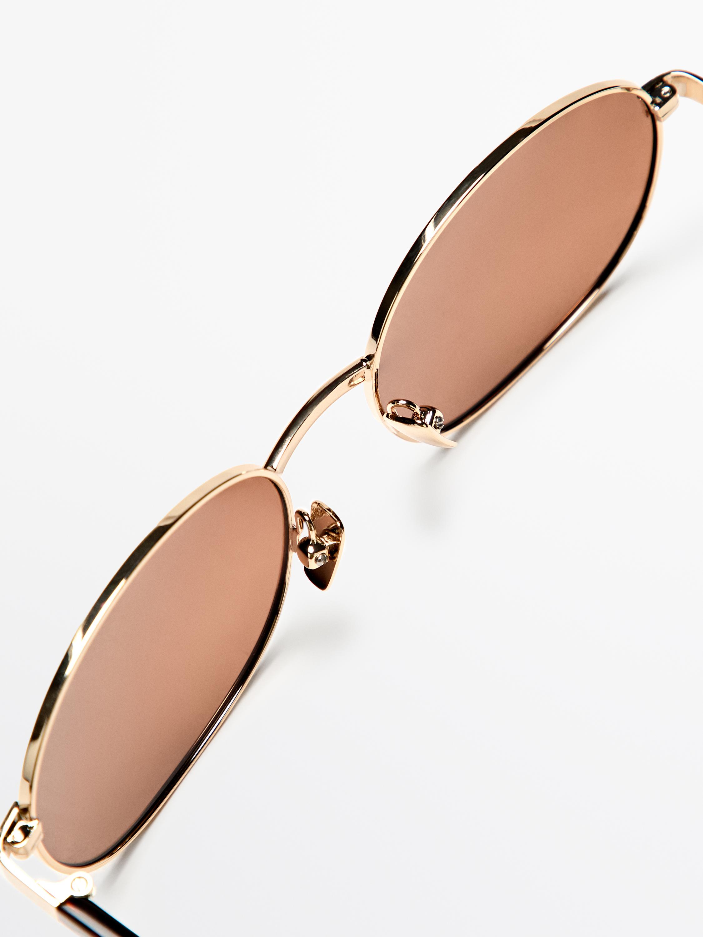 Massimo Dutti Круглые металлические солнцезащитные очки с эффектом черепаховой панцири, золотой