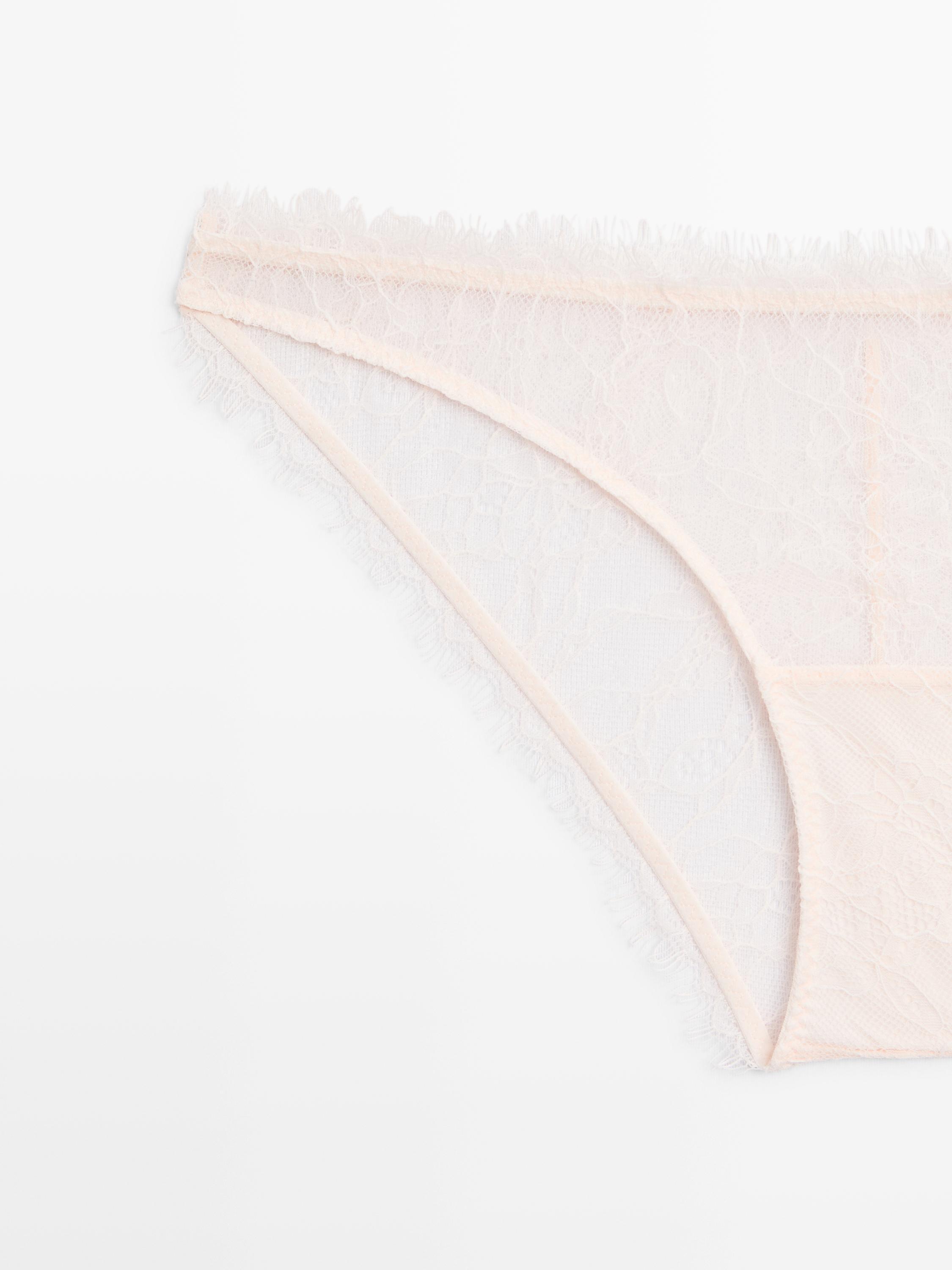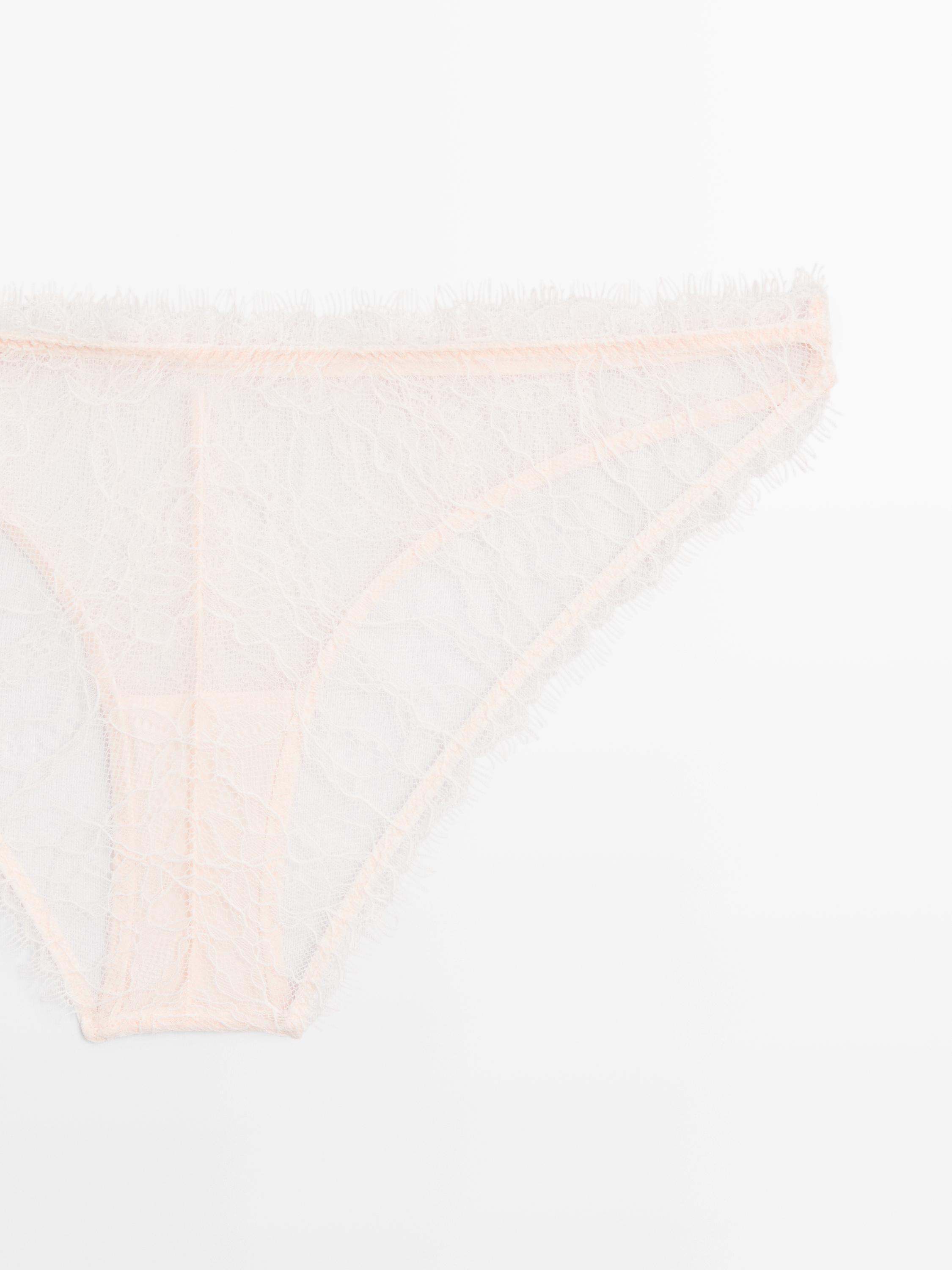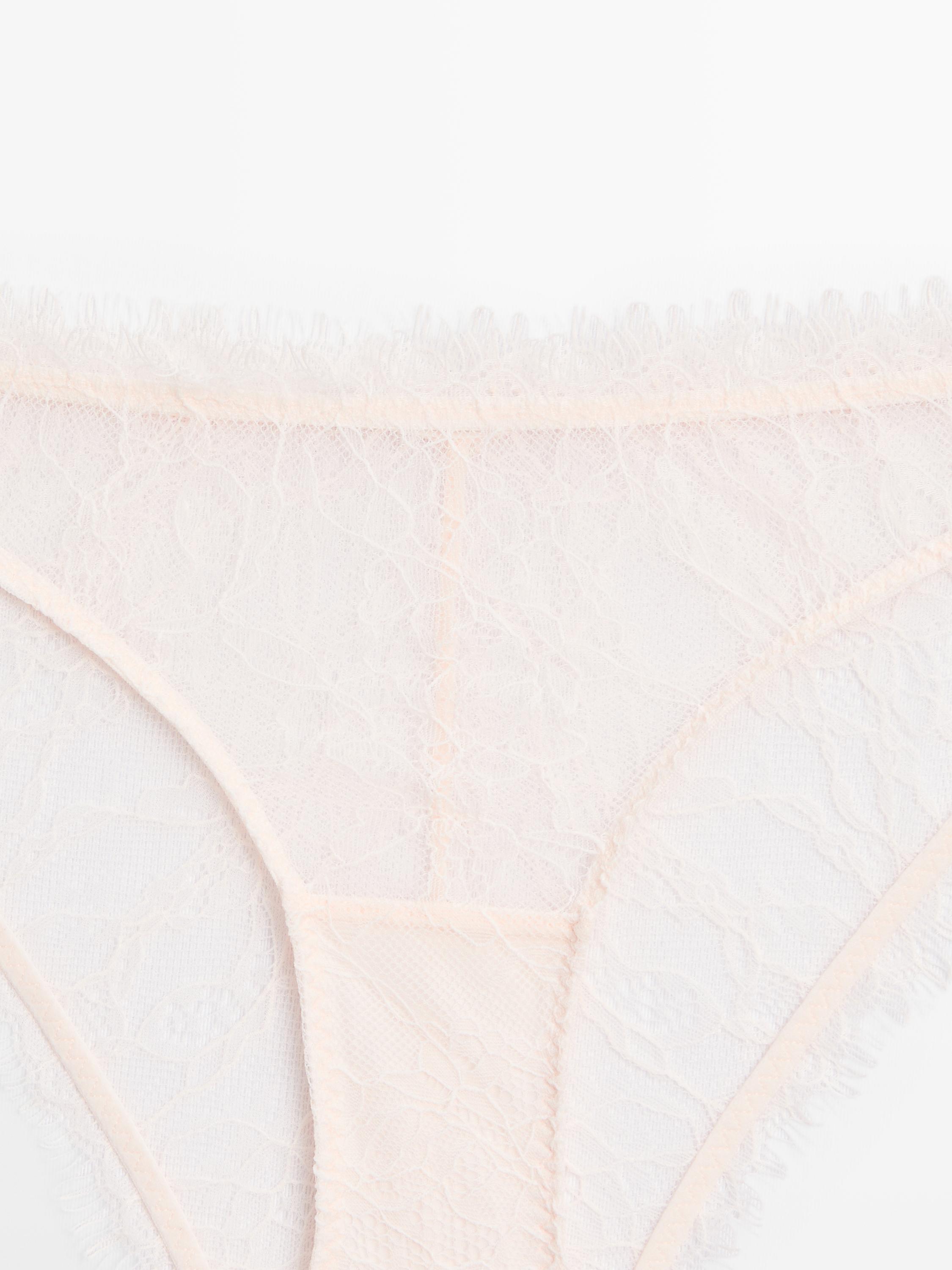 Massimo Dutti Кружевные трусы с необработанной кромкой, кремовый