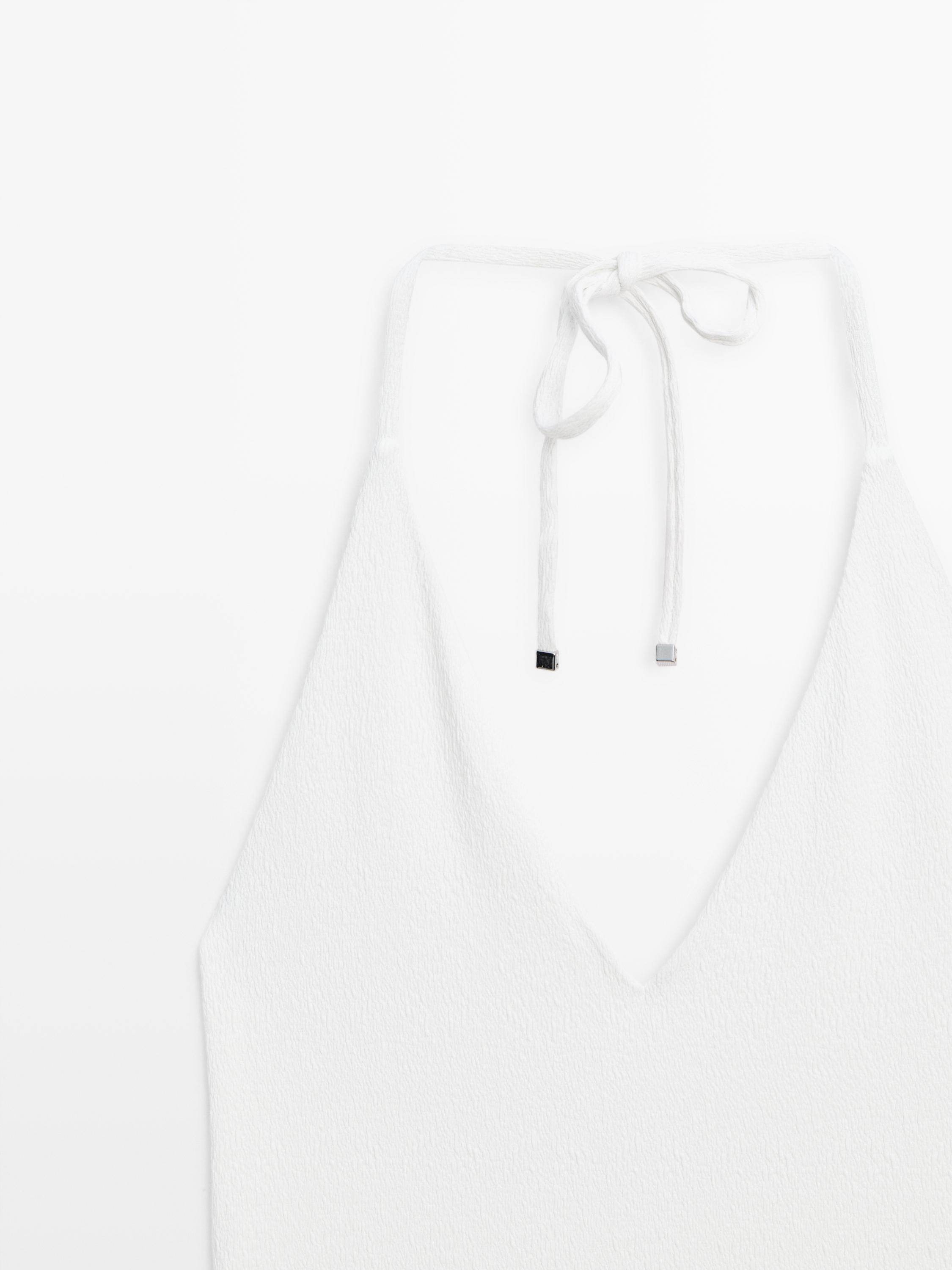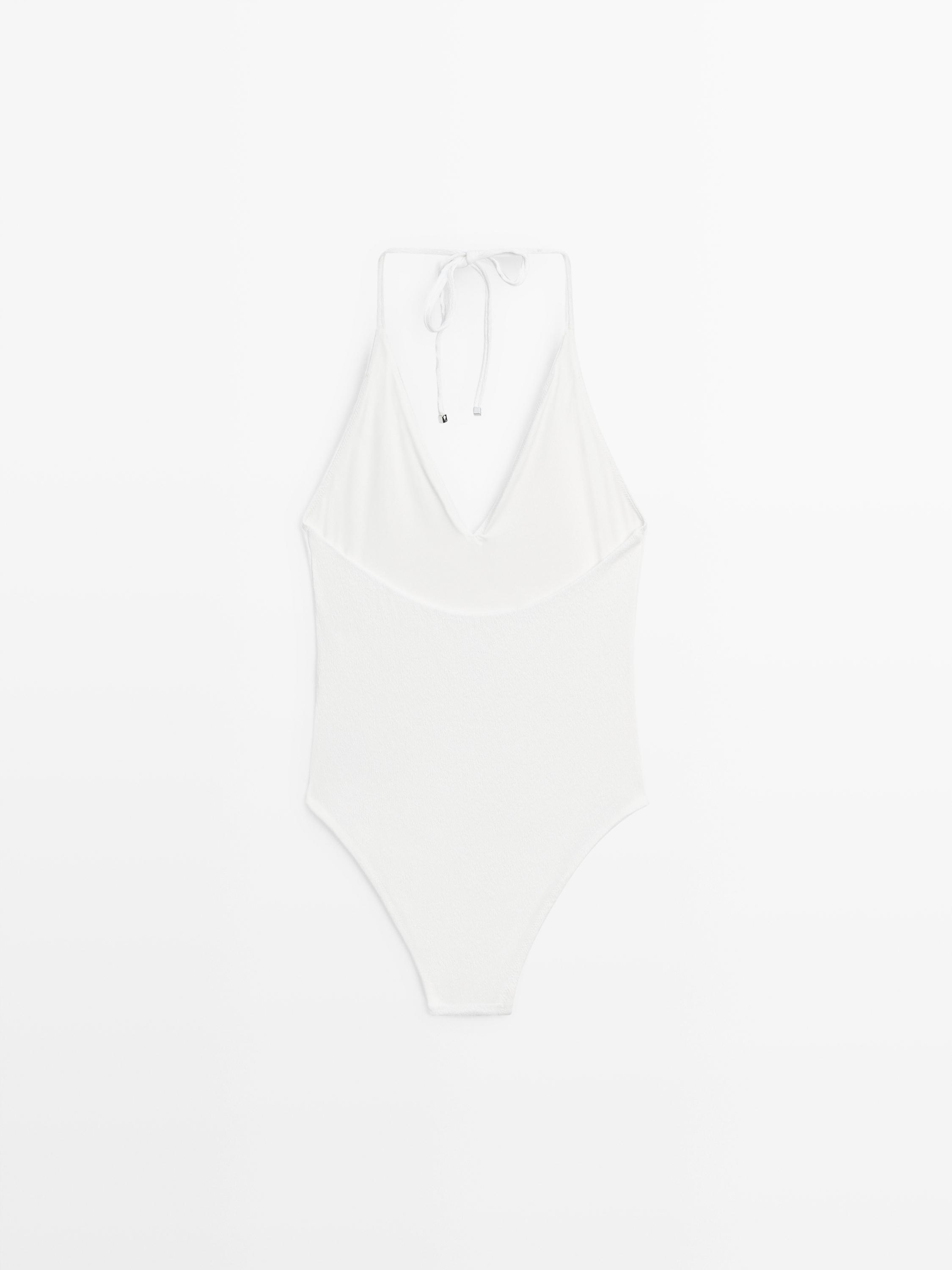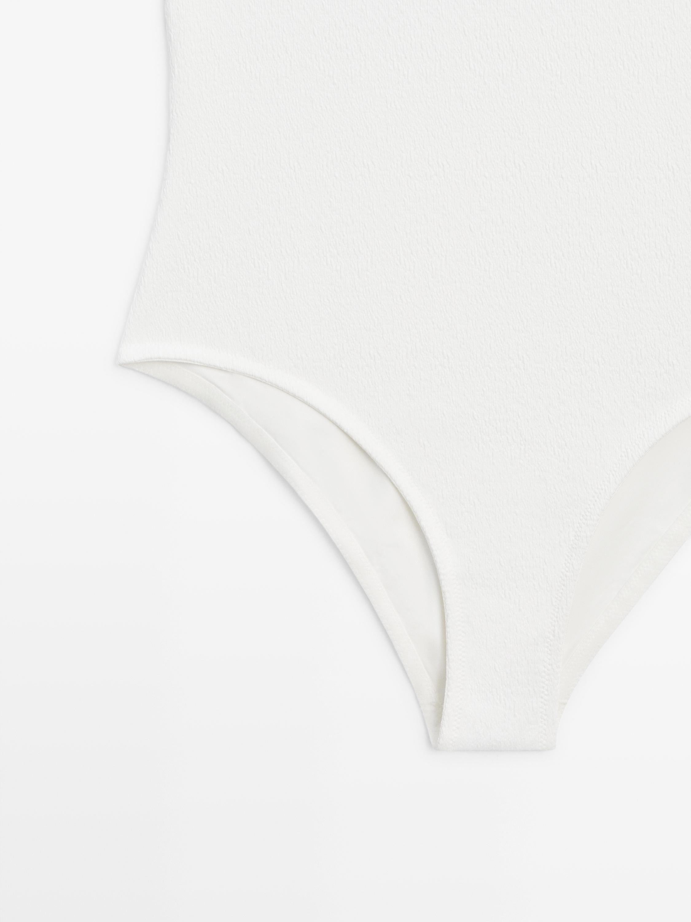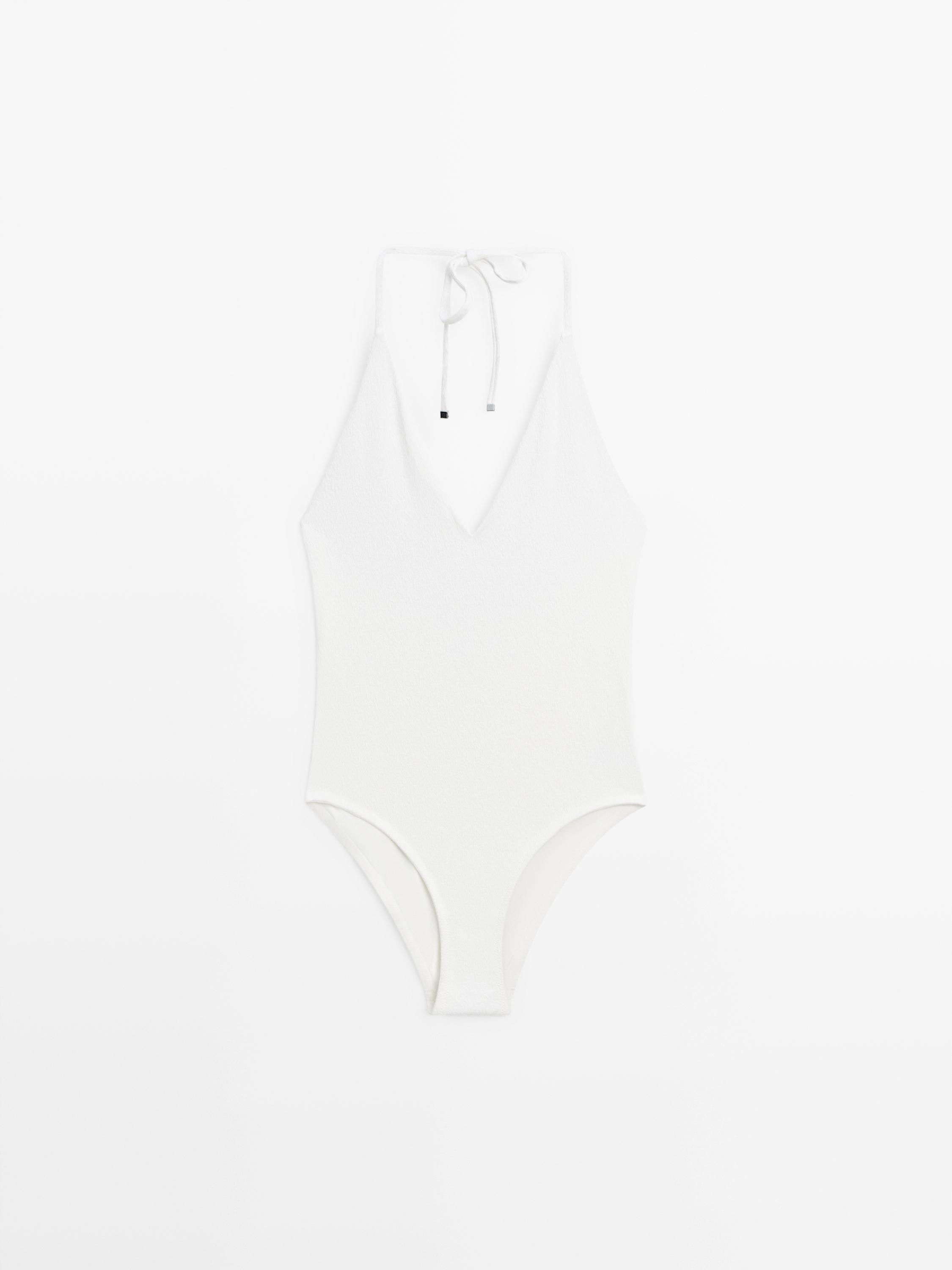Massimo Dutti Купальник из рельефной ткани с V-образным вырезом, белый