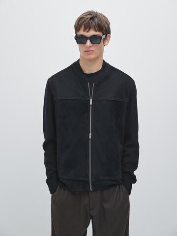 Massimo Dutti Куртка-бомбер из шерсти и замши, темно-синий