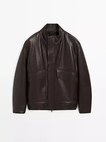 Massimo Dutti Куртка из кожи наппа с карманами, коричневый