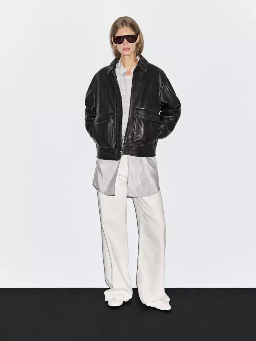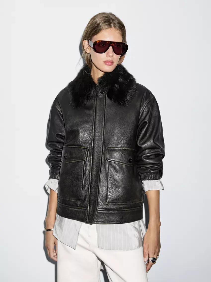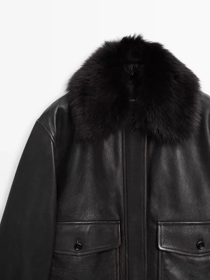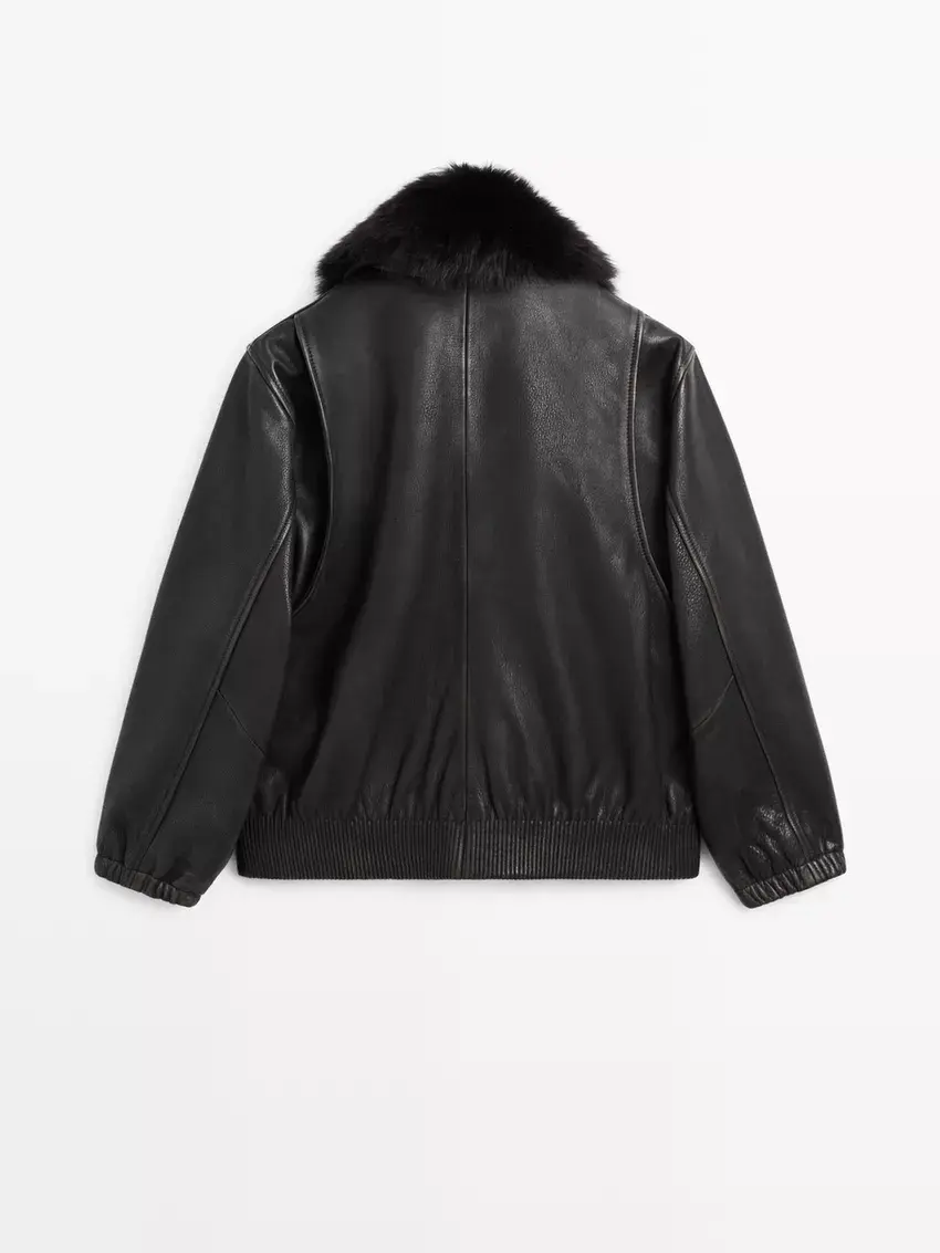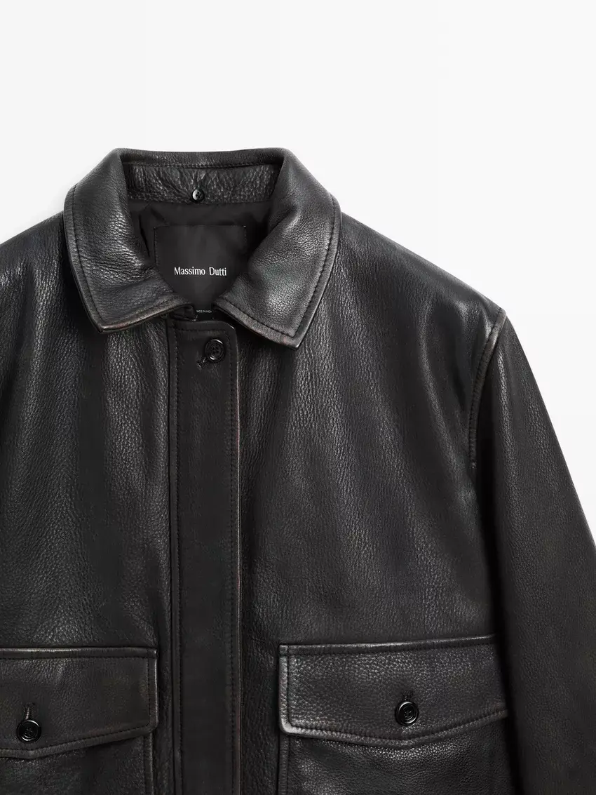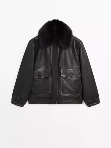 Massimo Dutti Куртка из кожи наппа с воротником, черный