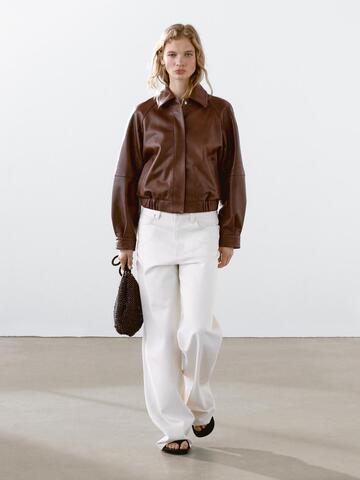 Massimo Dutti Куртка из кожи наппа с вощеным покрытием, коньячный