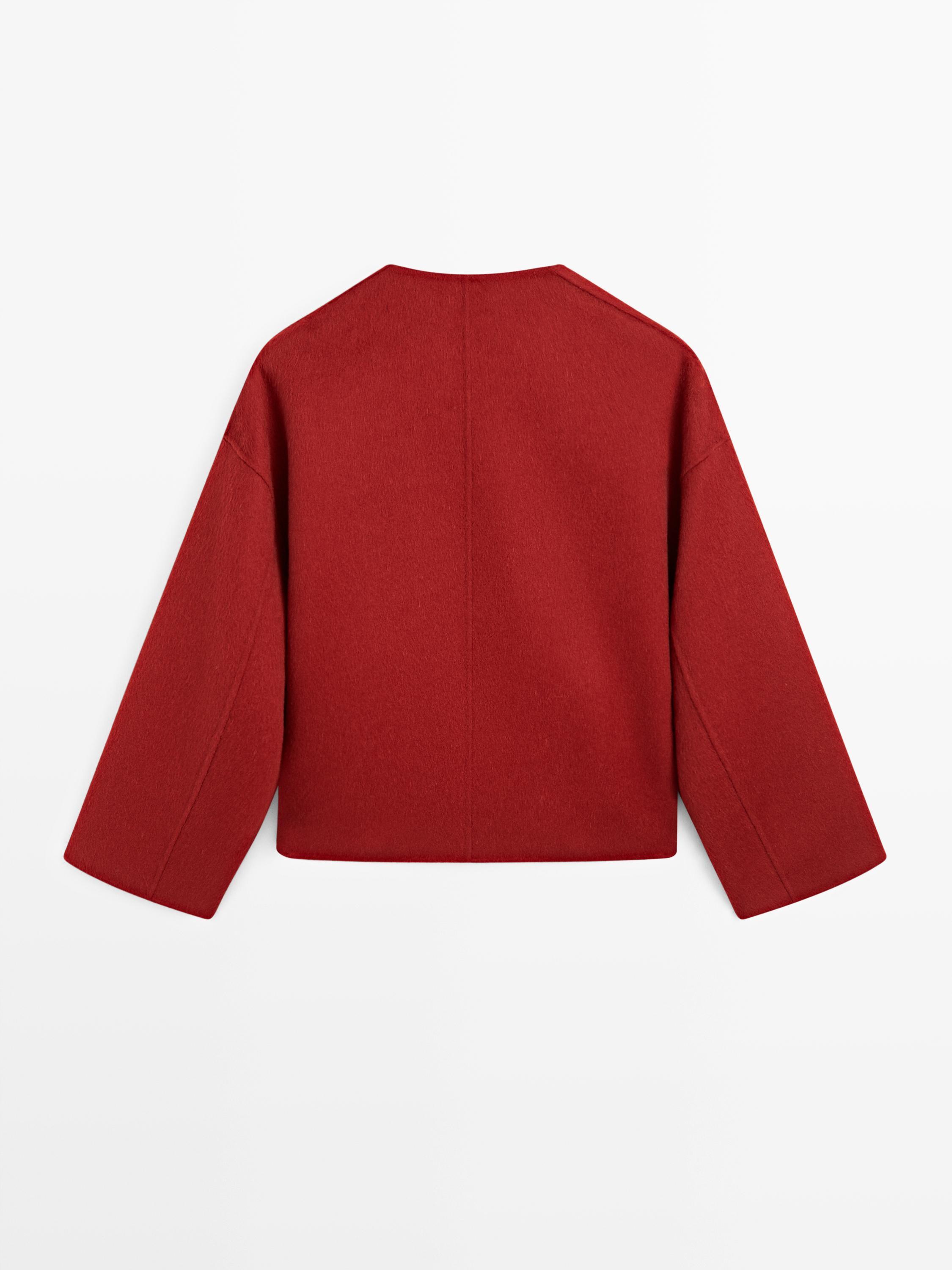 Massimo Dutti Куртка из смесовой шерсти с декоративными швами, красный