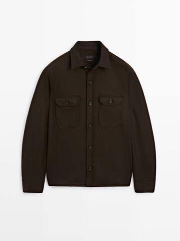 Massimo Dutti Куртка-рубашка из 100% шерсти с карманами, шоколадный