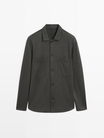 Massimo Dutti Куртка-рубашка с карманами на пуговицах, хаки