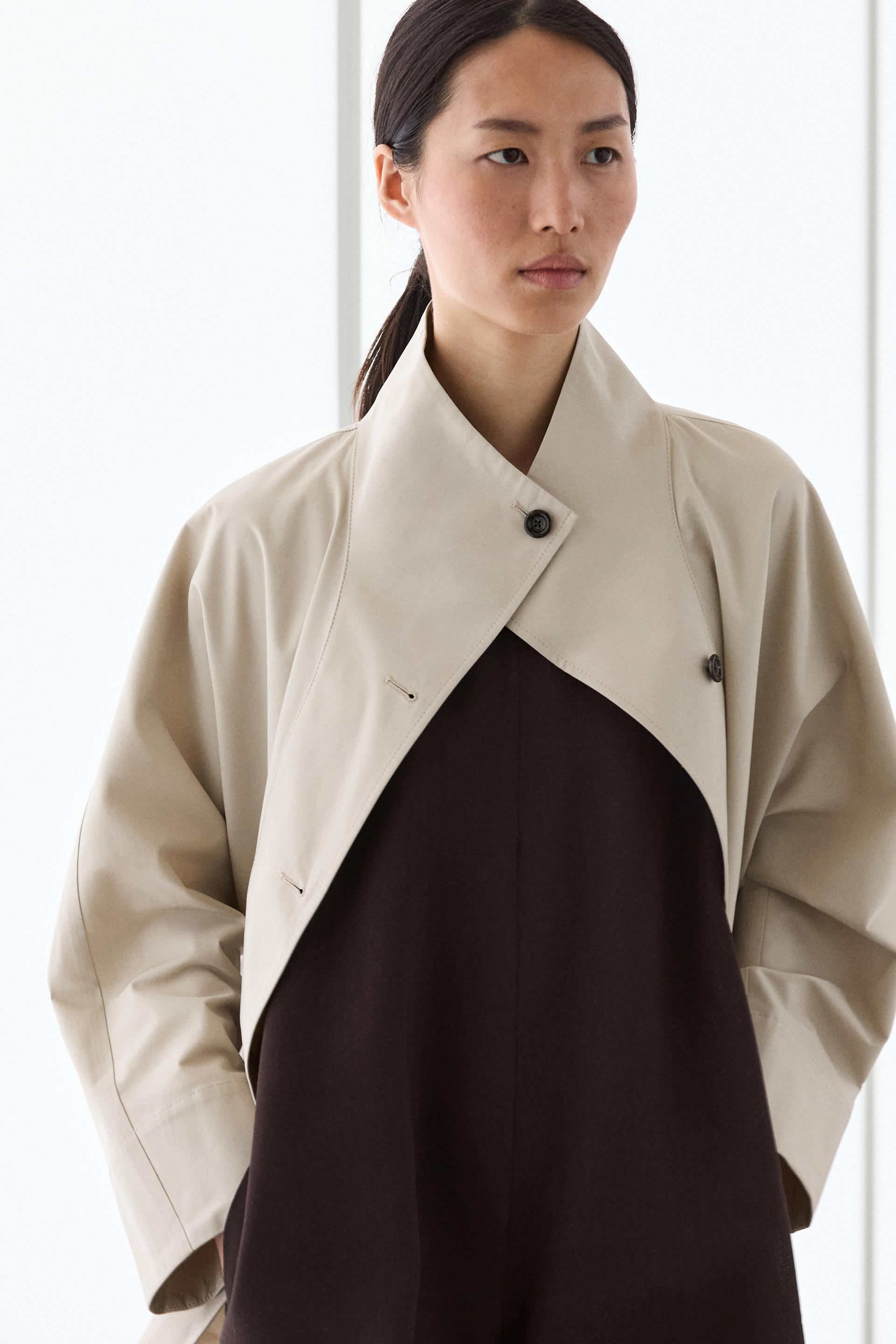 Короткая куртка из 100% хлопка . Длинные рукава. Застежка на пуговицы спереди. Высокий воротник. Два боковых кармана.