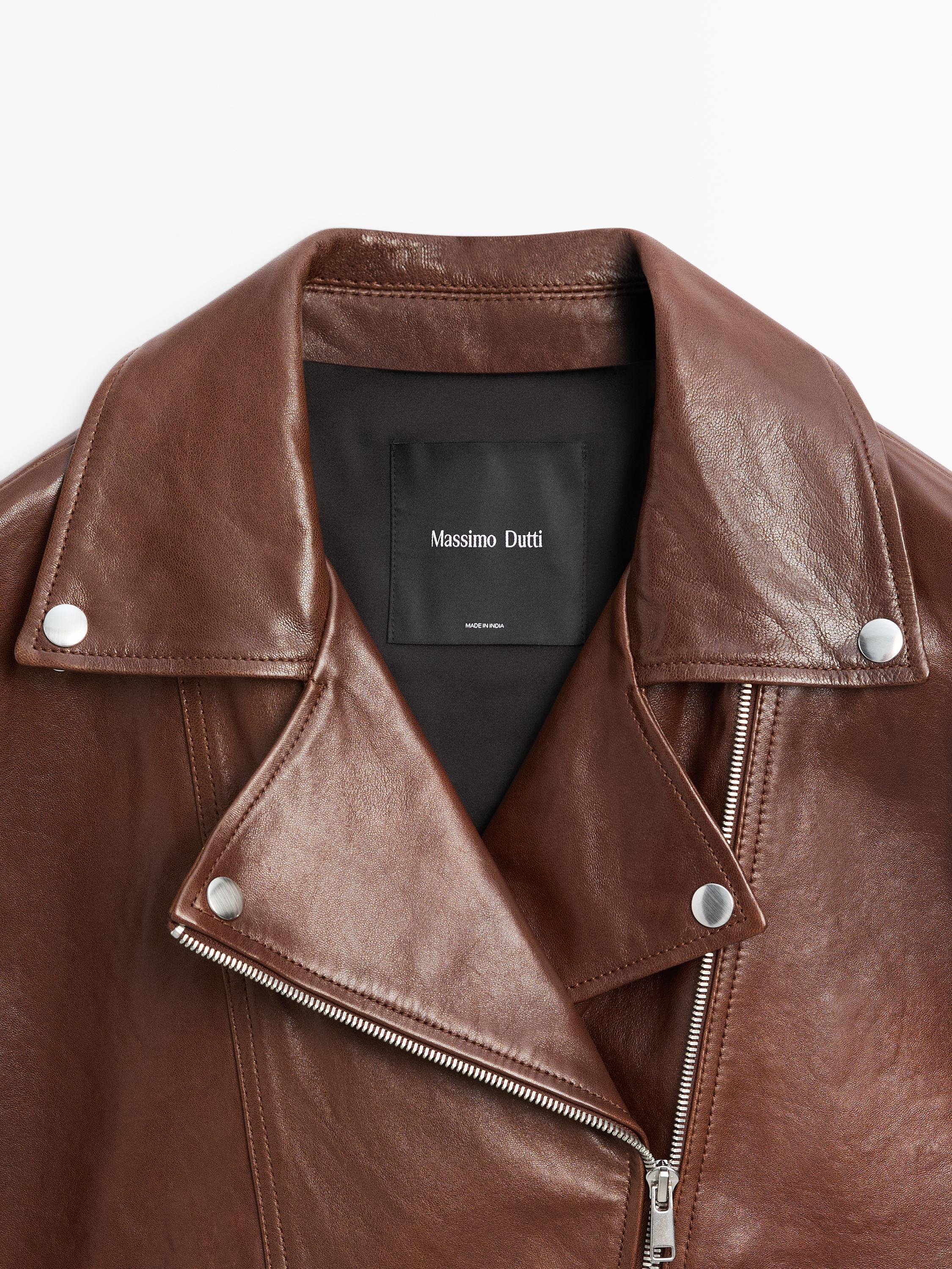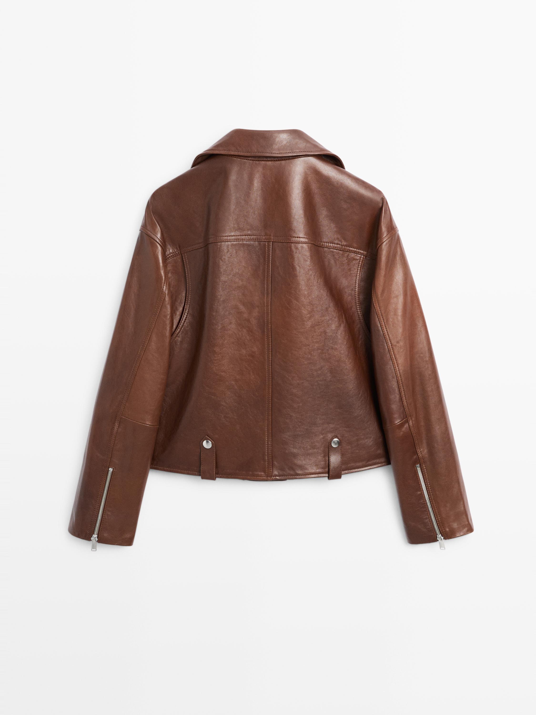 Massimo Dutti Куртка в байкерском стиле из кожи наппа, коричневый
