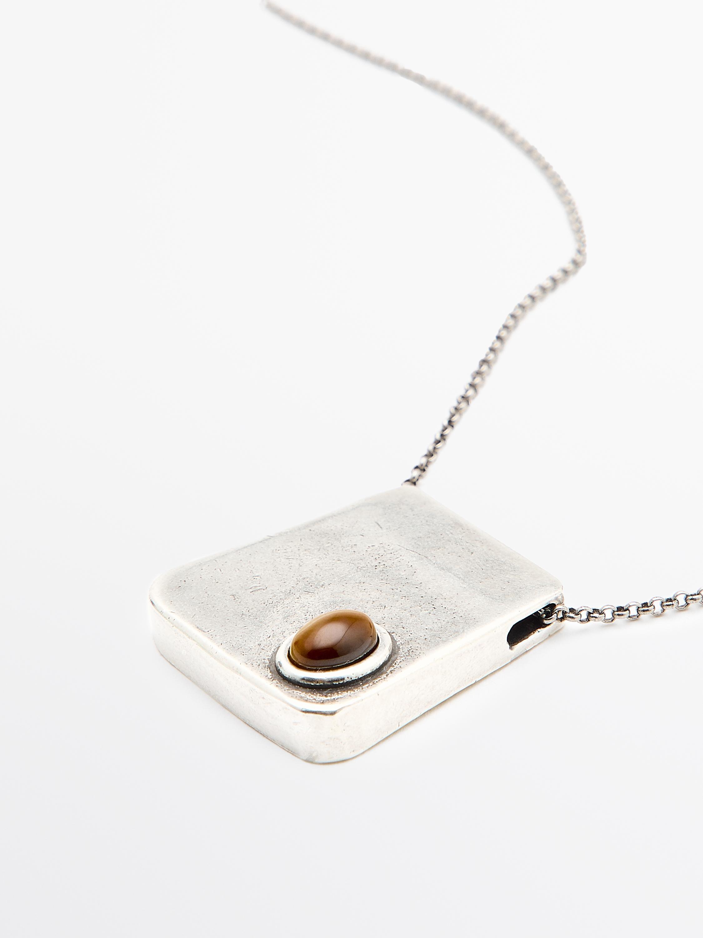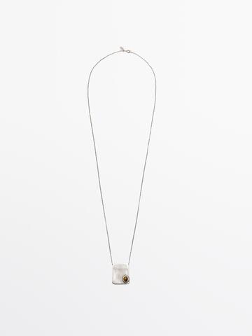 Massimo Dutti Квадратная подвеска с камнем, серебряный