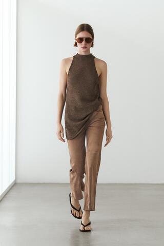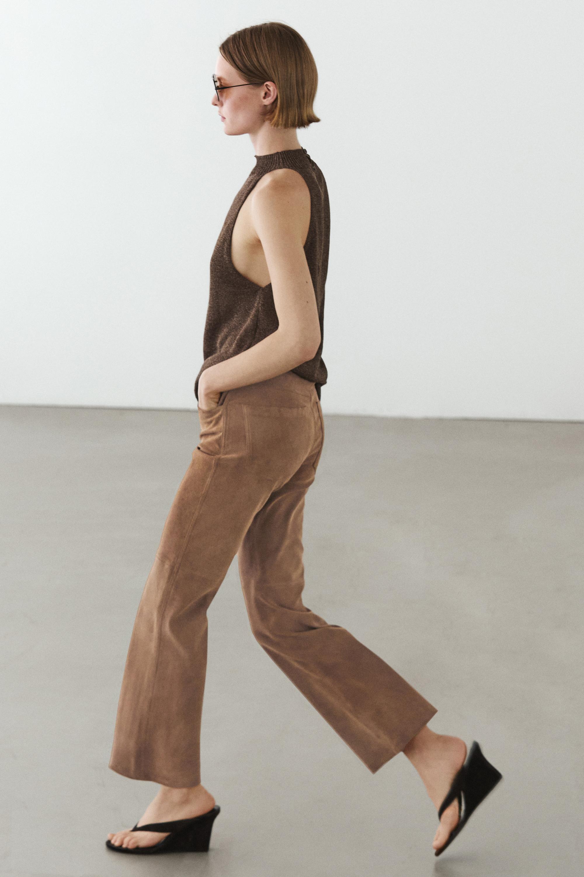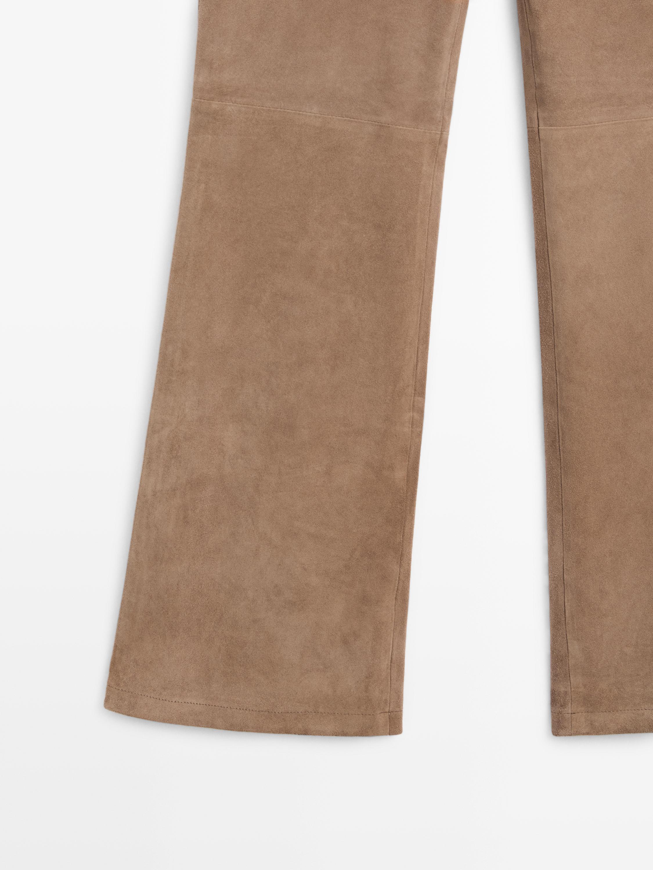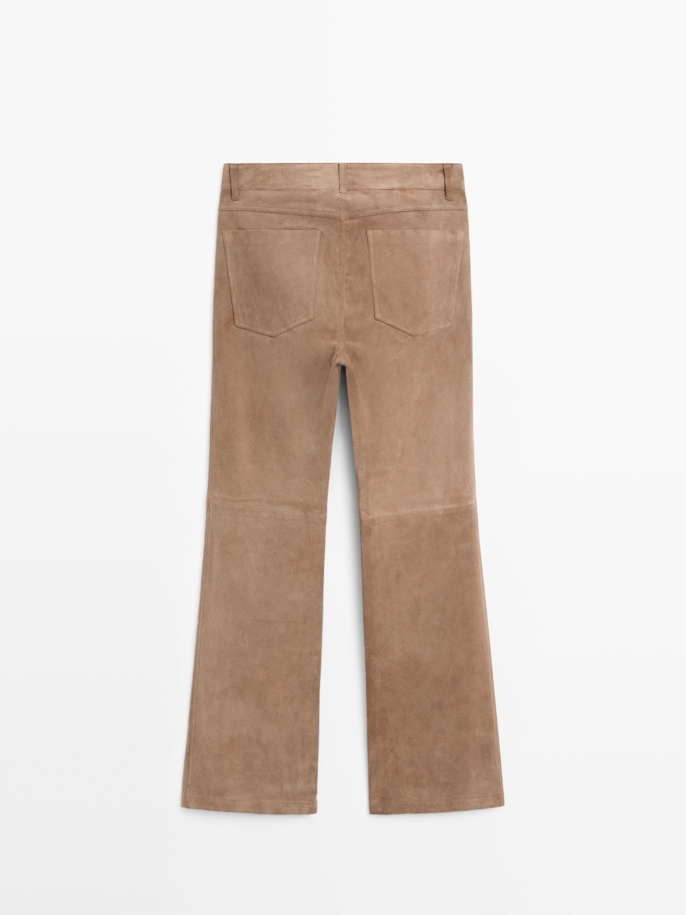 Massimo Dutti Легинсы из замши расклешенного кроя, серо-коричневый