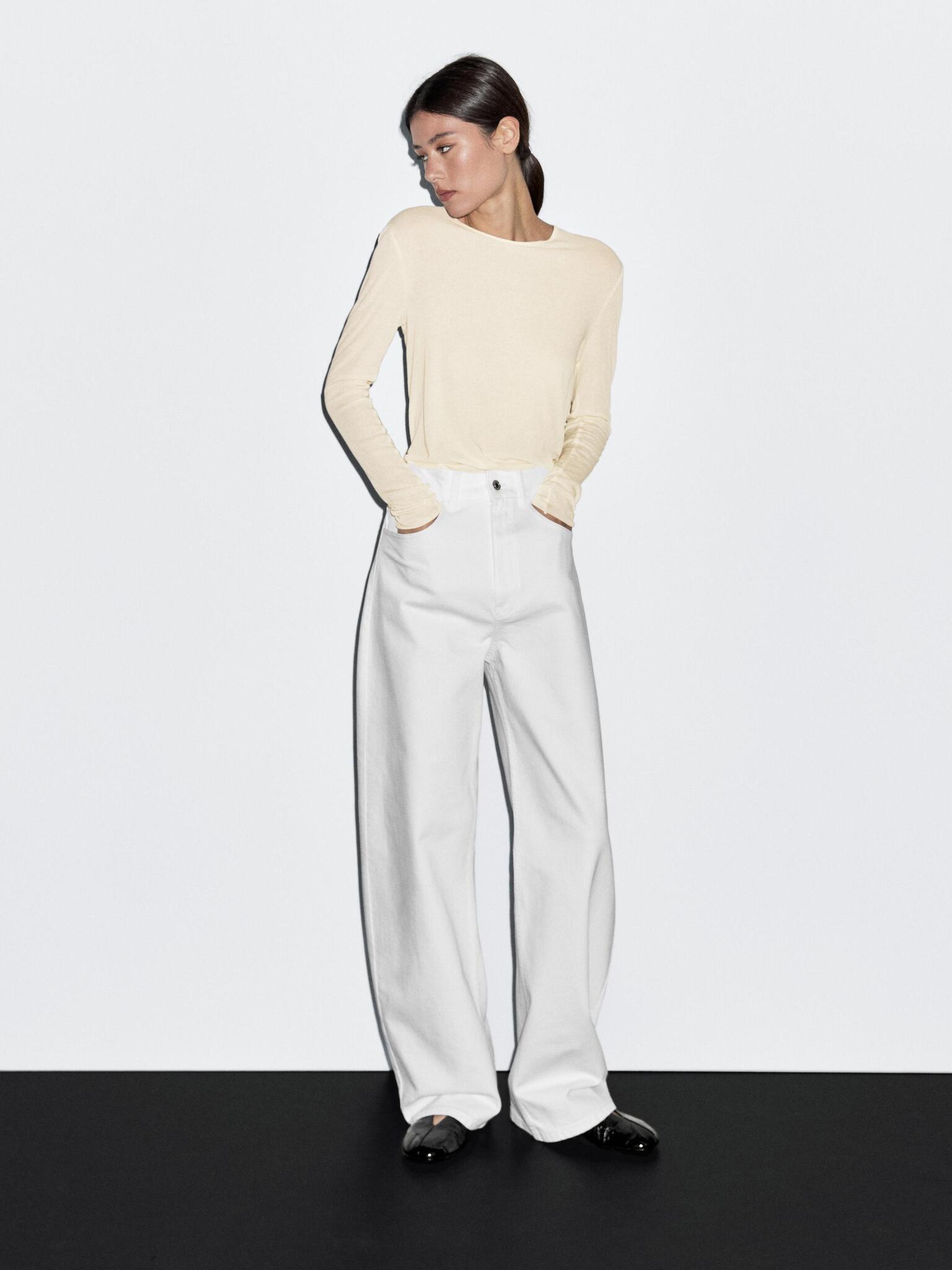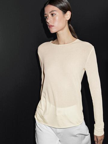 Футболка из хлопкового модала. Длинные рукава. Центральная строчка на спине. Тонкая, лёгкая ткань.