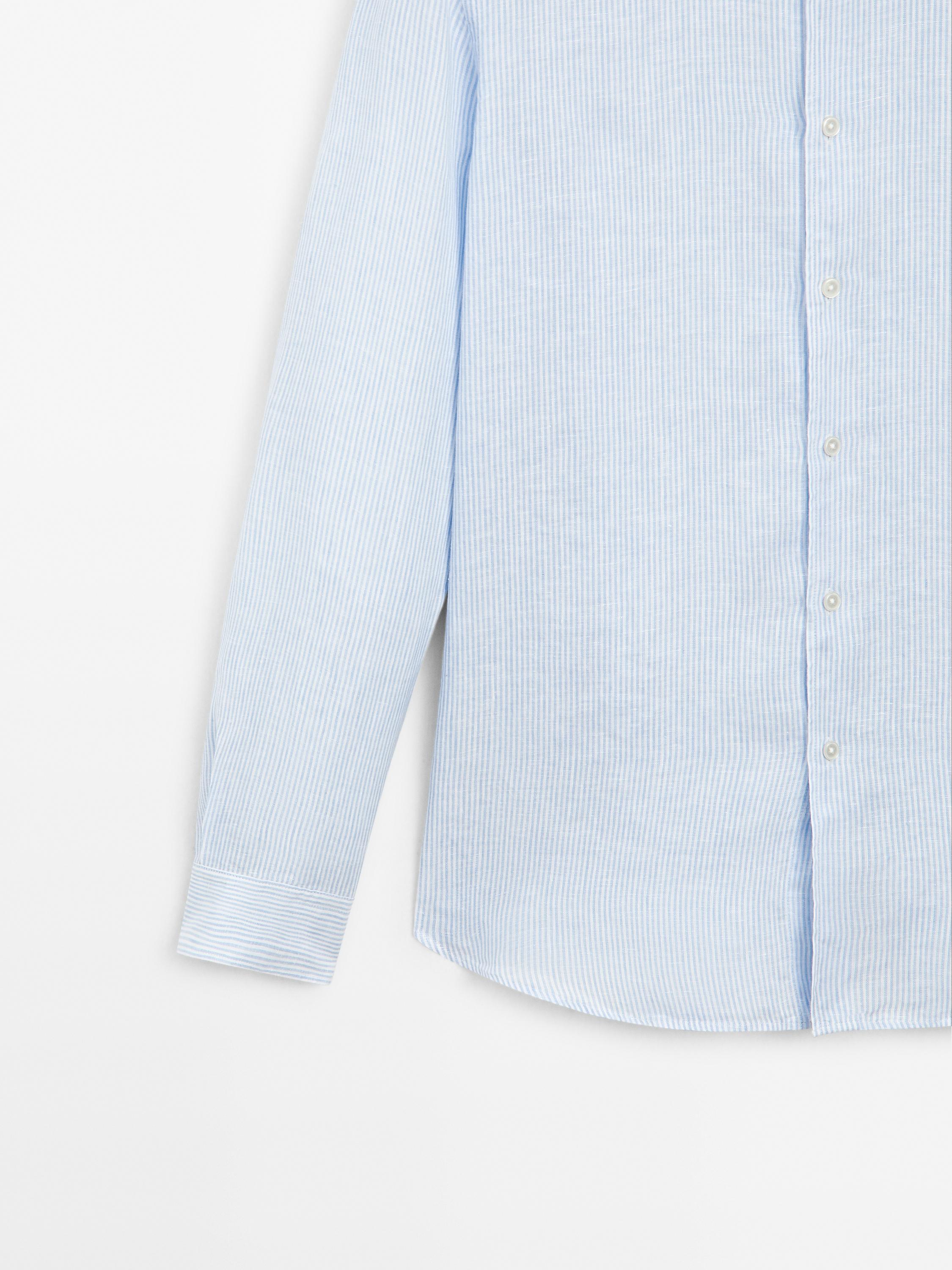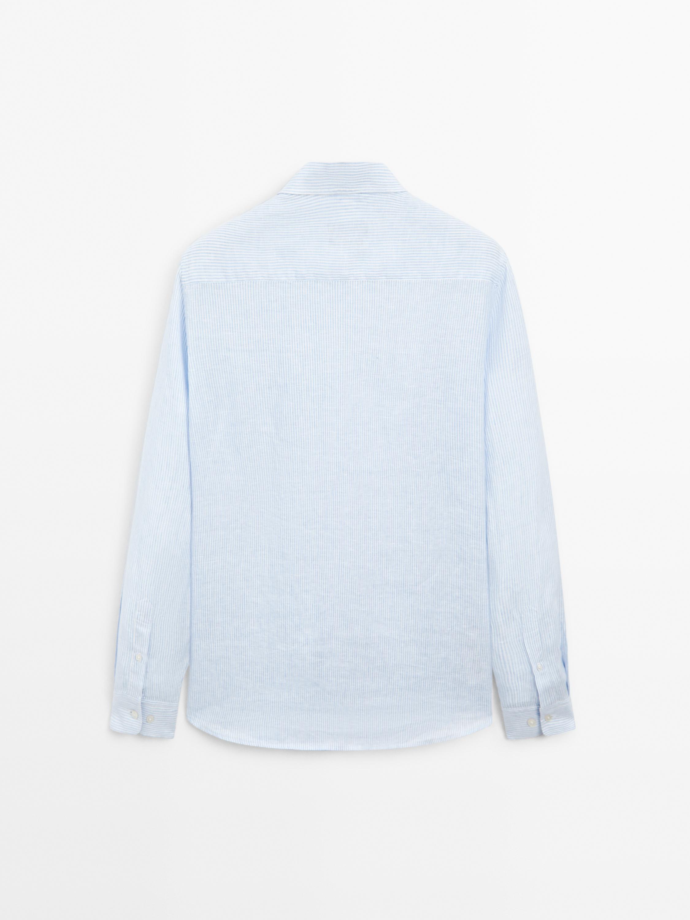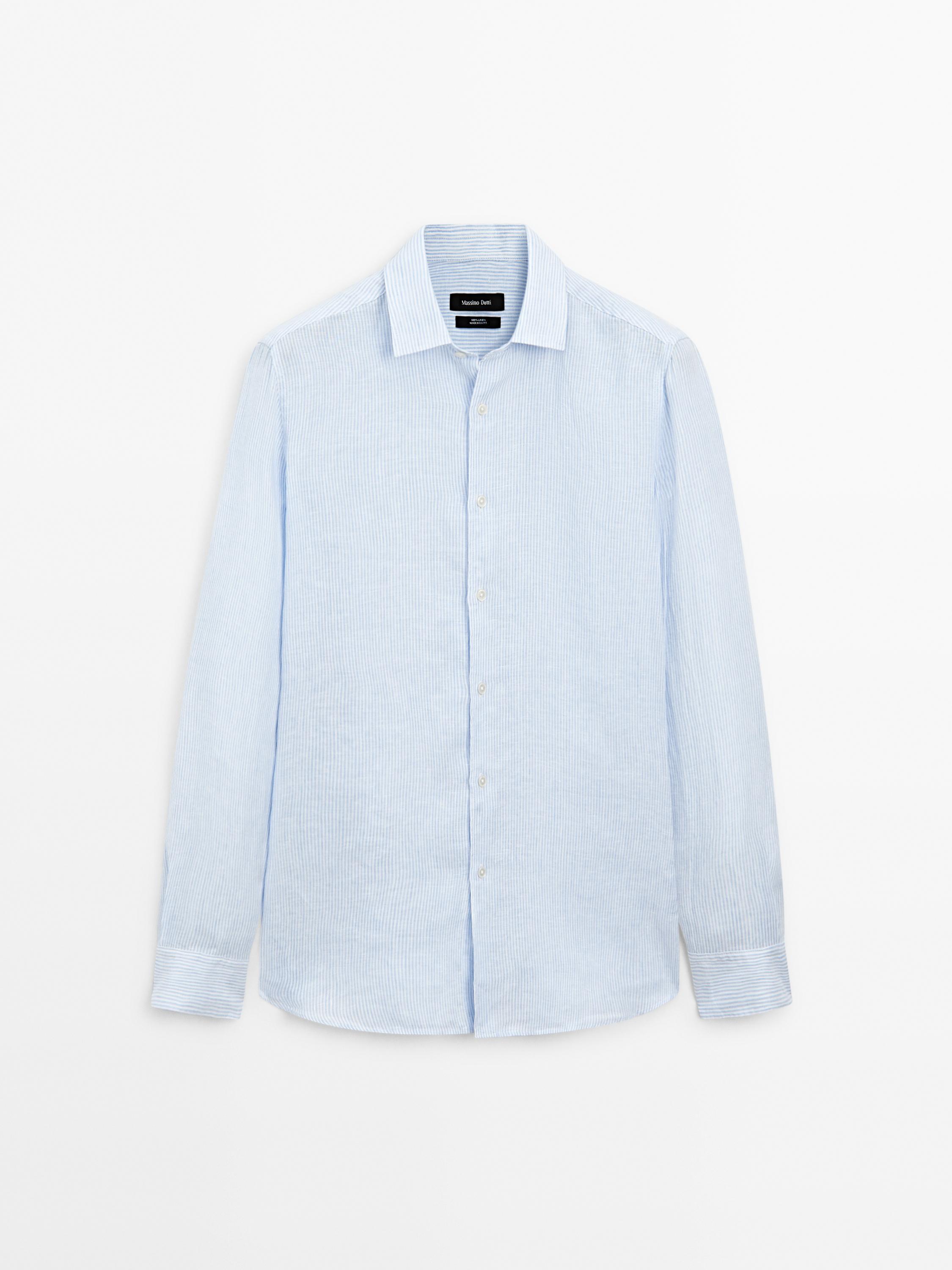 Massimo Dutti Льняная рубашка приталенного кроя, небесно-голубой