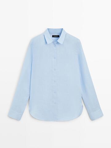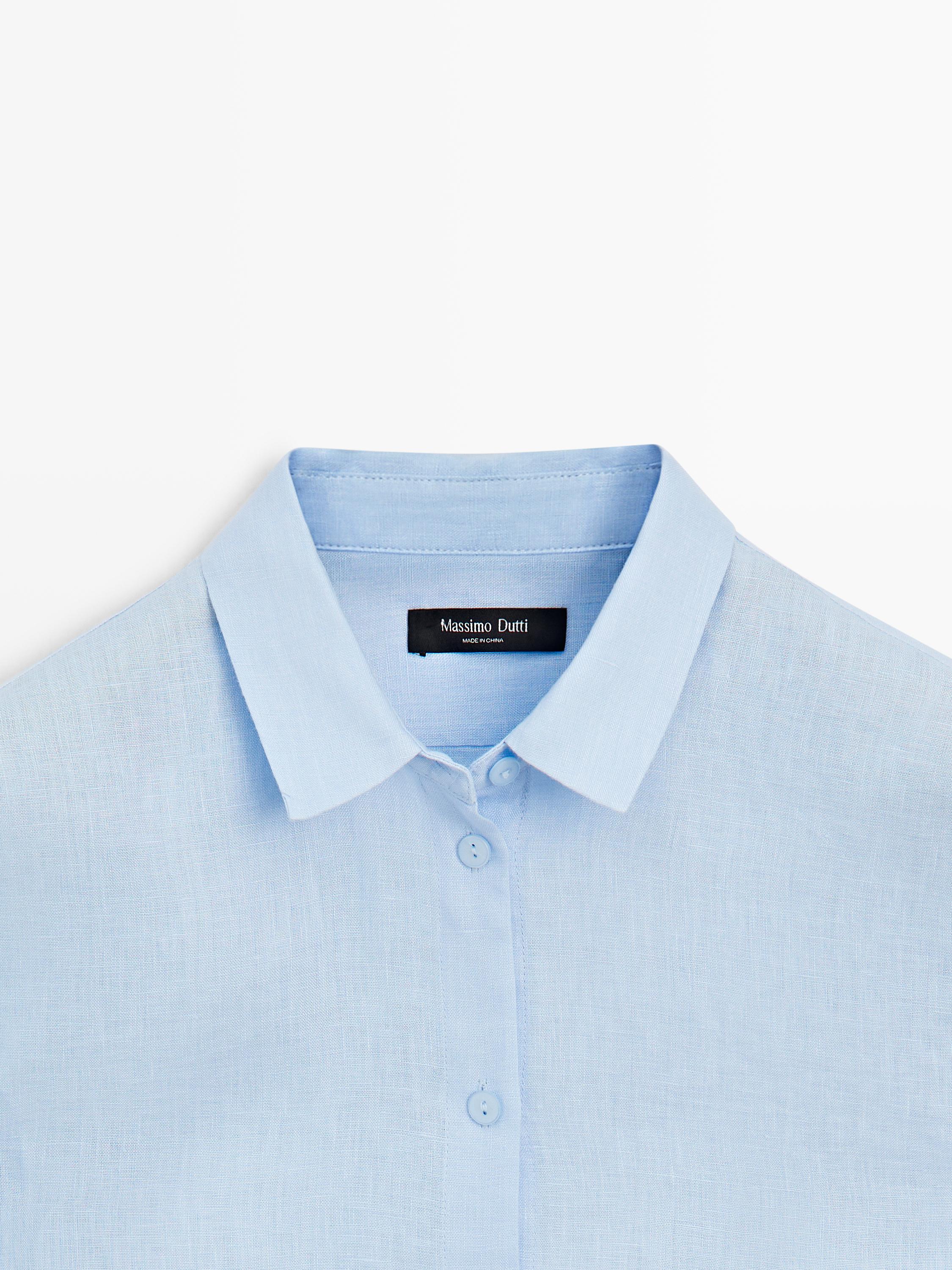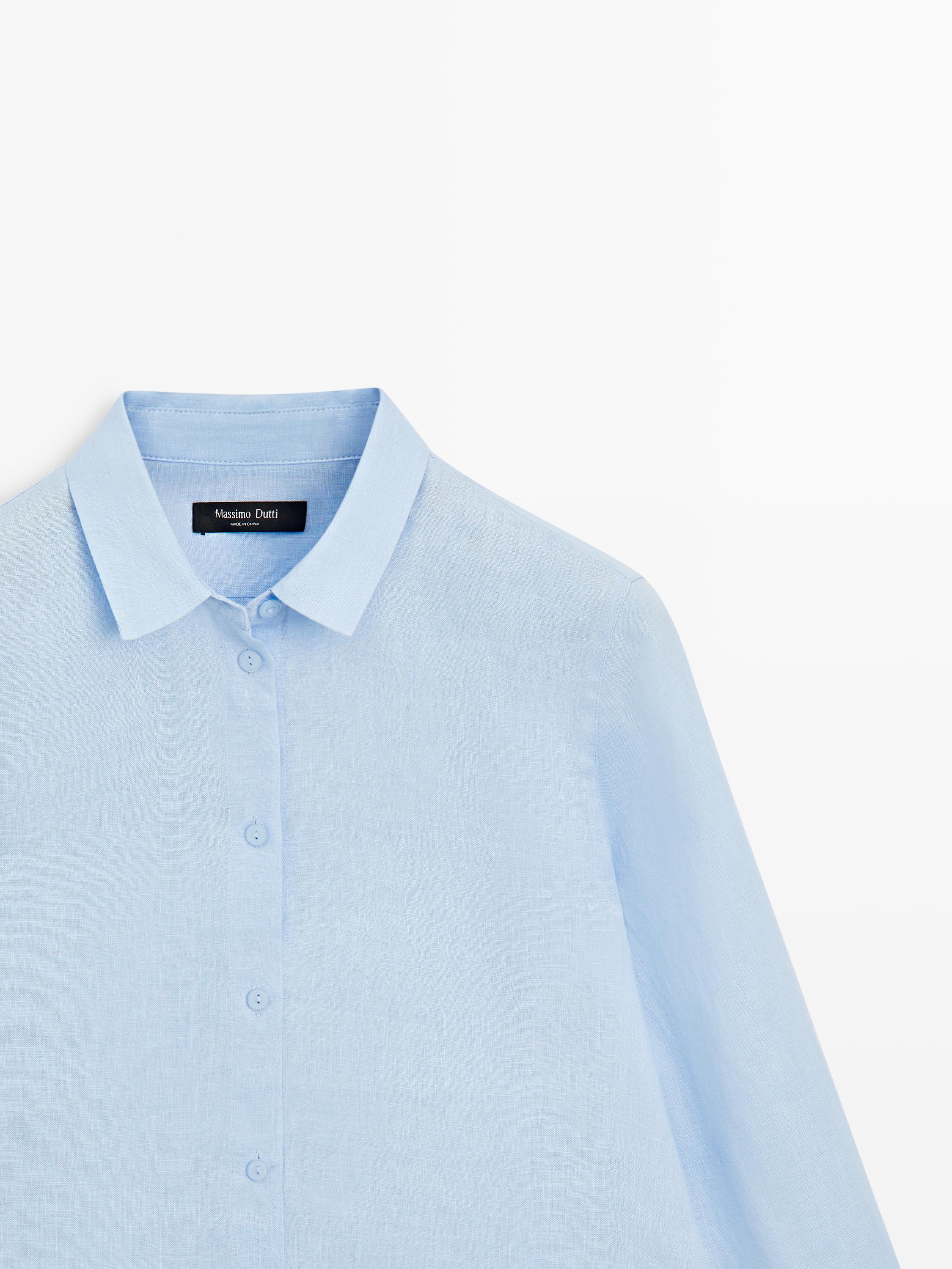 Massimo Dutti Льняная рубашка свободного кроя, небесно-голубой
