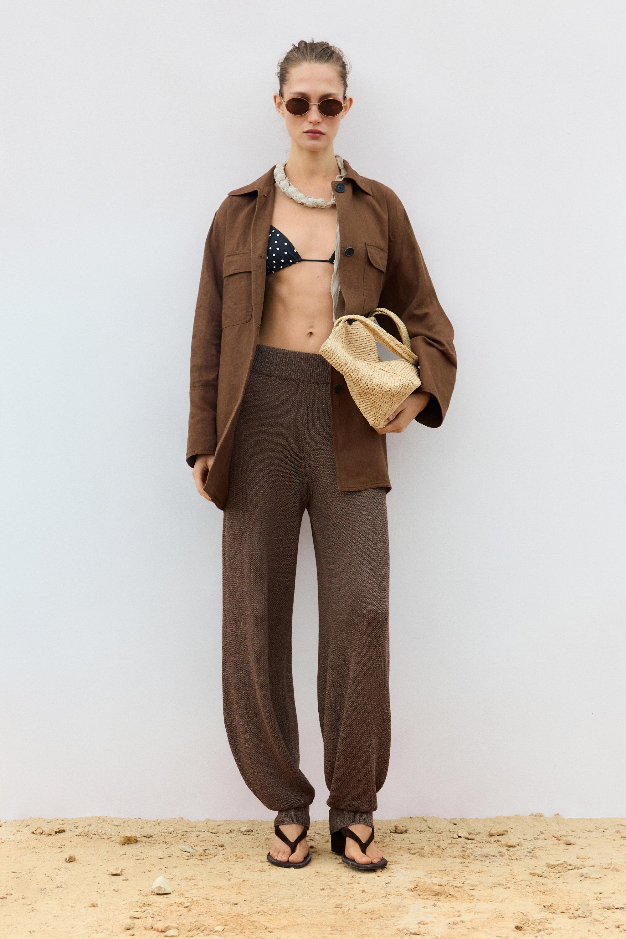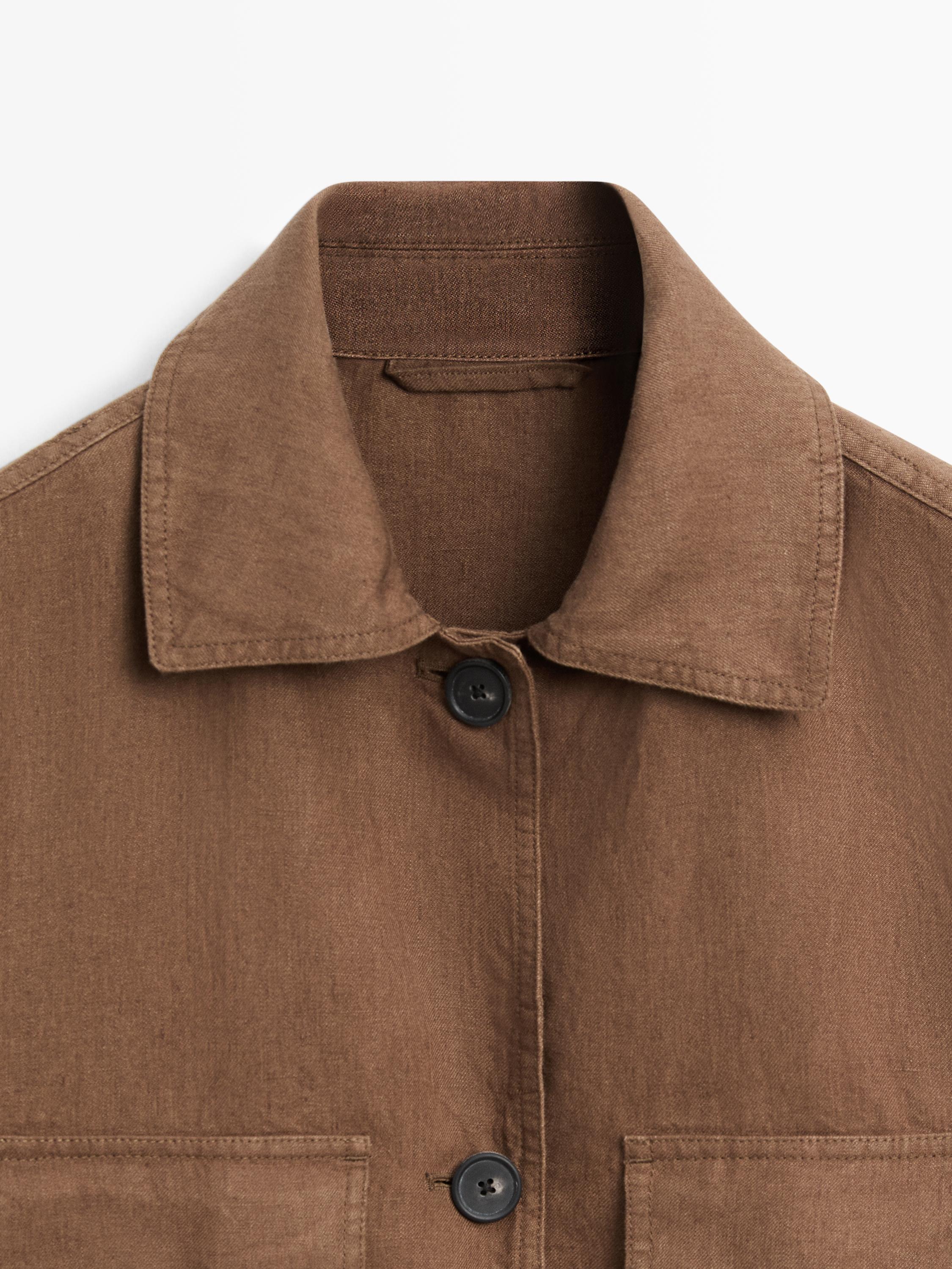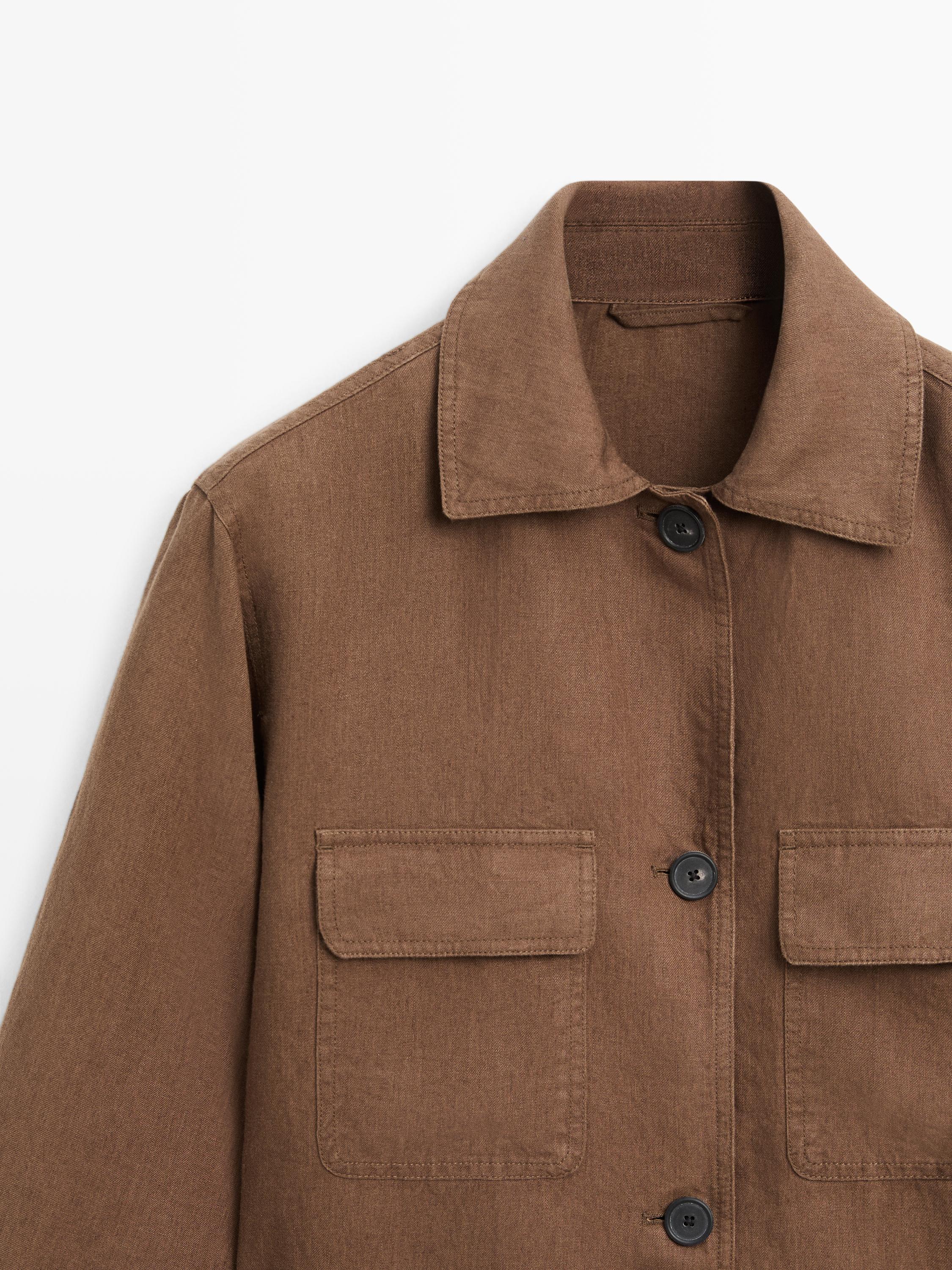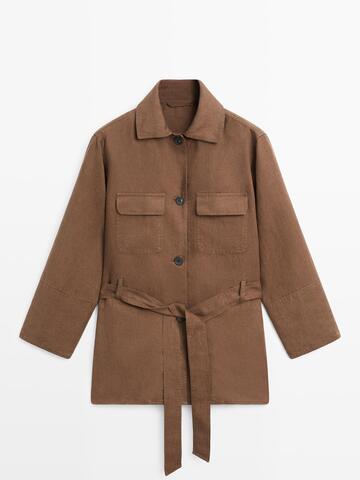 Massimo Dutti Льняной блейзер с карманами и поясом, коричневый