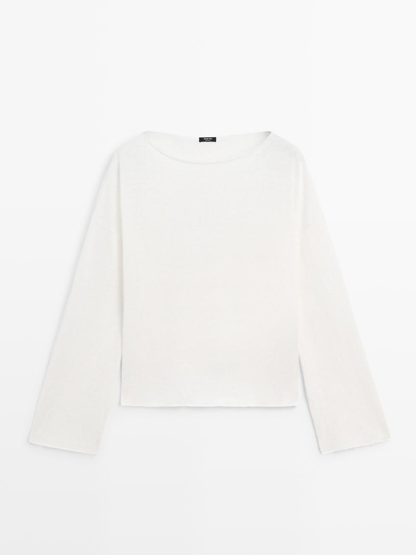Свитер из 100% льна.. Вырез «лодочка». Длинные рукава.