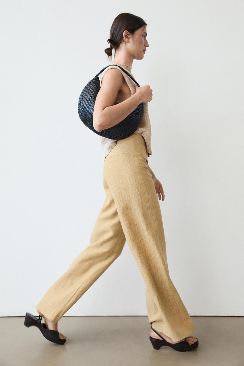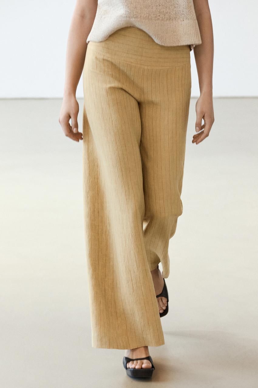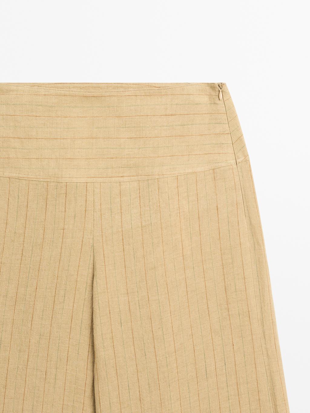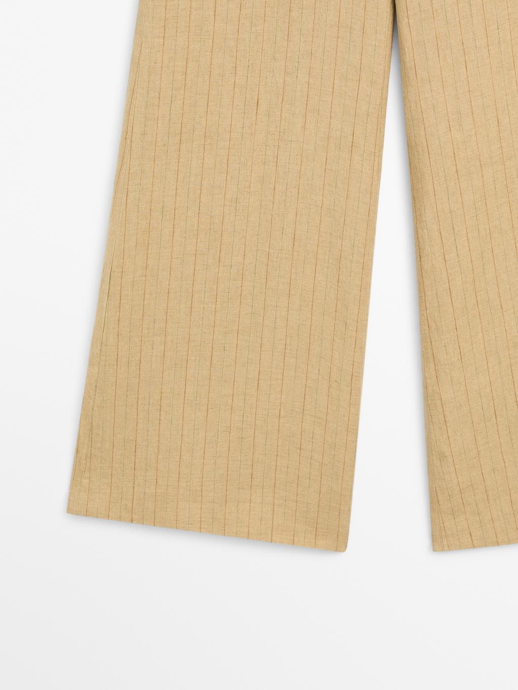 Massimo Dutti Льняные брюки-клеш с полосатым рисунком, песочный
