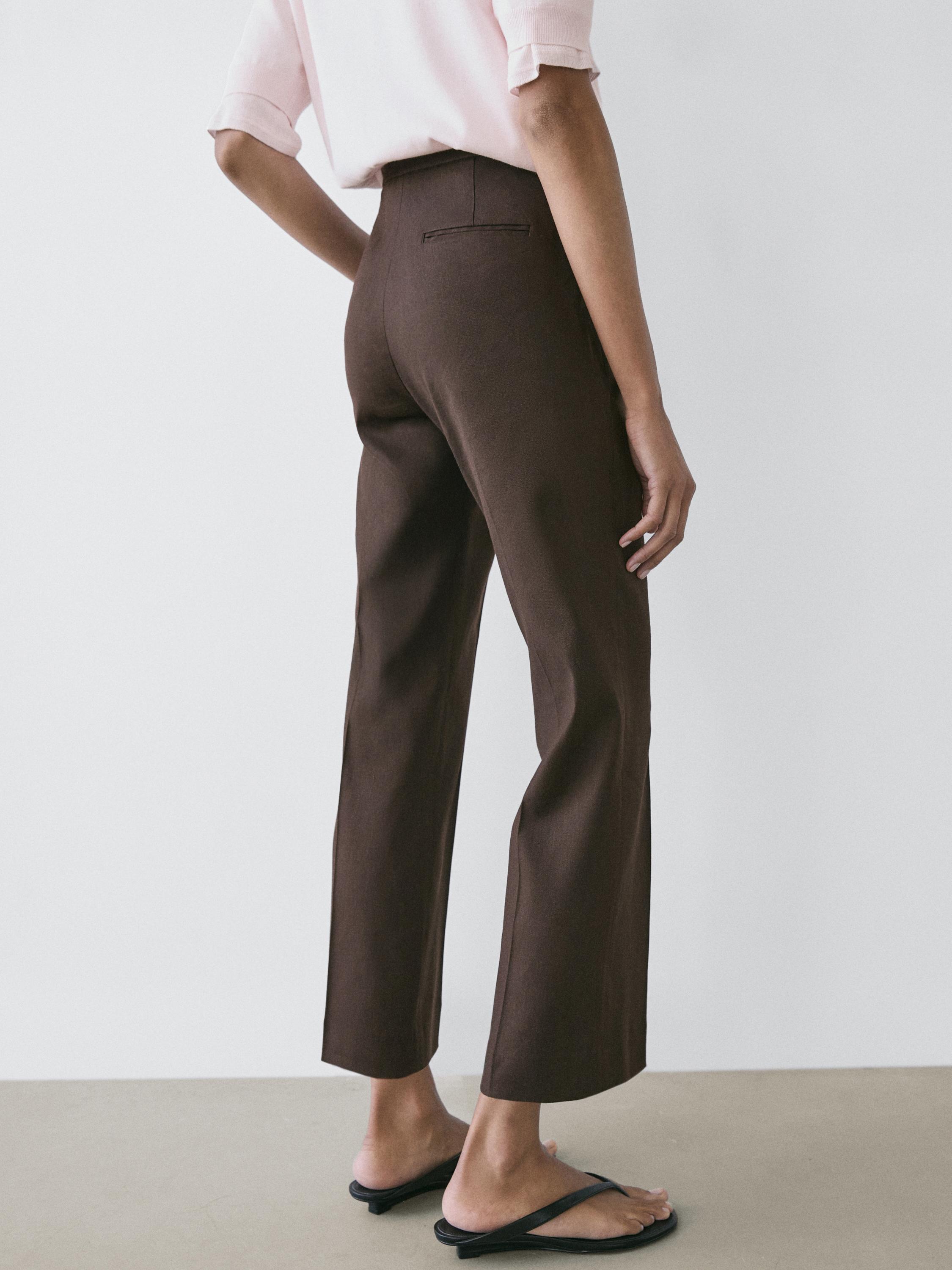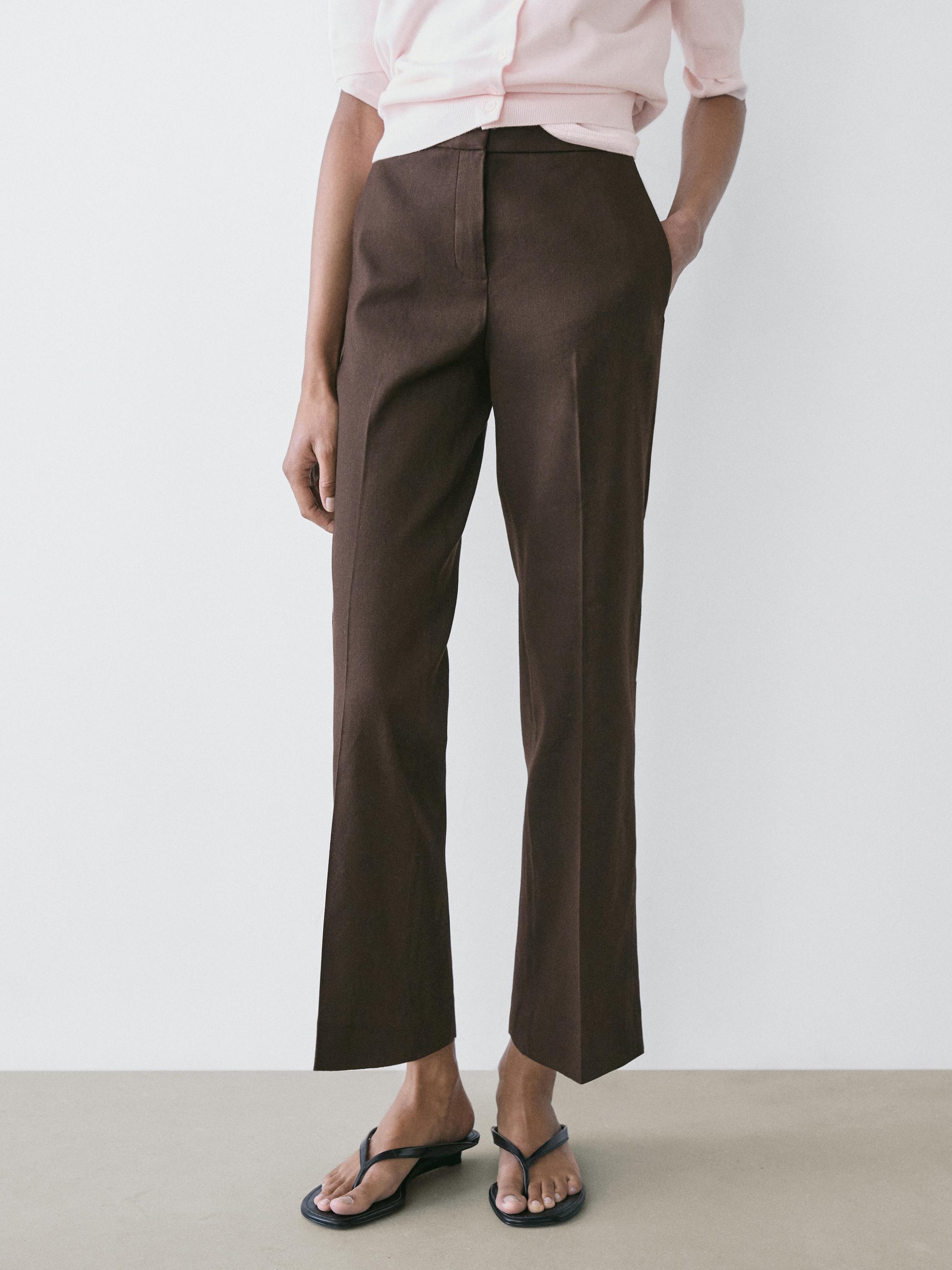 Massimo Dutti Льняные брюки-клеш, шоколадный