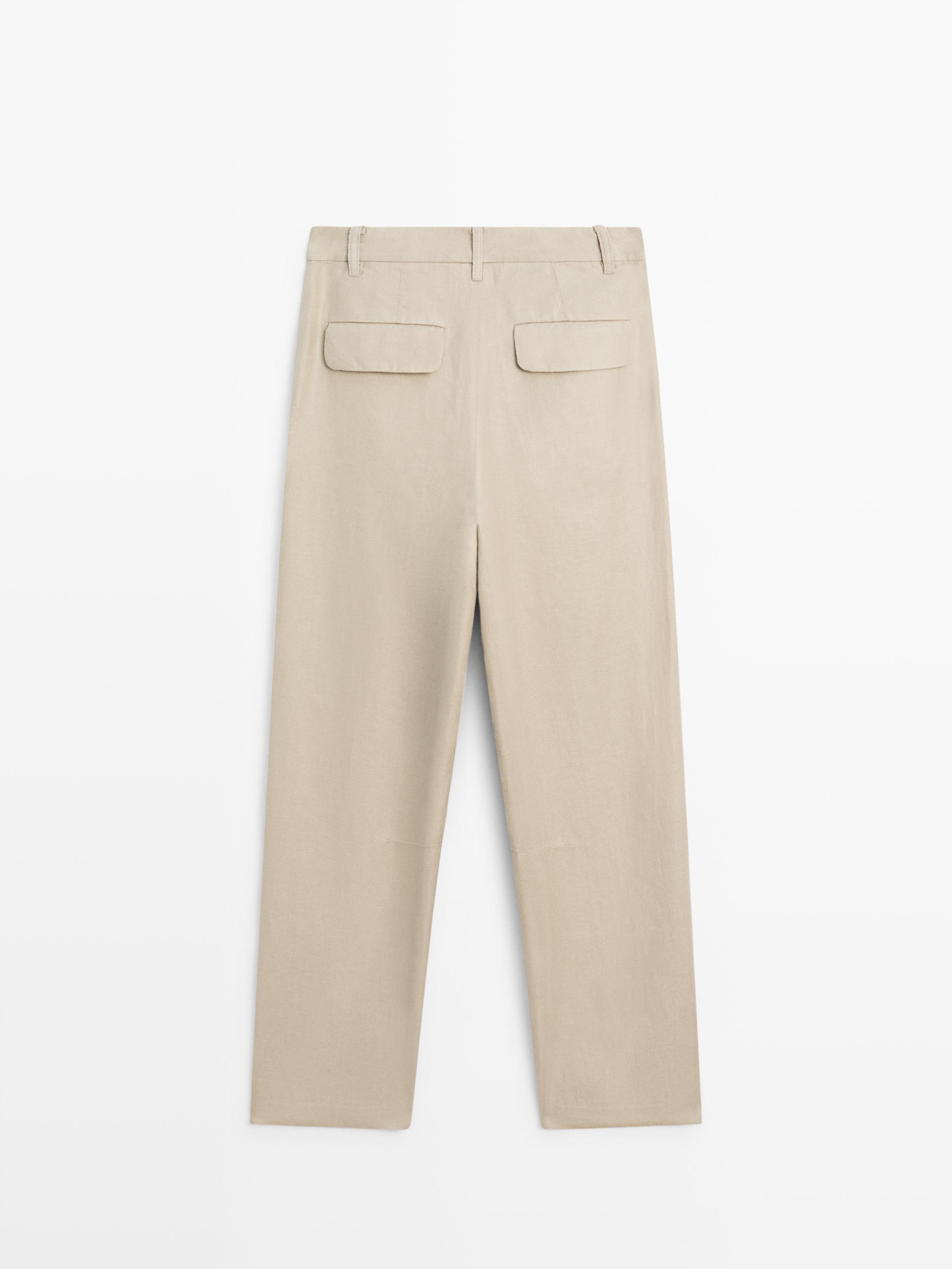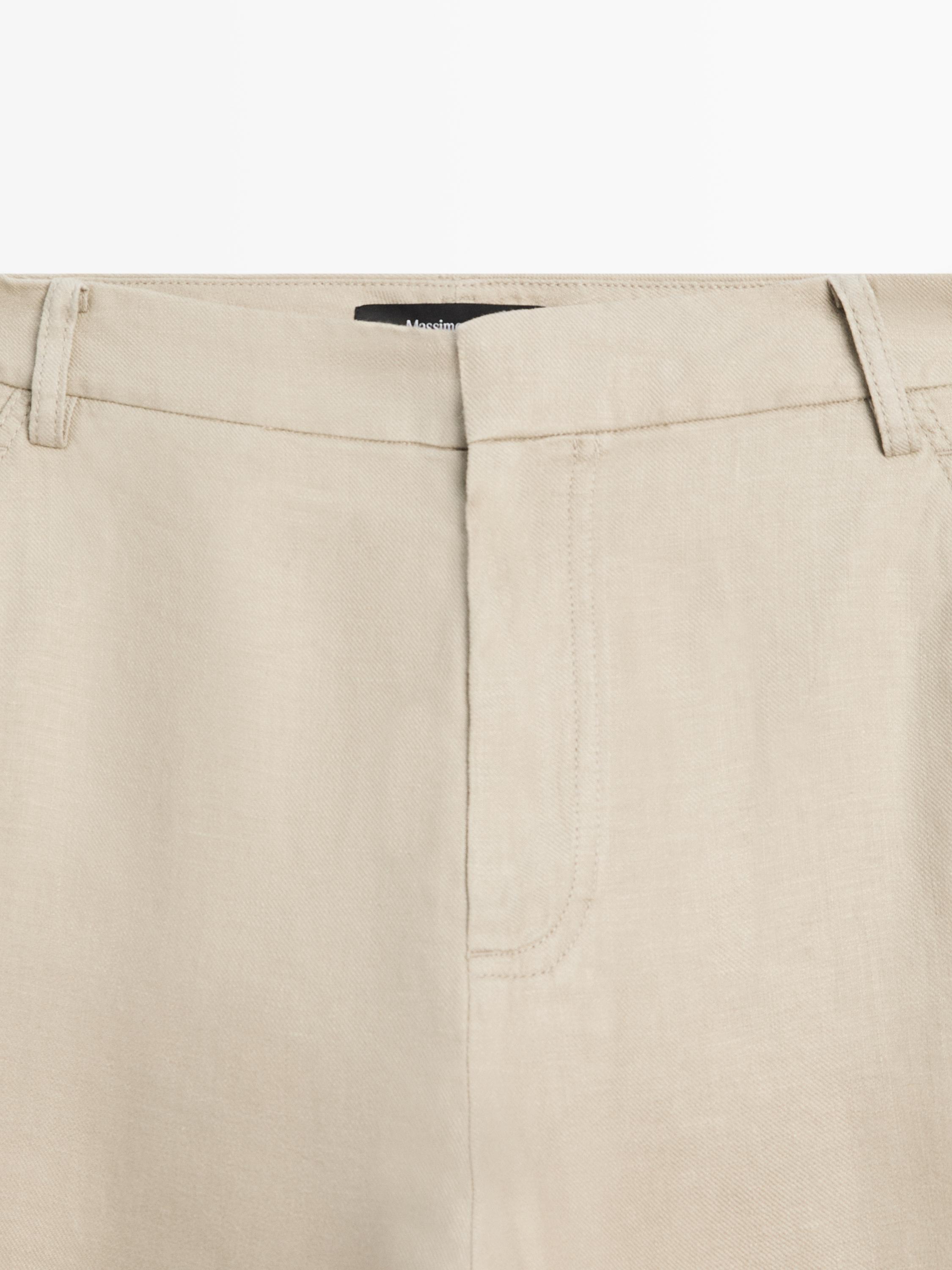 Massimo Dutti Льняные брюки морковного кроя, каменный