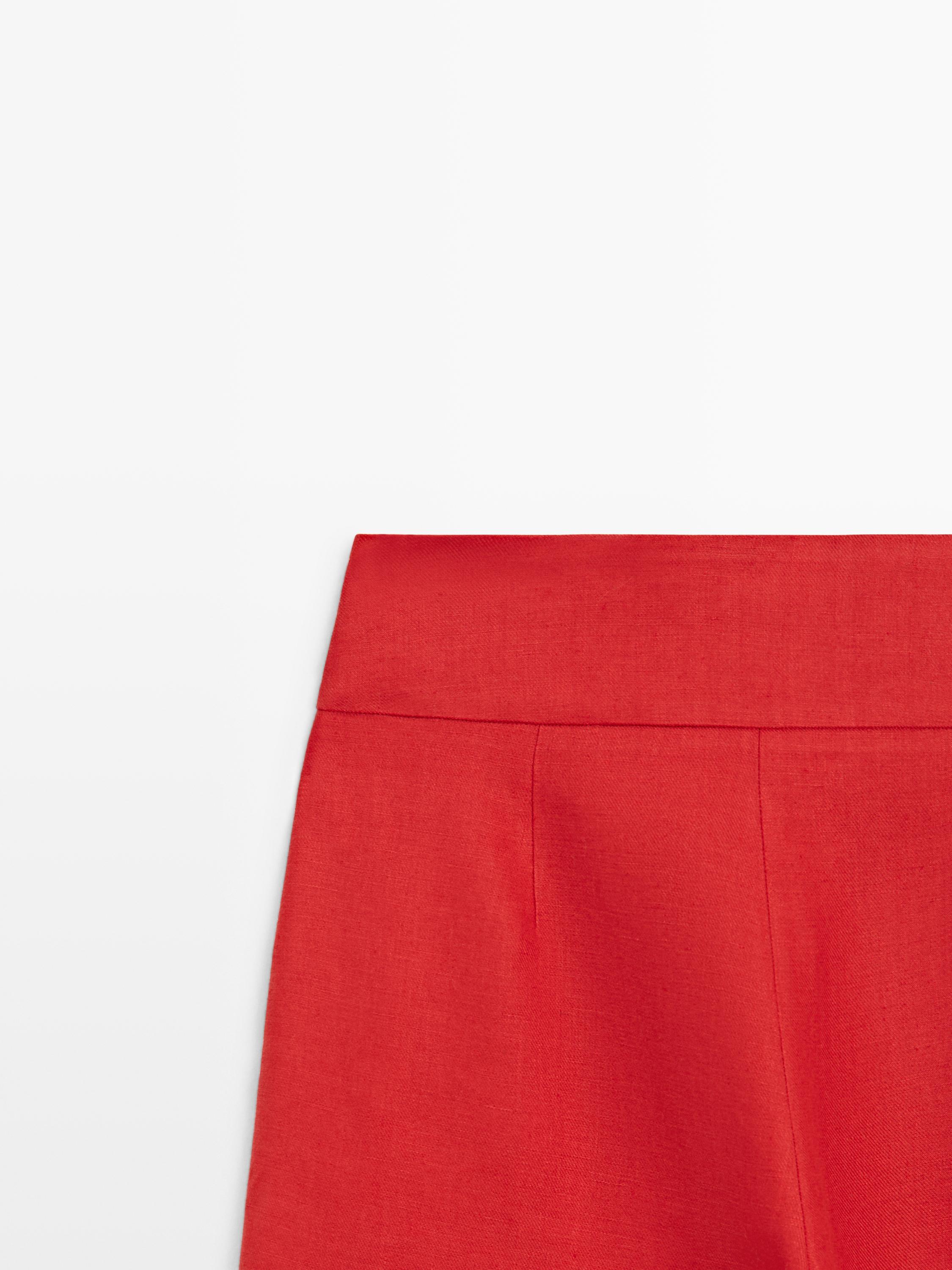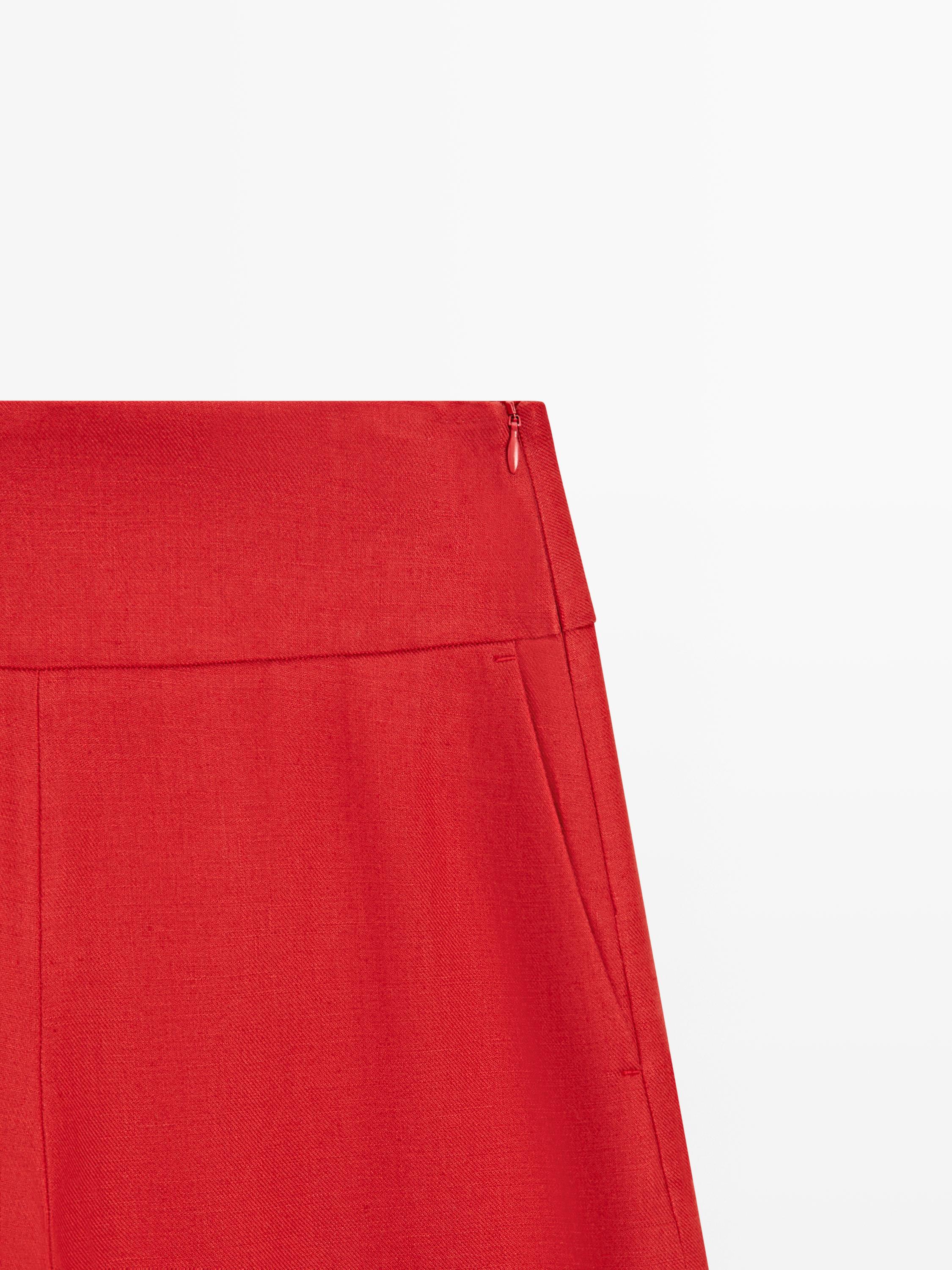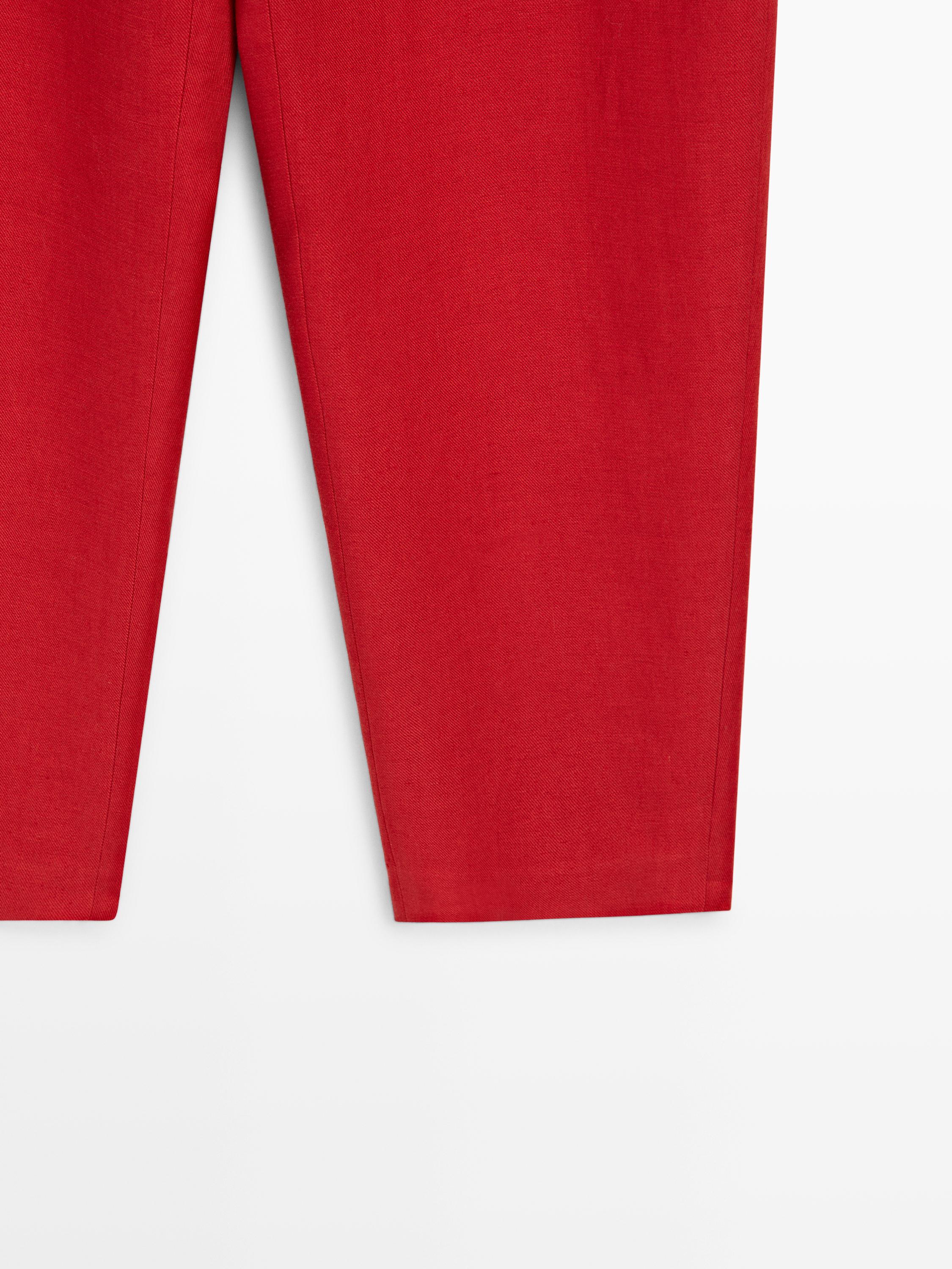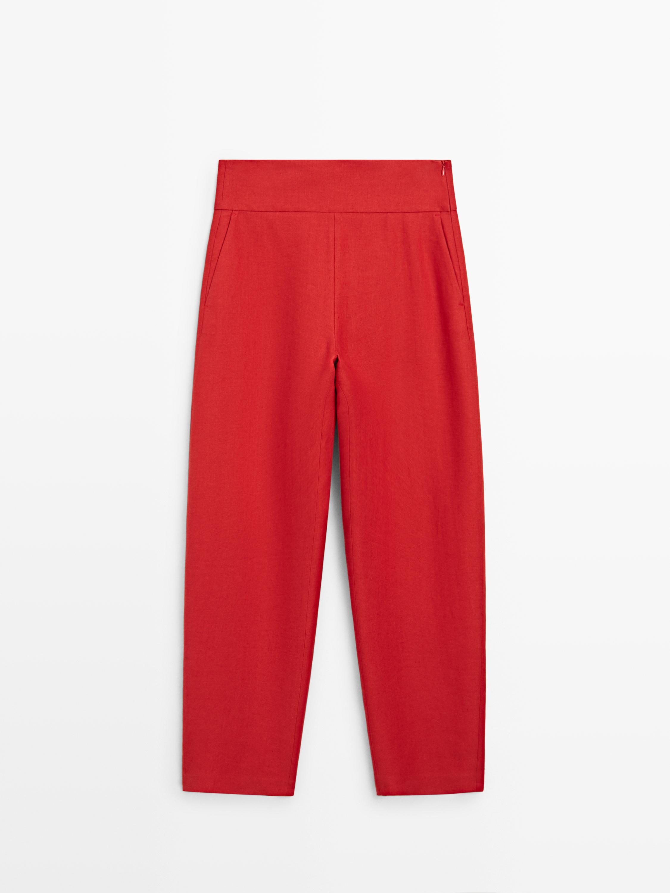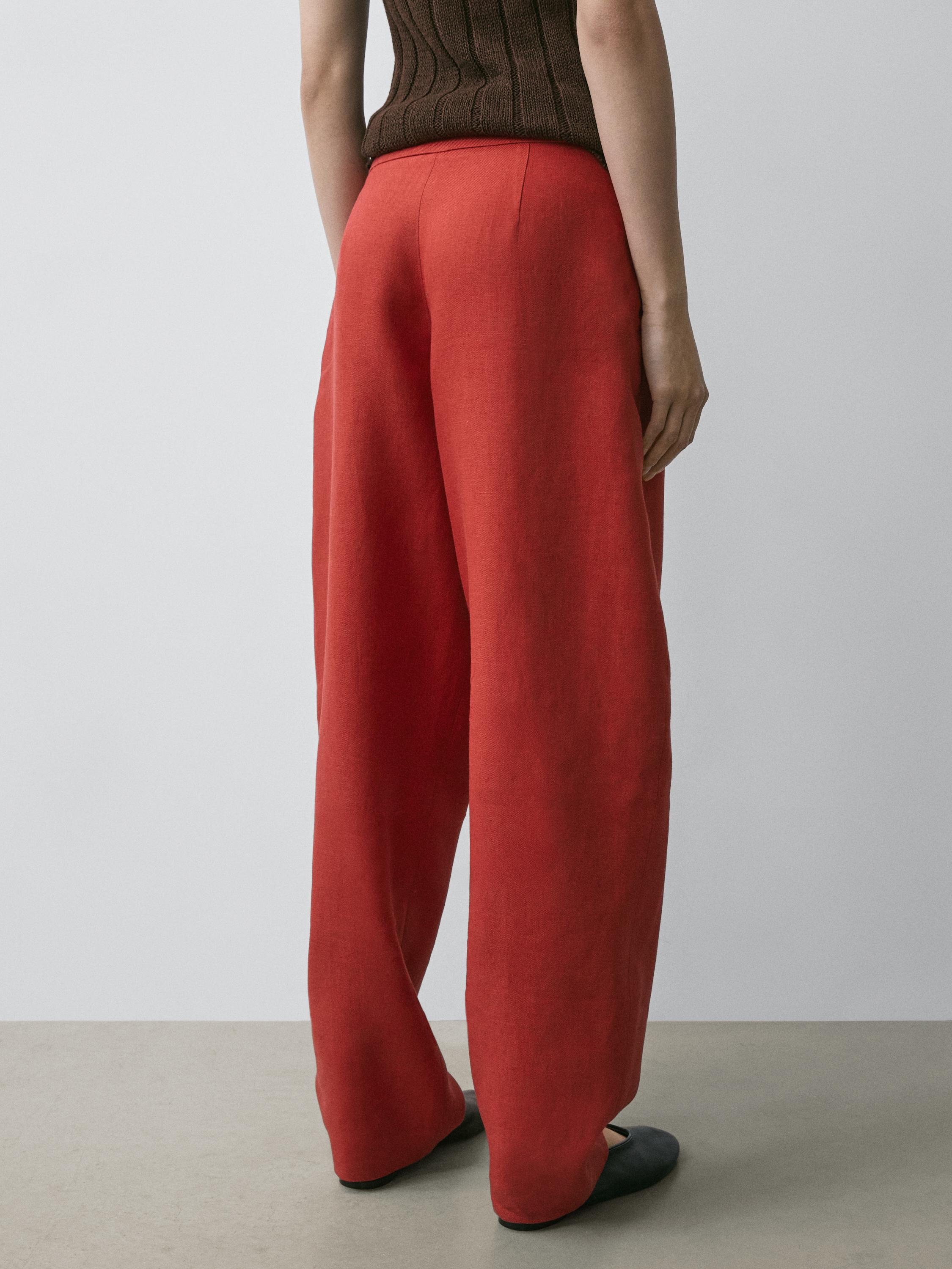 Massimo Dutti Льняные брюки объемного кроя, крсаный
