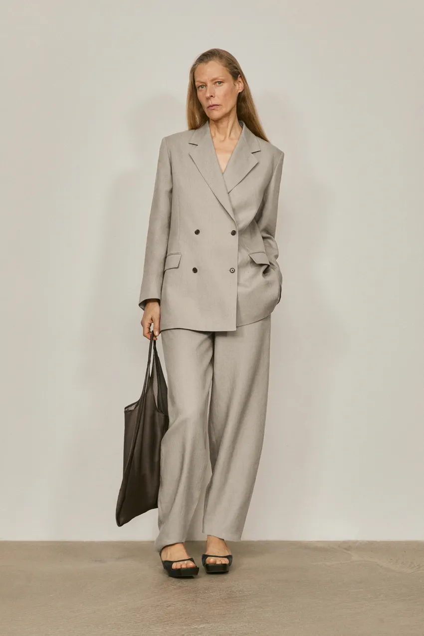 Massimo Dutti Льняные брюки от костюма с декоративной отделкой на талии - Limited Edition, серый