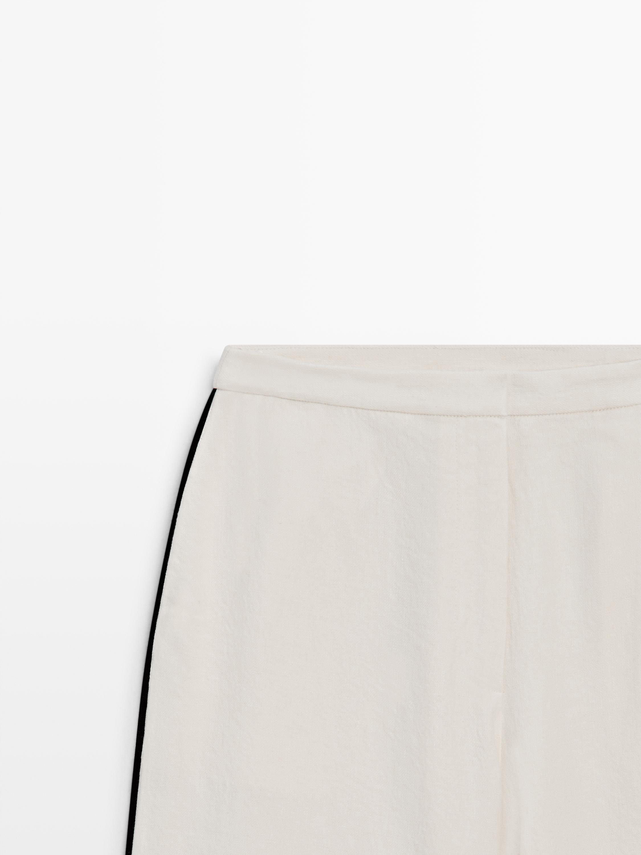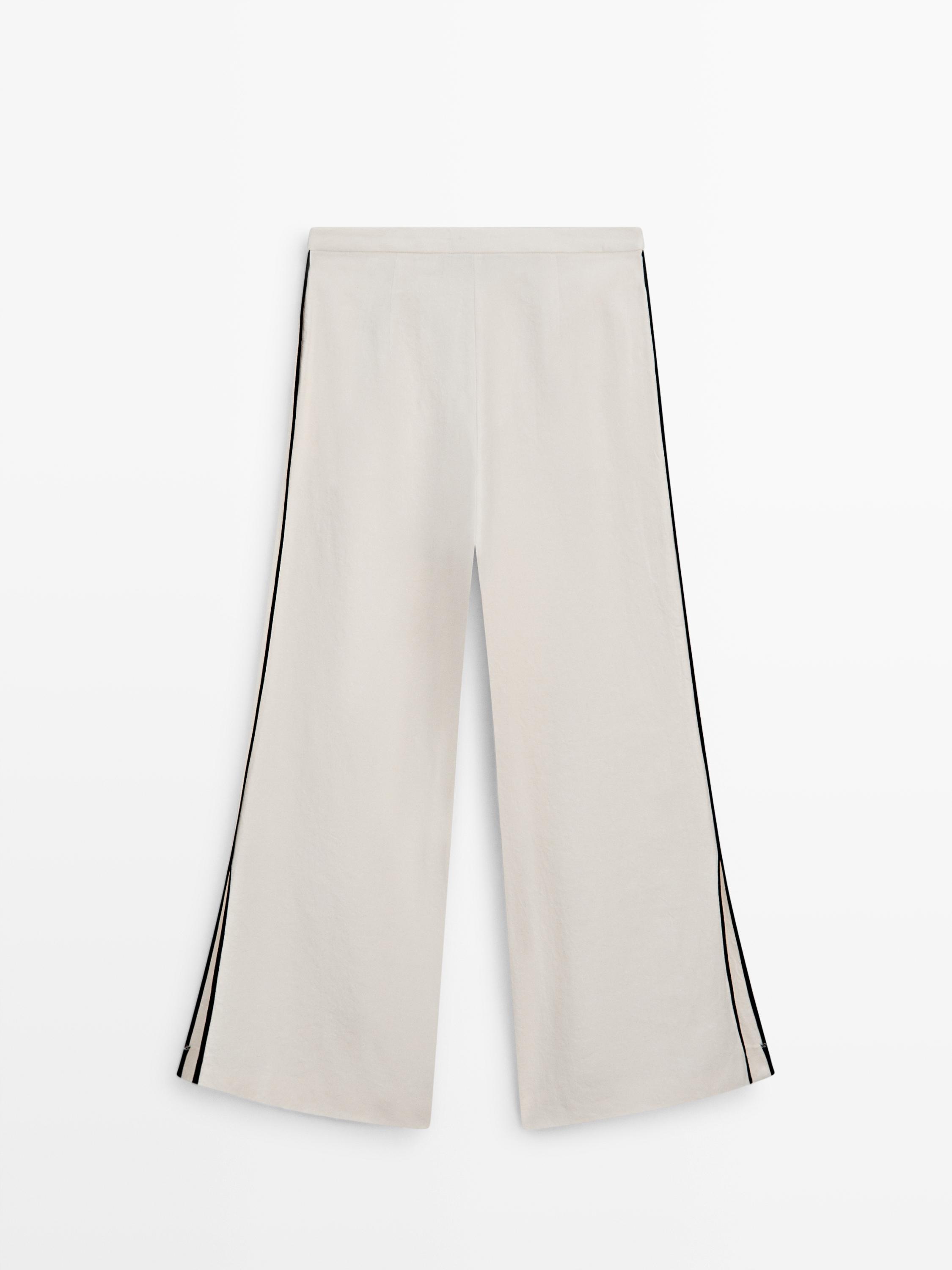 Massimo Dutti Льняные брюки с контрастной окантовкой, кремовый