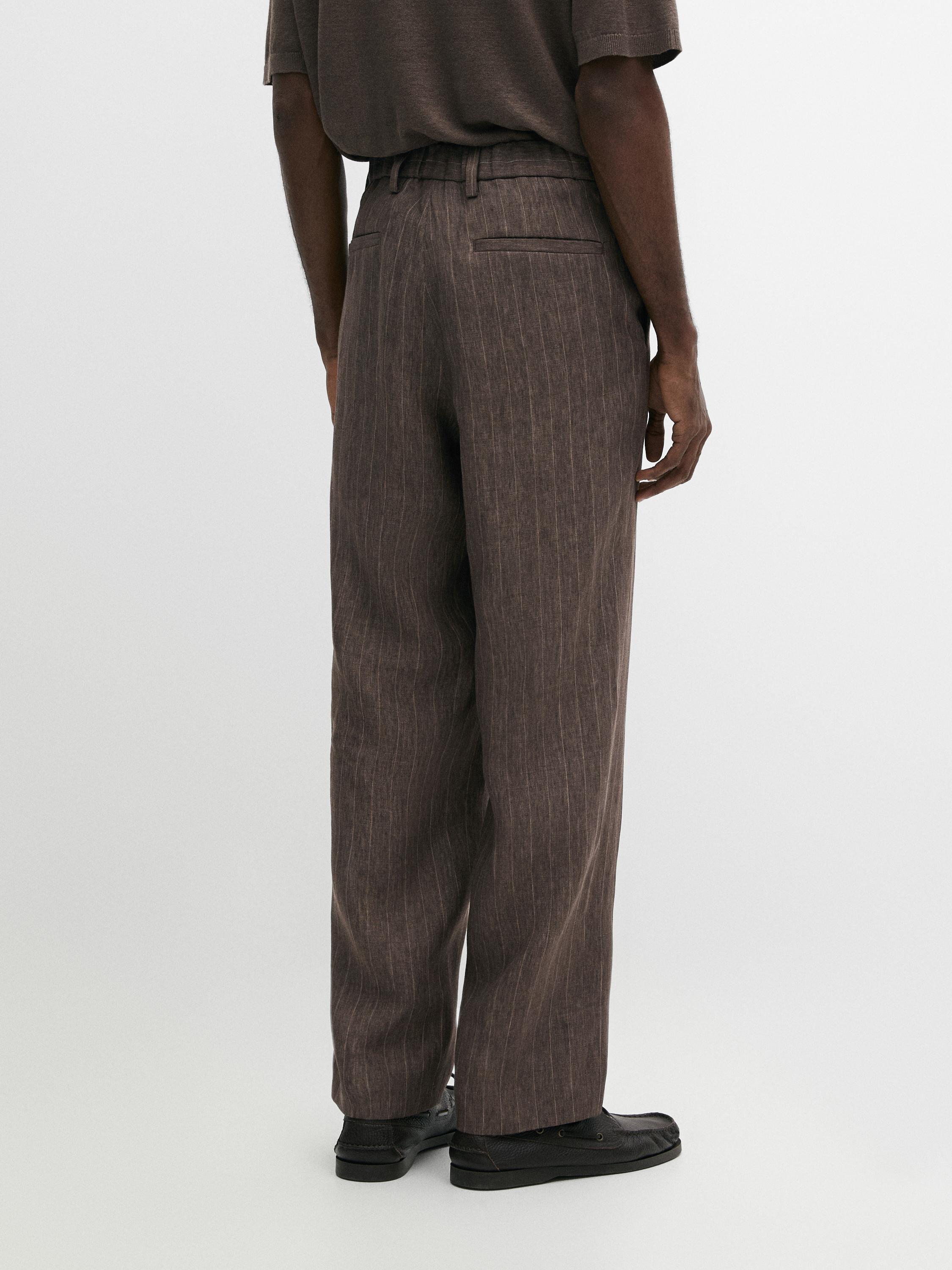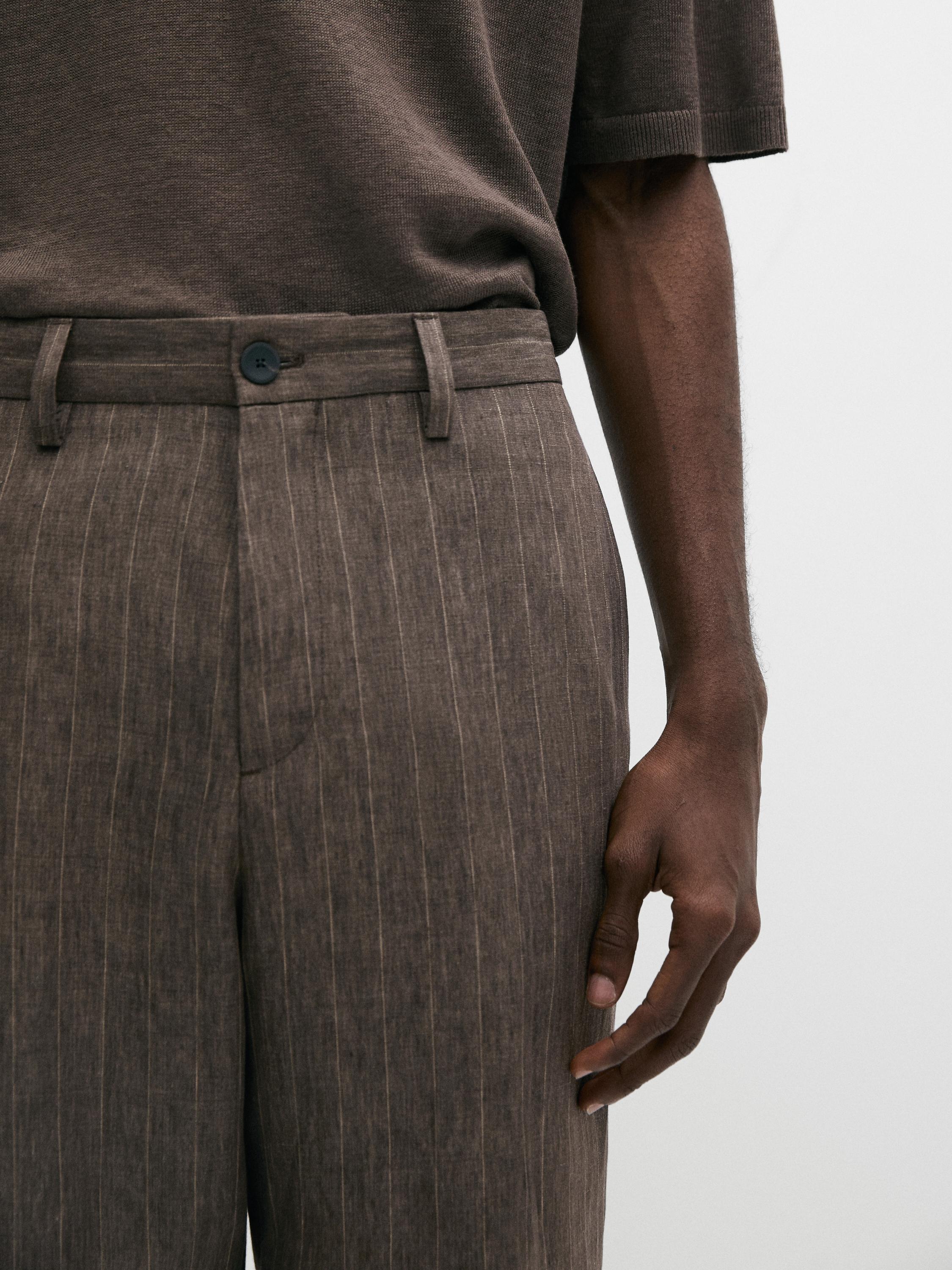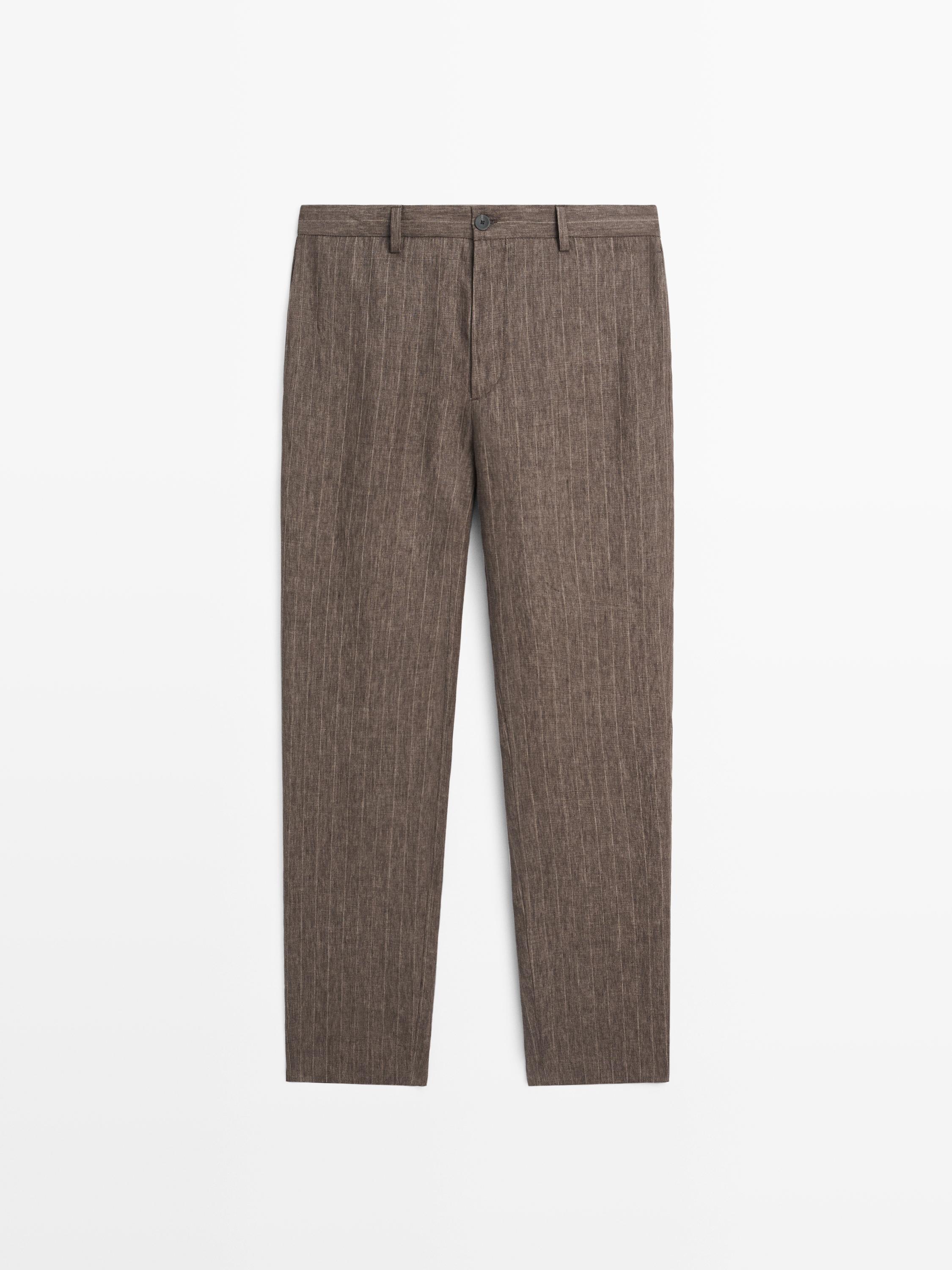 Massimo Dutti Льняные брюки в полоску, коричневый