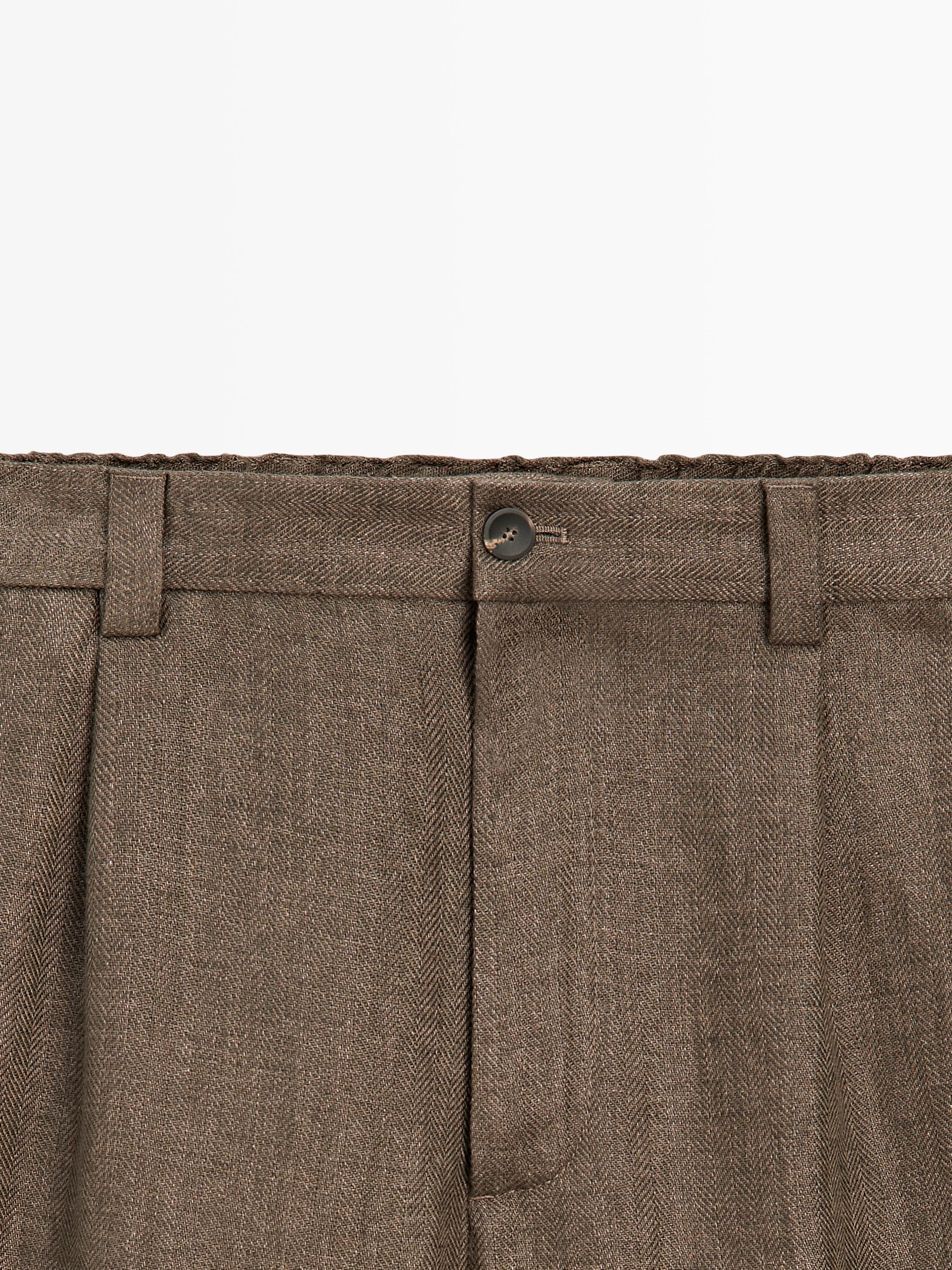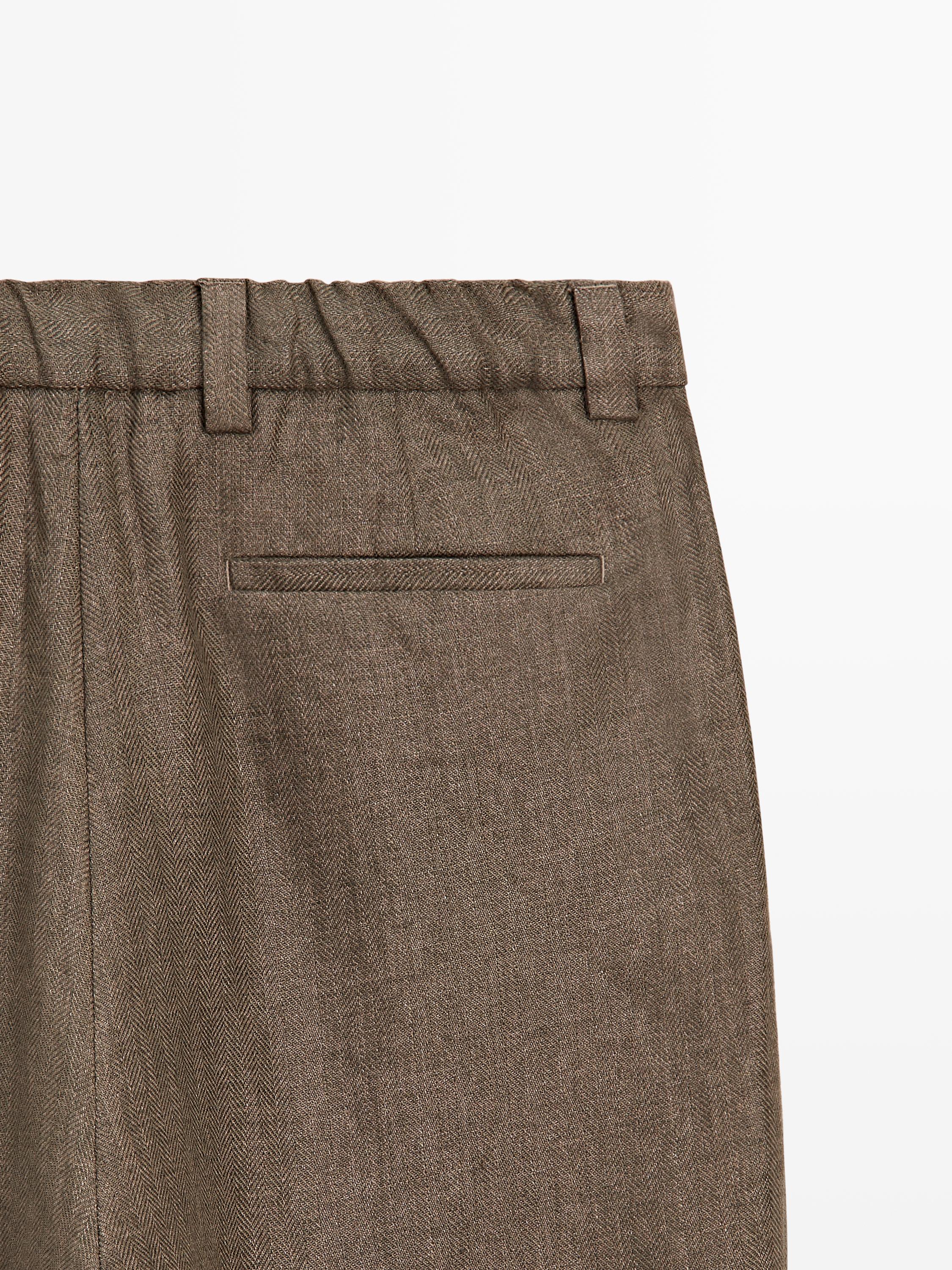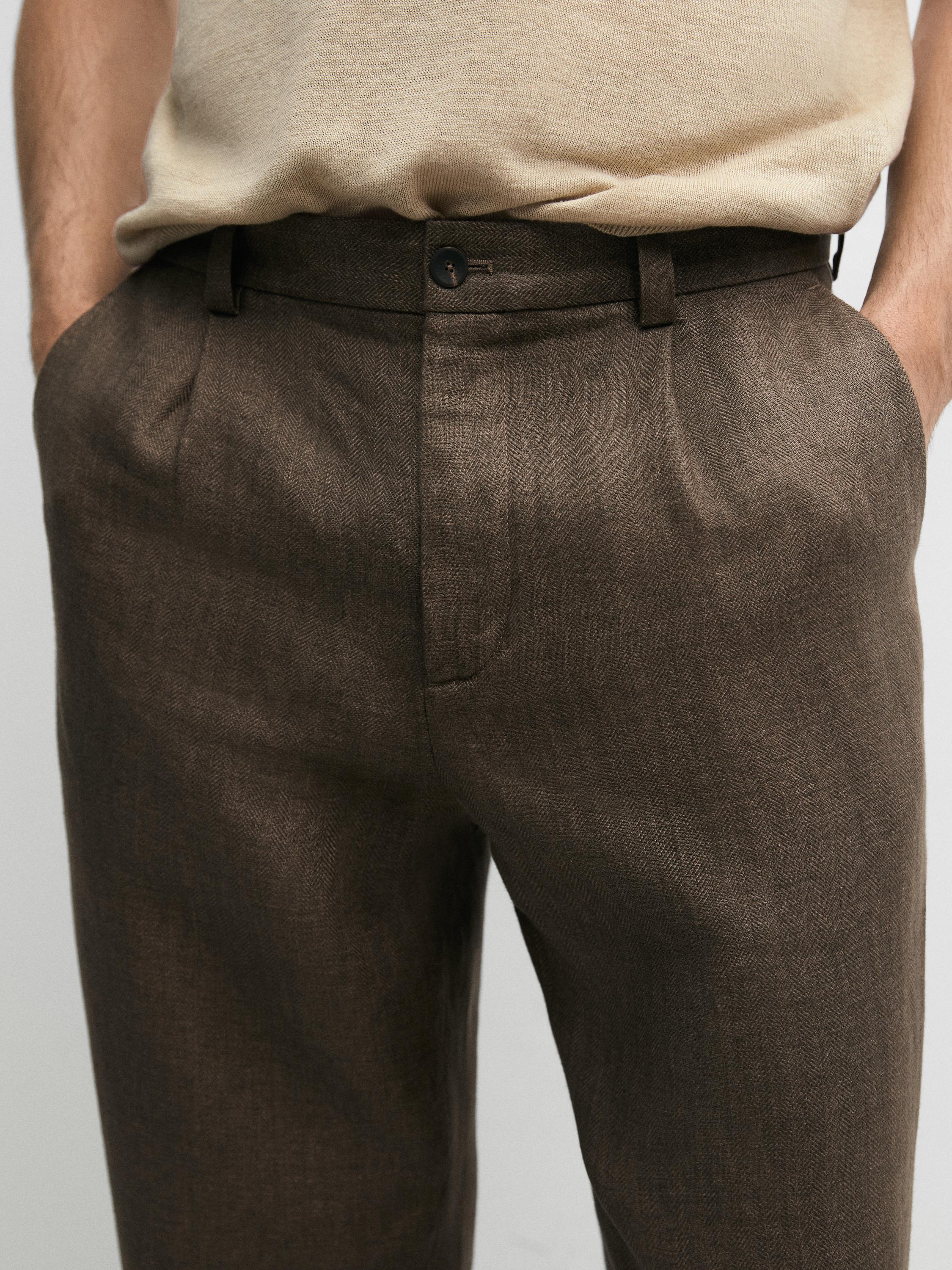 Massimo Dutti Льняные брюки в стиле "Touth Look" с отделкой в елочку, охра