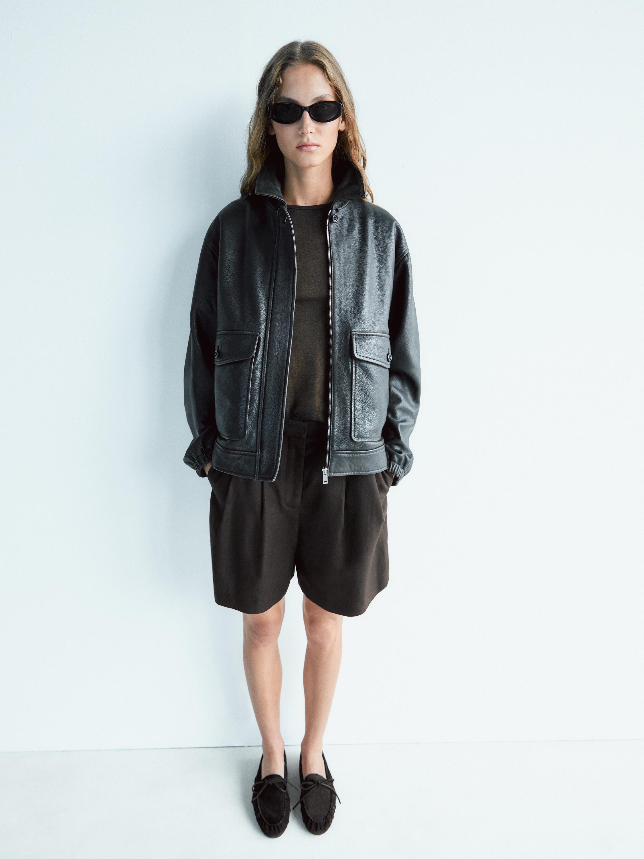 Massimo Dutti Лоферы из натуральной кожи с бантом на воротнике, коричневый