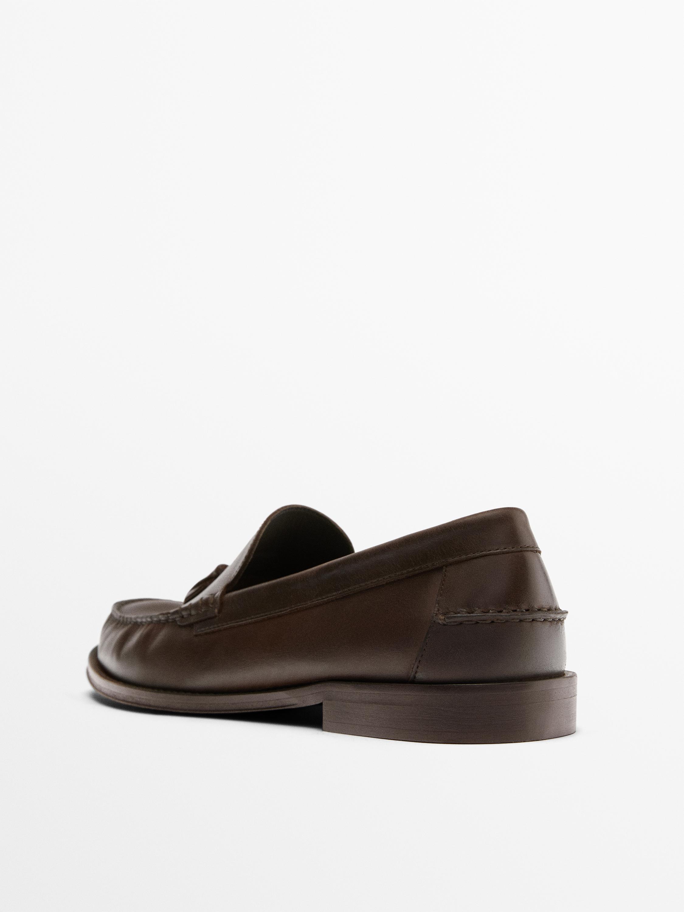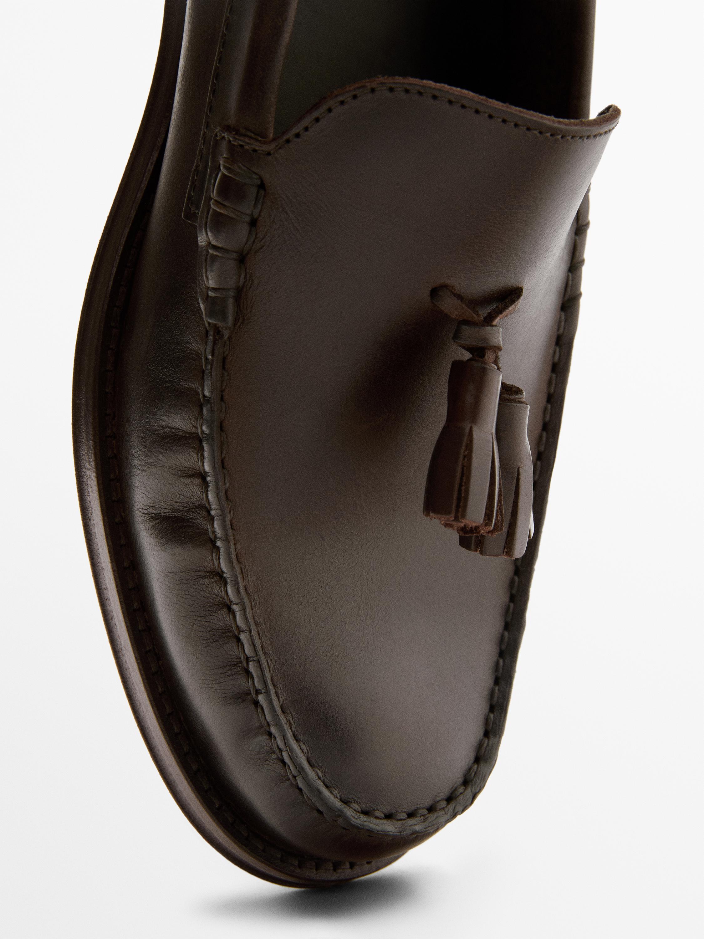 Massimo Dutti Лоферы из промасленной кожи с кисточками, желто-коричневый