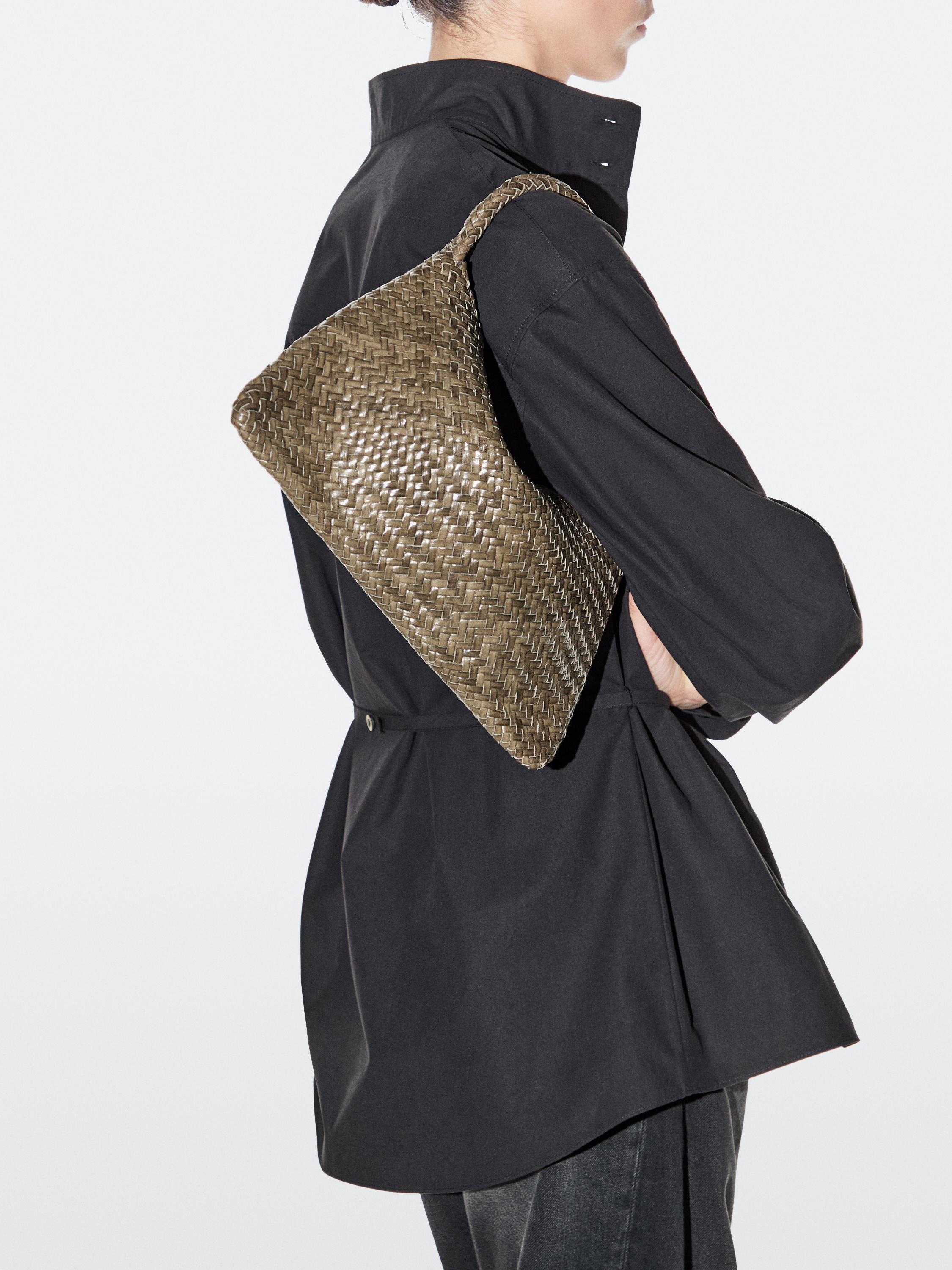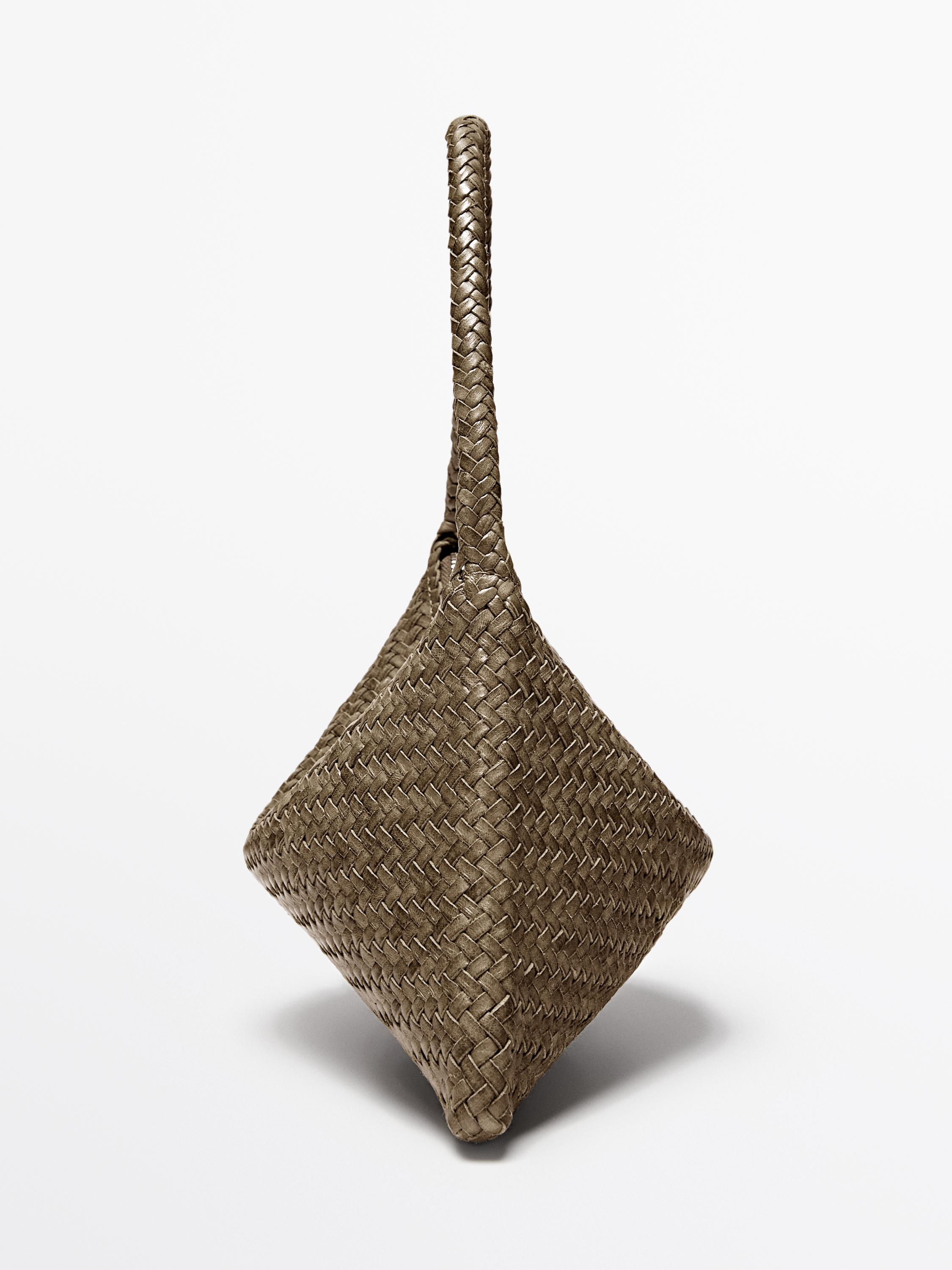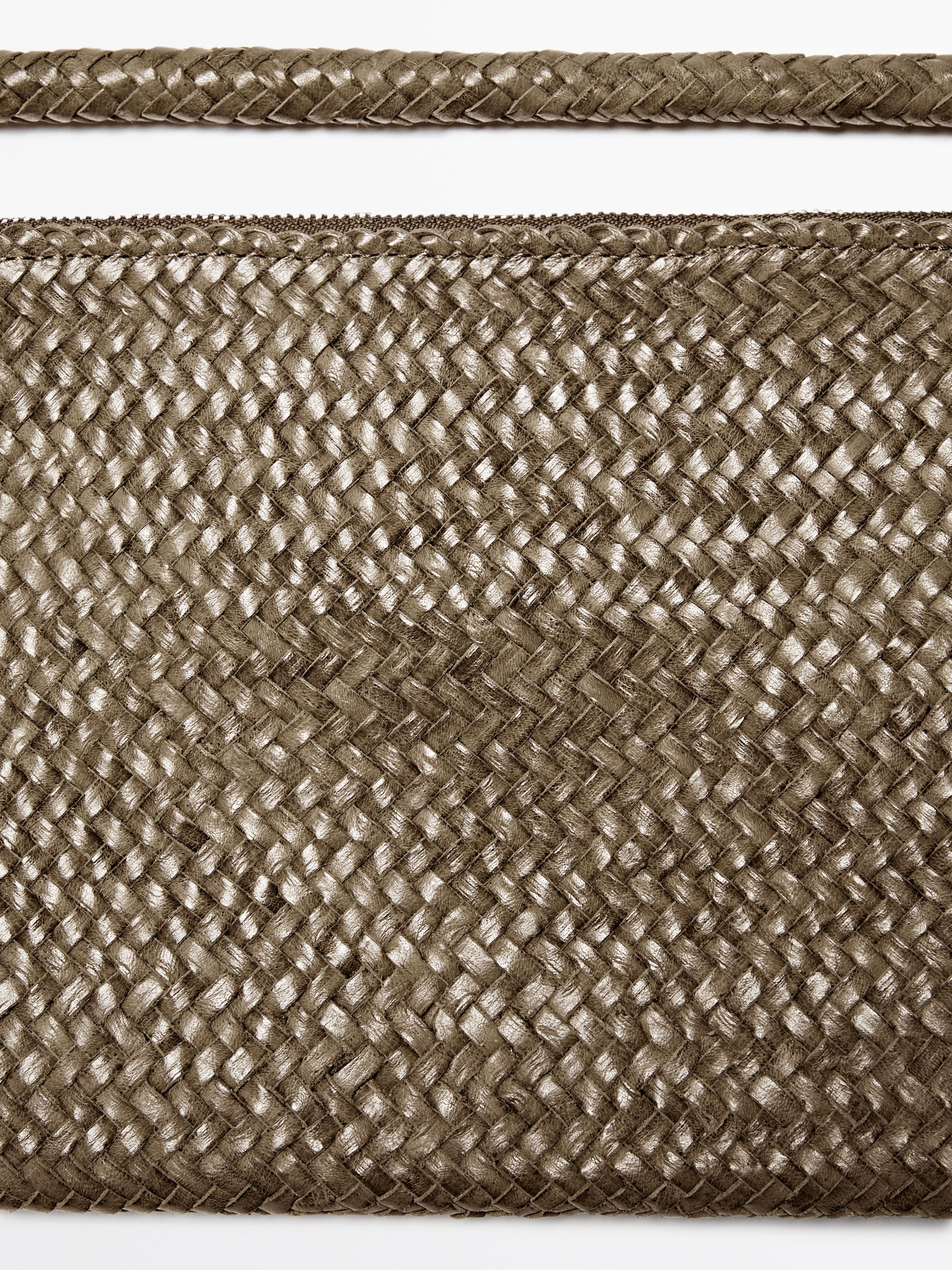 Massimo Dutti Маленькая плетеная кожаная сумка через плечо, хаки
