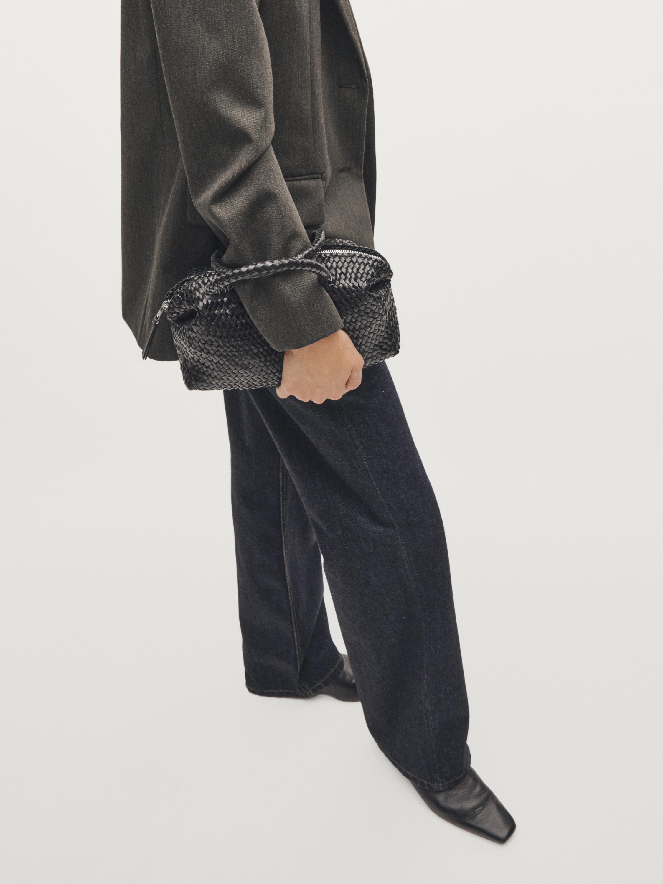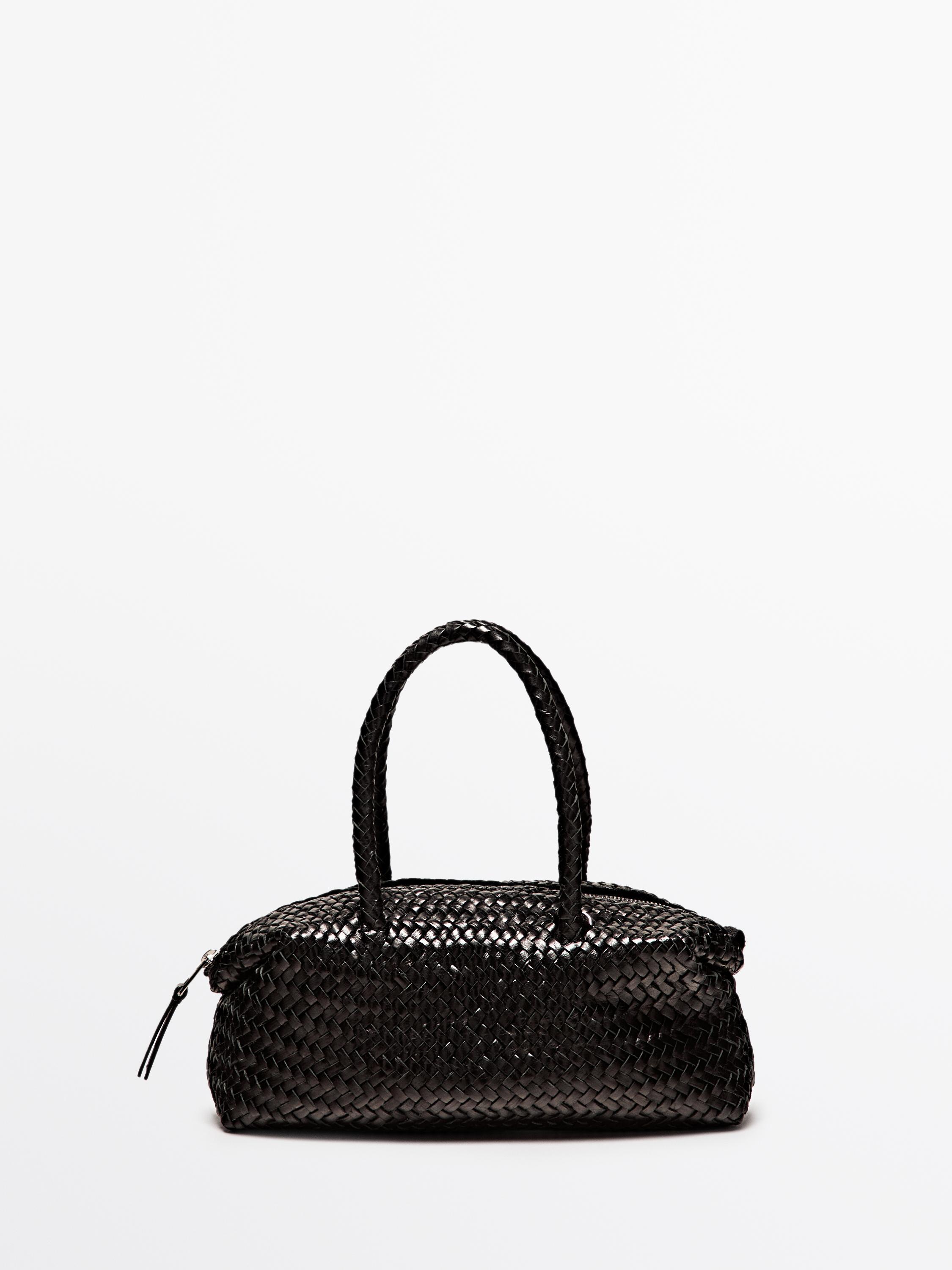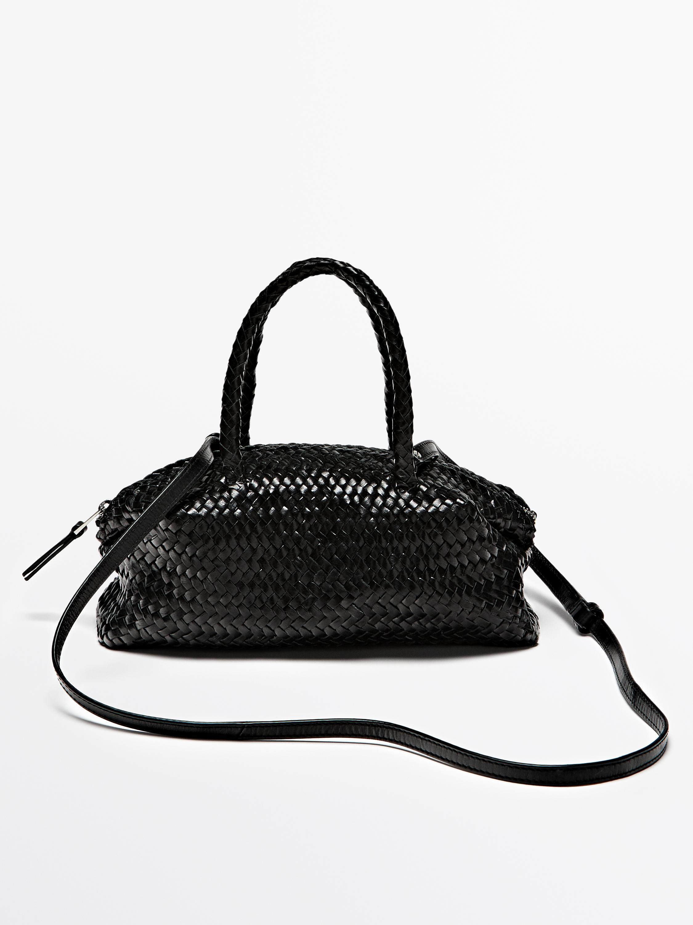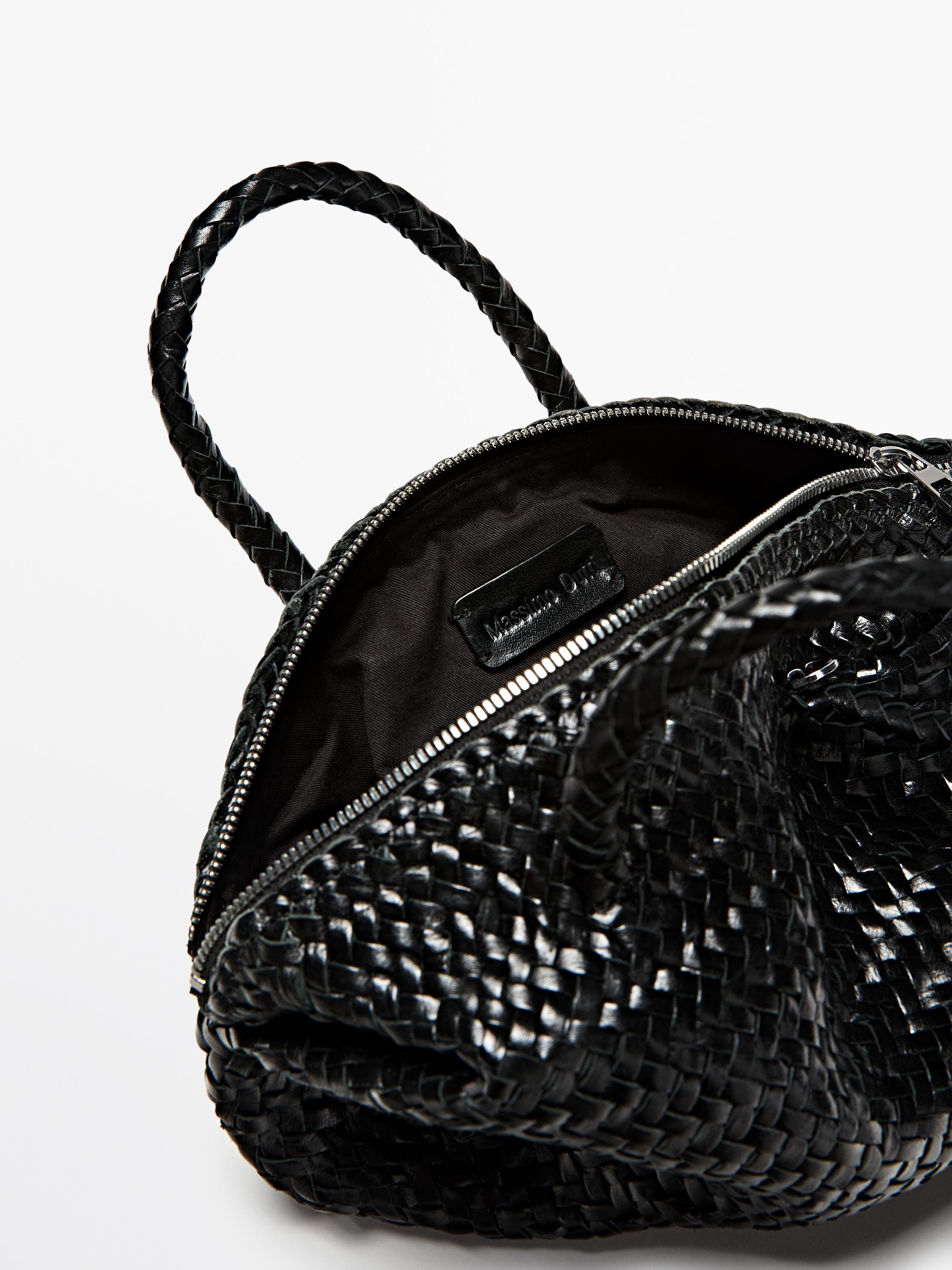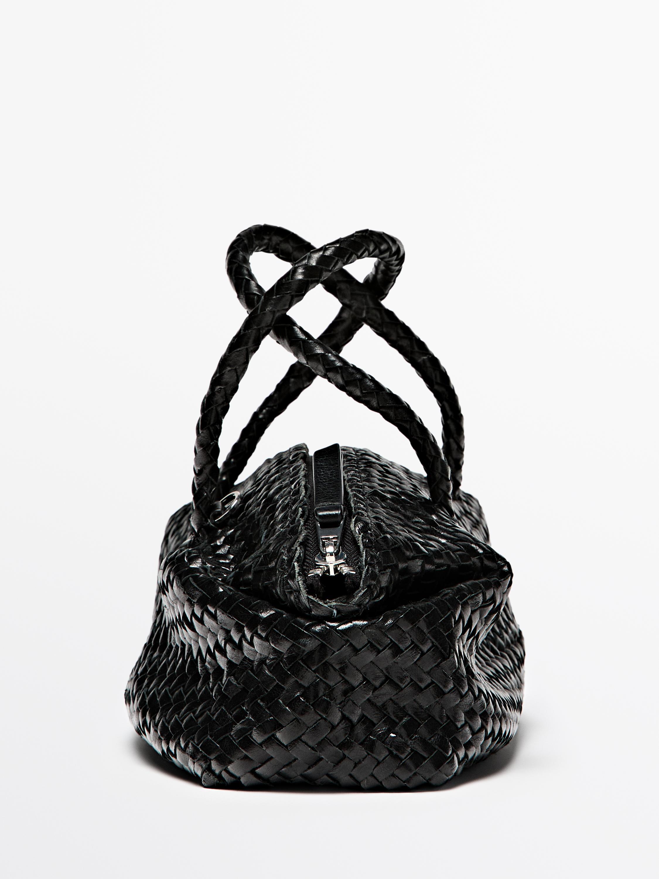 Massimo Dutti Маленькая плетеная сумка из кожи наппа, черный