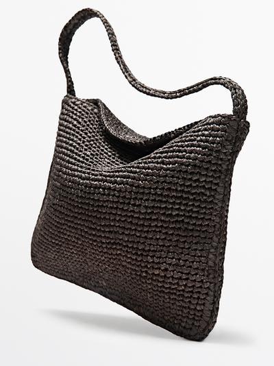 Massimo Dutti Маленькая сумка через плечо из рафии, коричневый
