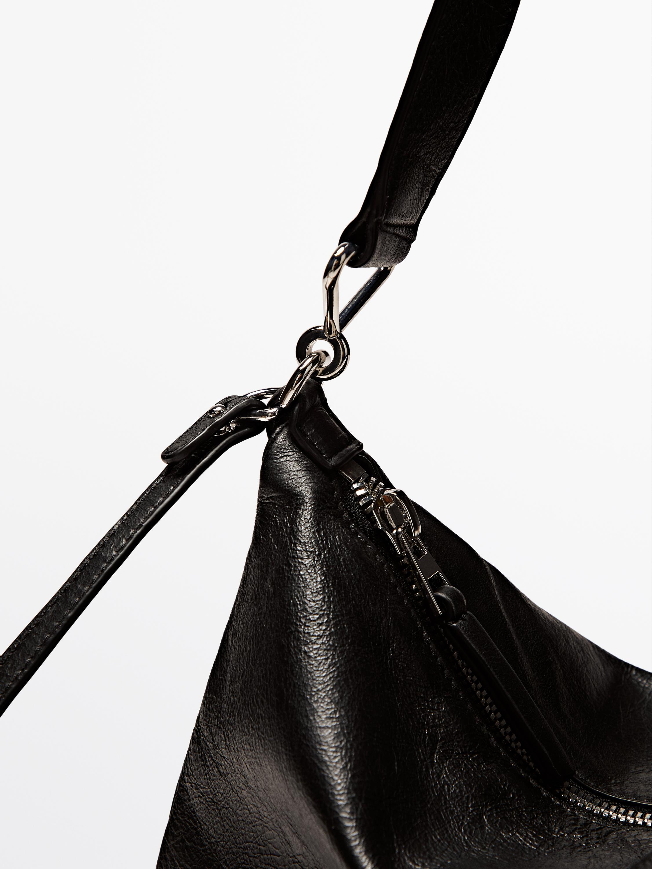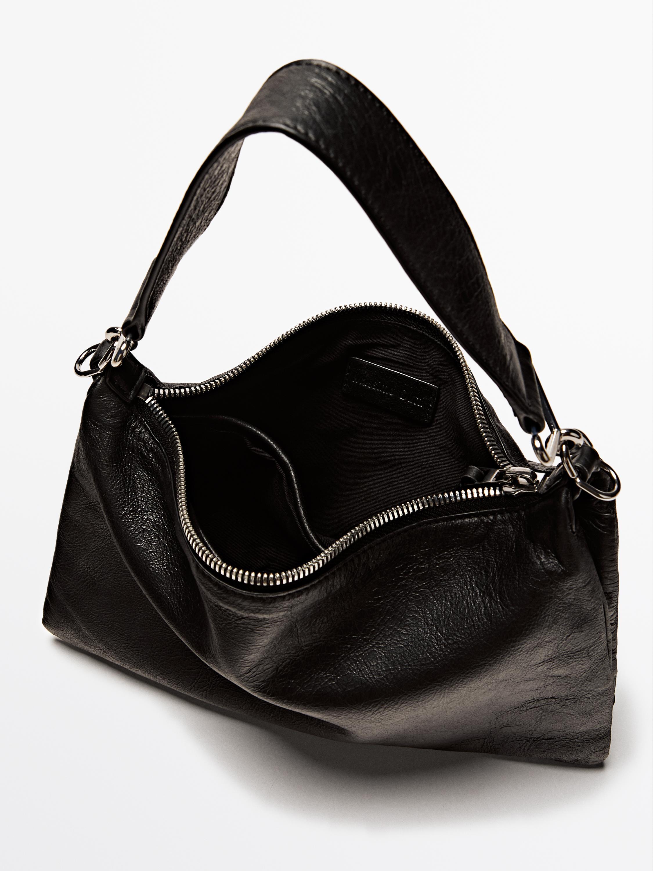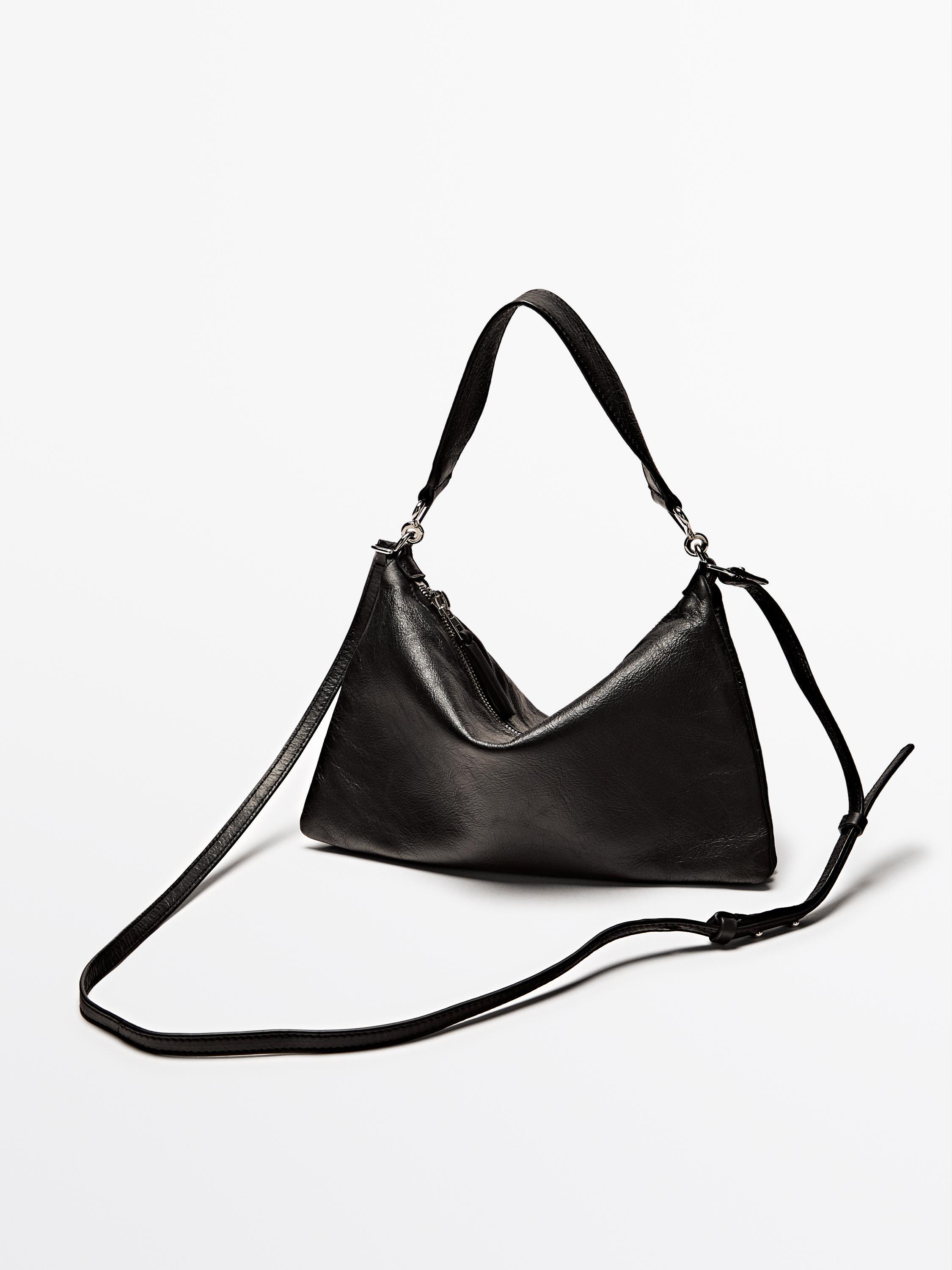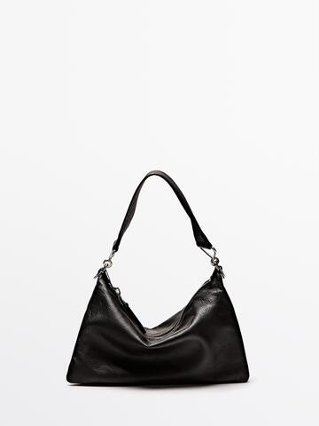 Massimo Dutti Маленькая сумка из кожи наппа с отделениями, черный