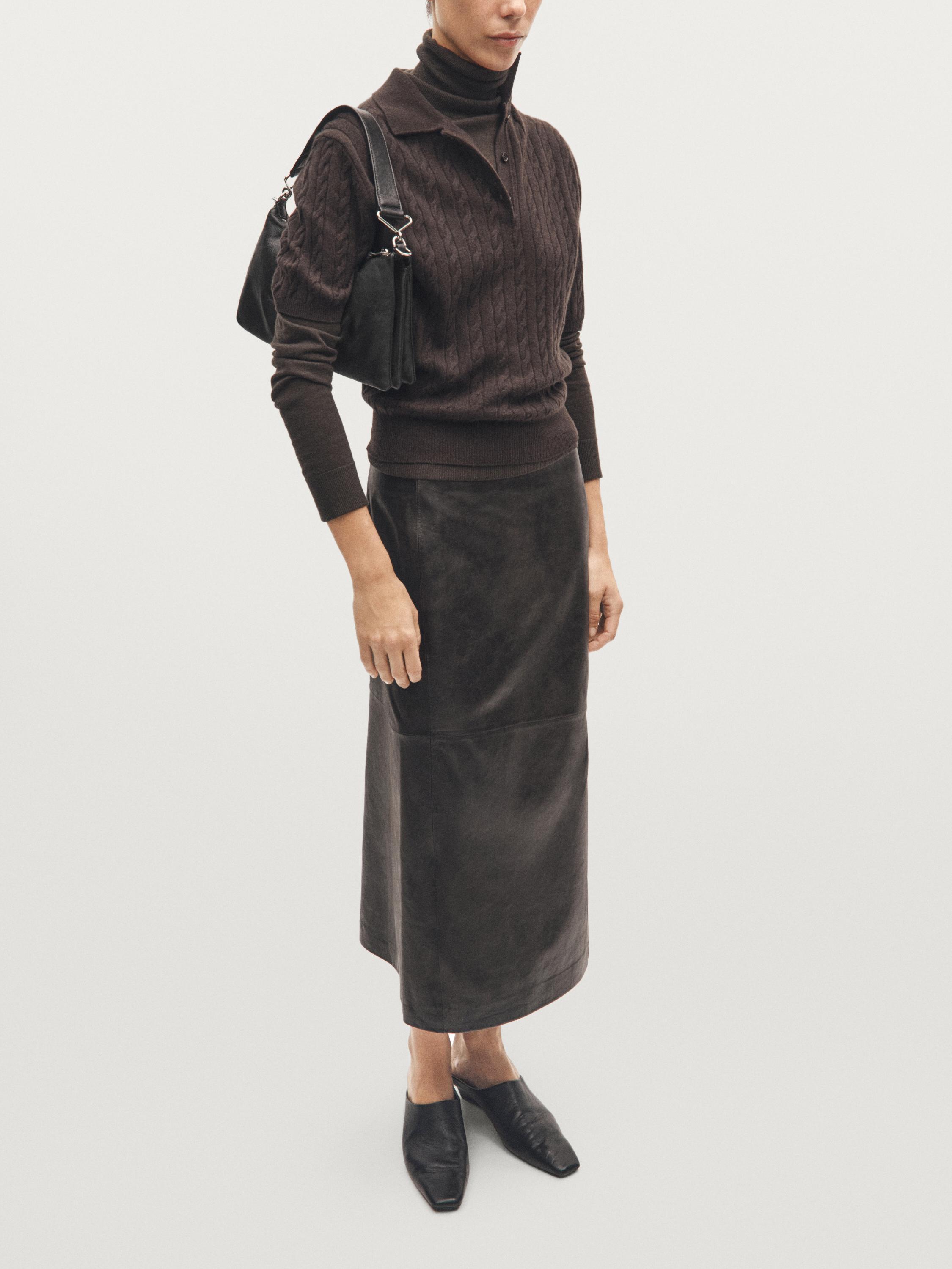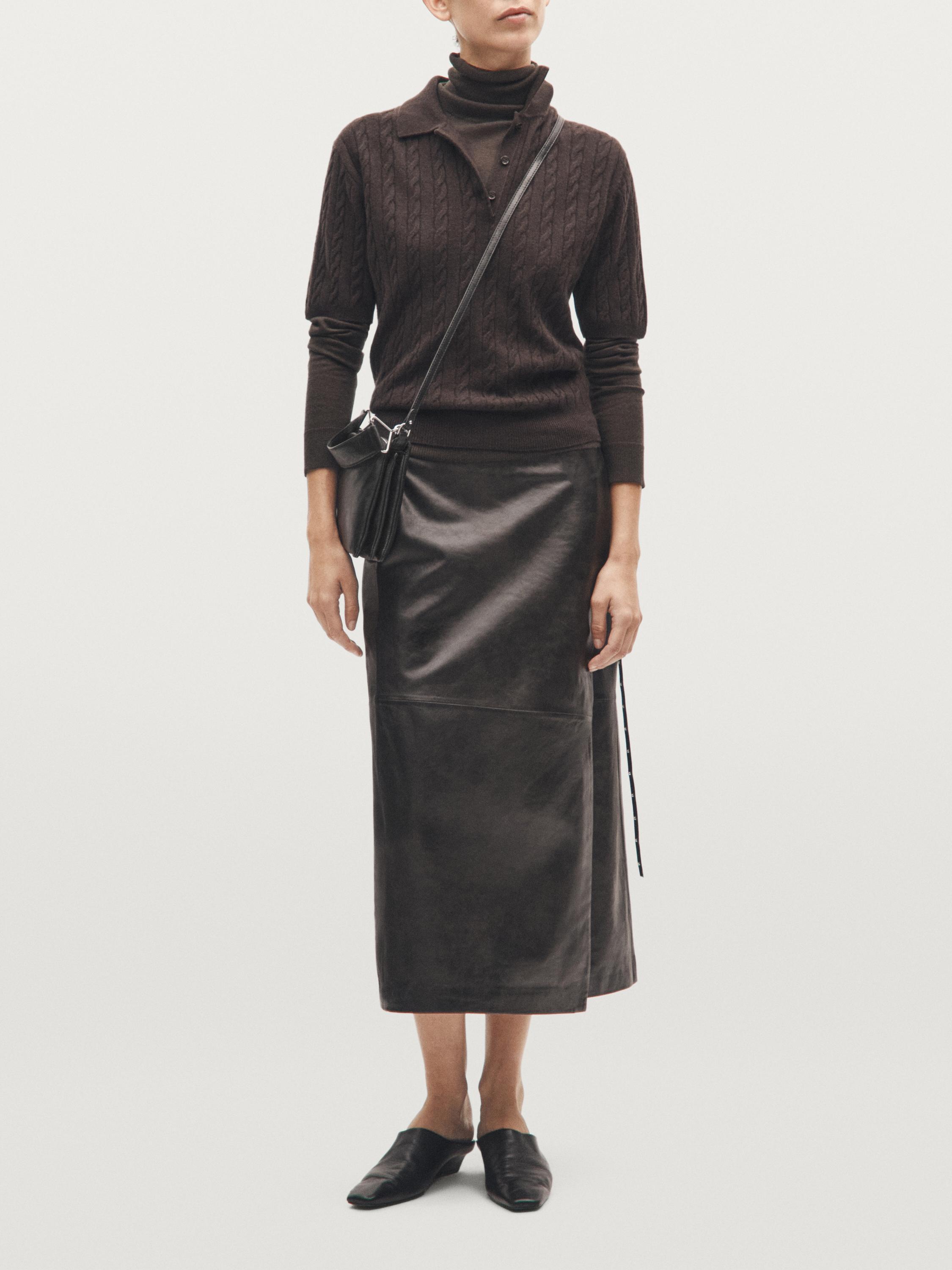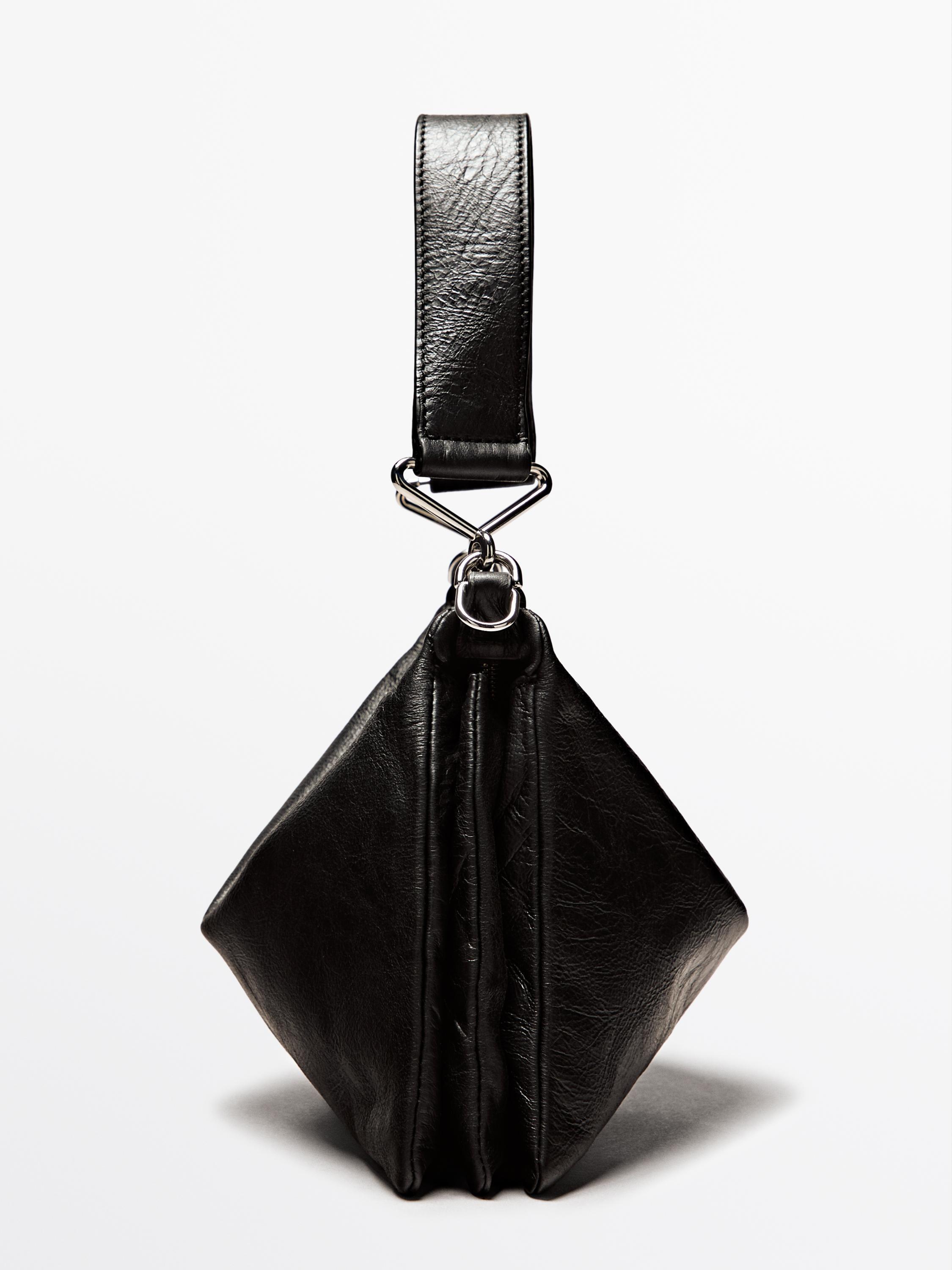 Massimo Dutti Маленькая сумка из кожи наппа с отделениями, черный