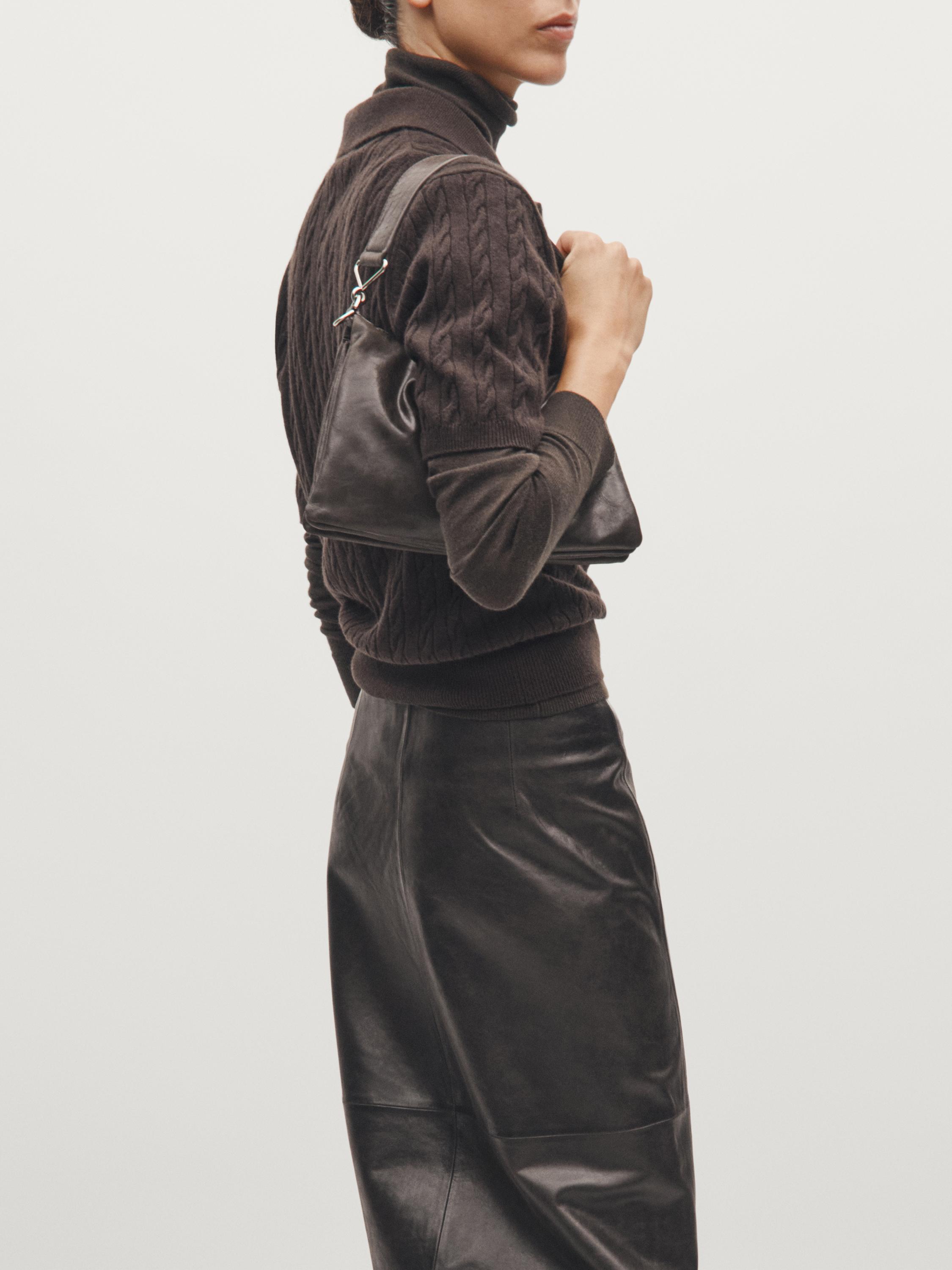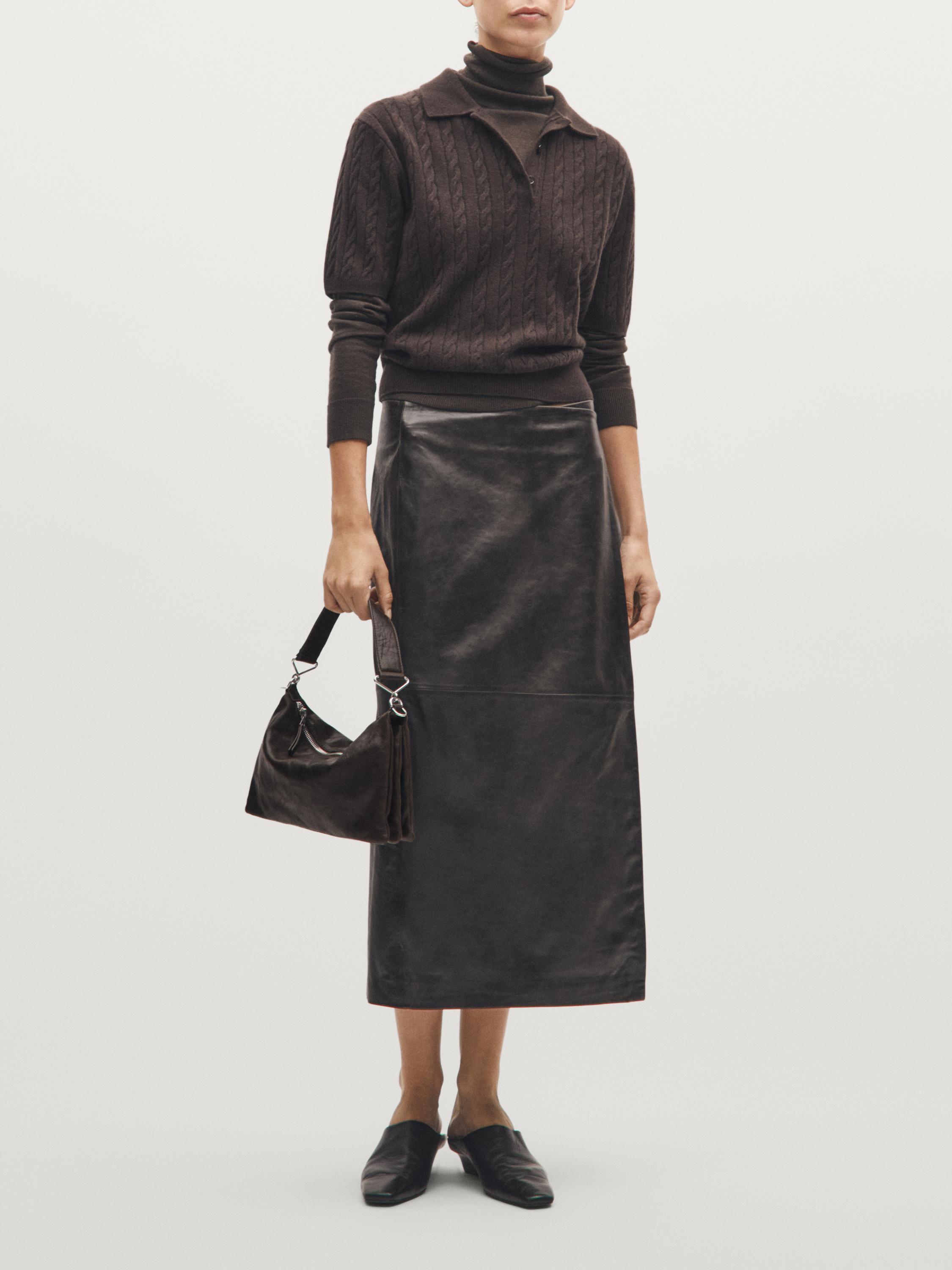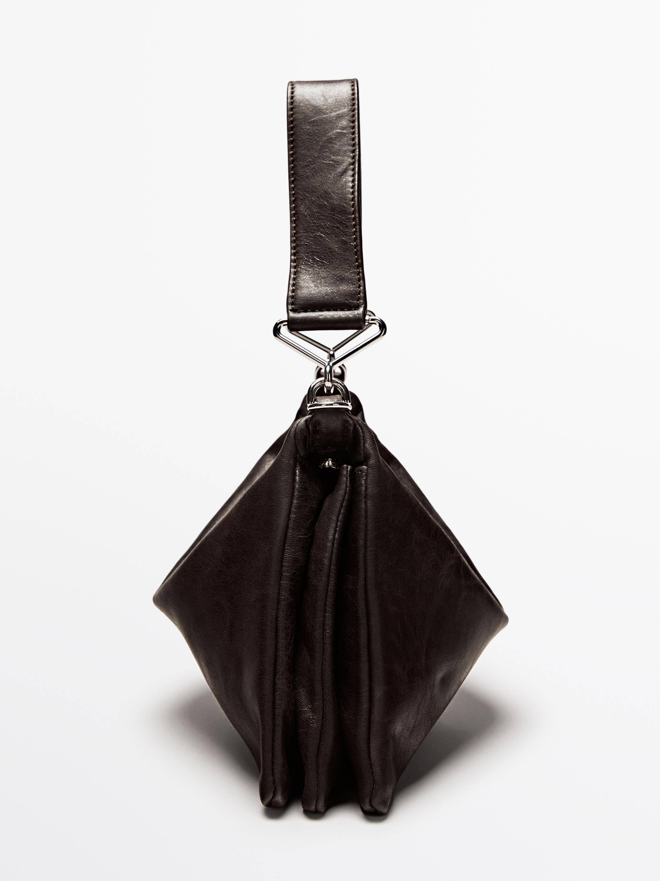 Massimo Dutti Маленькая сумка из кожи наппа с отделениями, коричневый